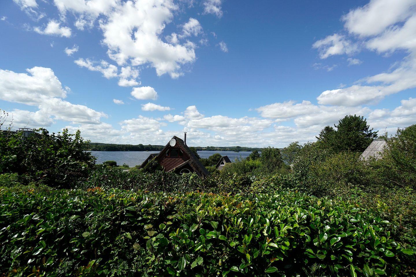 Das Nurdachhaus liegt etwas erhöht und bietet daher einen tollen Blick aus dem Schlafzimmer und der Terrasse auf den See. Die ruhige Lage in der Ferienhaussiedlung bietet die optimalen Bedingungen für absolute Erholung.