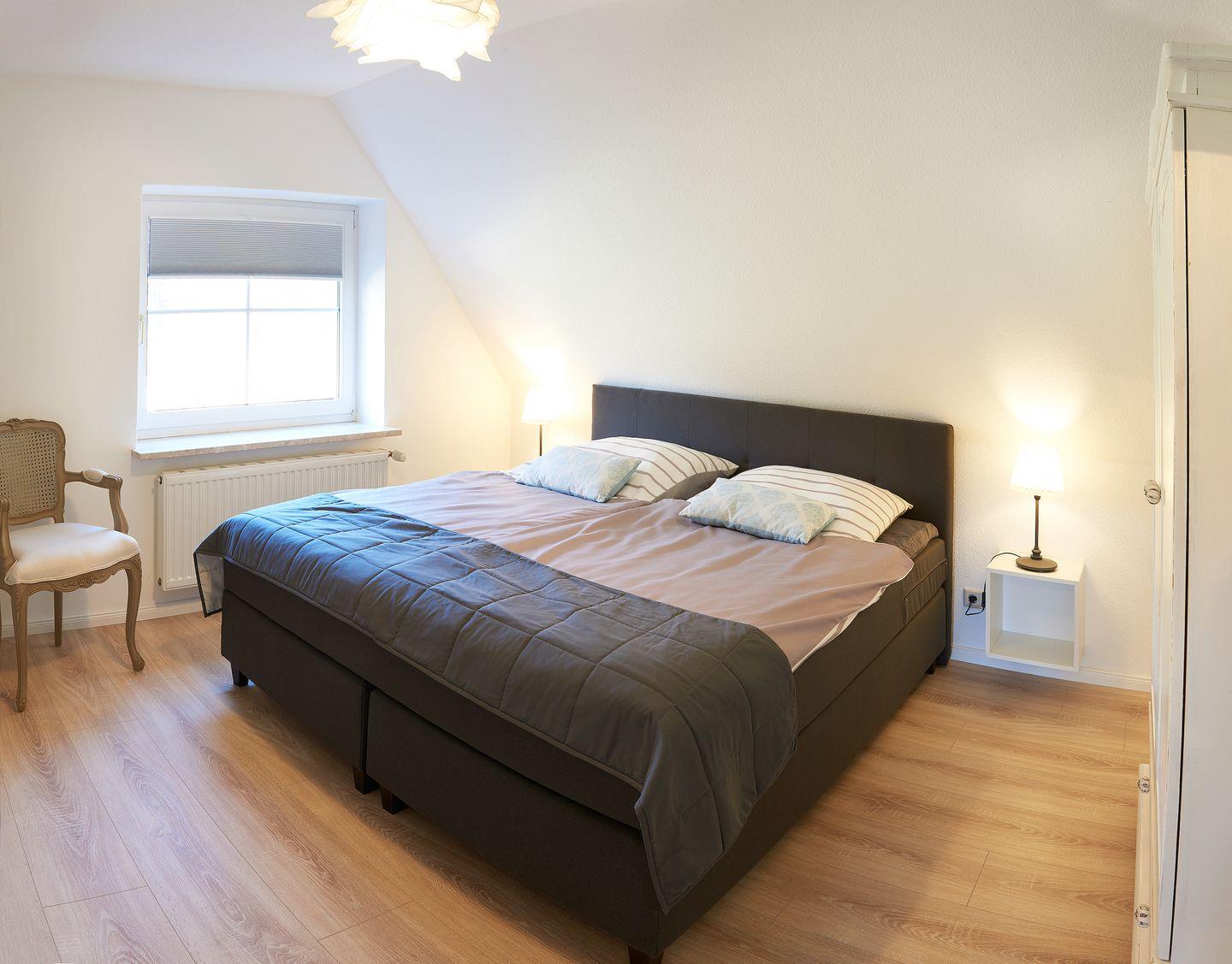 Diese moderne Ferienwohnung bietet auf 92m² Platz für 6 Personen in drei Schlafzimmern.