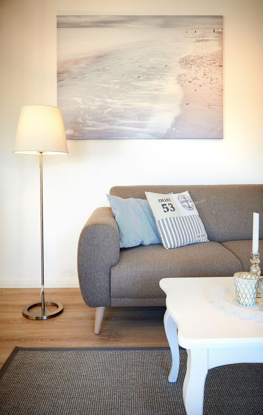 Diese moderne und großzügige Ferienwohnung bietet auf 92qm ausreichend Platz für bis zu sechs Personen in insgesamt drei Schlafzimmern. Die Ferienwohnung befindet sich im Obergeschoss des Hauses, kann auf Grund ihrer Hanglage aber ebenerdig betreten werden. Die Räume der Wohnung wurden im modernen skandinavischen Stil, mit hellen Farben gestaltet und liebevoll mit entsprechenden hellen, gemütlichen Möbeln eingerichtet.