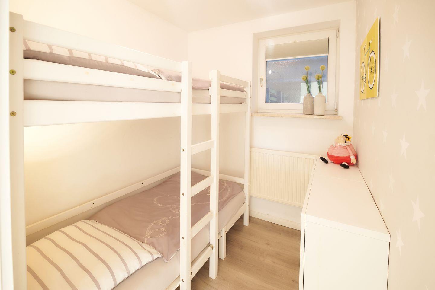 Genug Raum für einen erholsamen Schlaf bieten die drei Schlafzimmer. Ein Doppelbettschlafzimmer, sowie zwei weitere Zimmer, eines mit zwei Einzelbetten und das andere mit einem Etagenbett, alle ausgestattet mit Verdunkelungsplissees und Insektenschutzgitter. Das moderne Duschbad mit Außenfenster rundet den Komfort der Ferienwohnung perfekt ab.