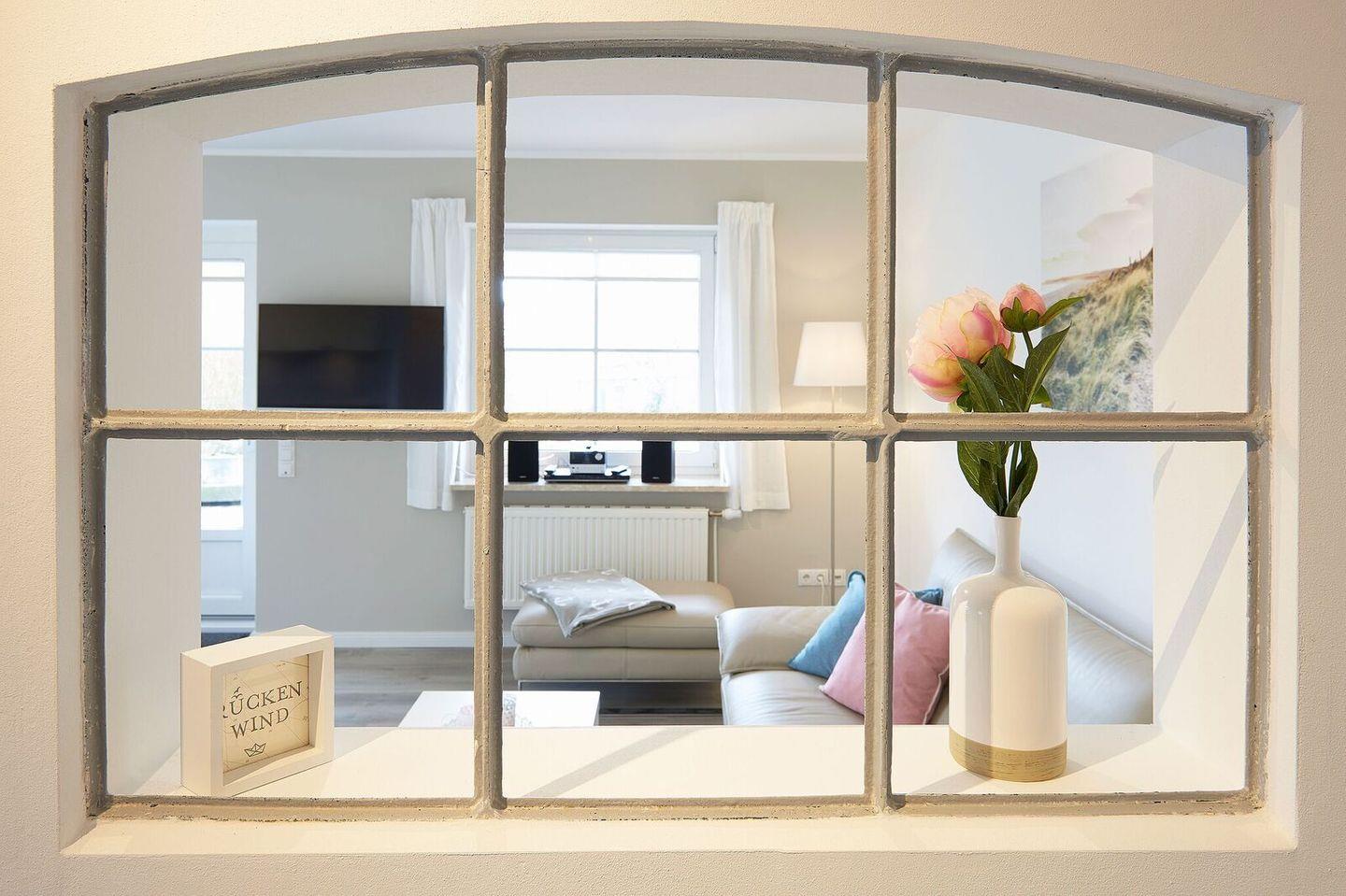 Die Ferienwohnung „Seegras“ befindet sich im Untergeschoss des Ferienhauses. Sie bietet auf 65m² Platz für 6 Personen in drei Schlafzimmern.