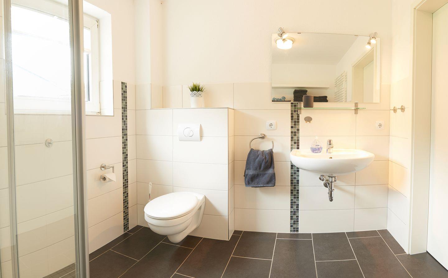 Abgerundet wird der Komfort der Ferienwohnung durch das neuwertige Duschbad mit Tageslicht.