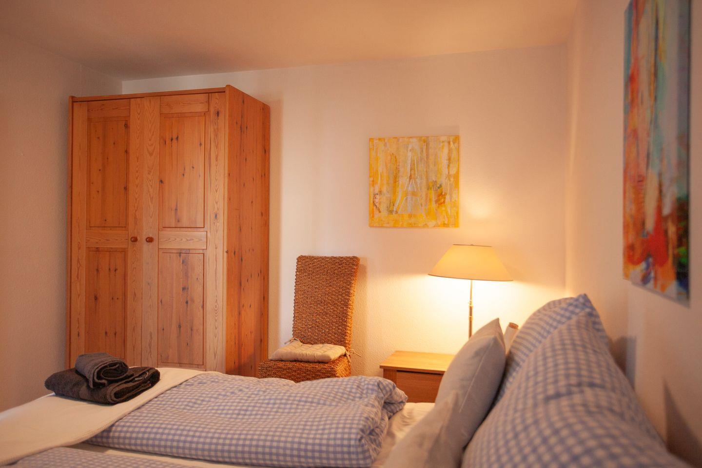 Die Ferienwohnung bietet Platz für bis zu vier Gäste und verfügt über zwei separate Schlafzimmer. Ein Schlafzimmer ist mit einem komfortablen Doppelbett ausgestattet, das zweite Schlafzimmer bietet eine Schlafcouch und eignet sich ideal für weitere Gäste oder Kinder. Die Räume sind hell, ruhig und geschmackvoll eingerichtet und schaffen eine angenehme Atmosphäre für erholsame Tage.