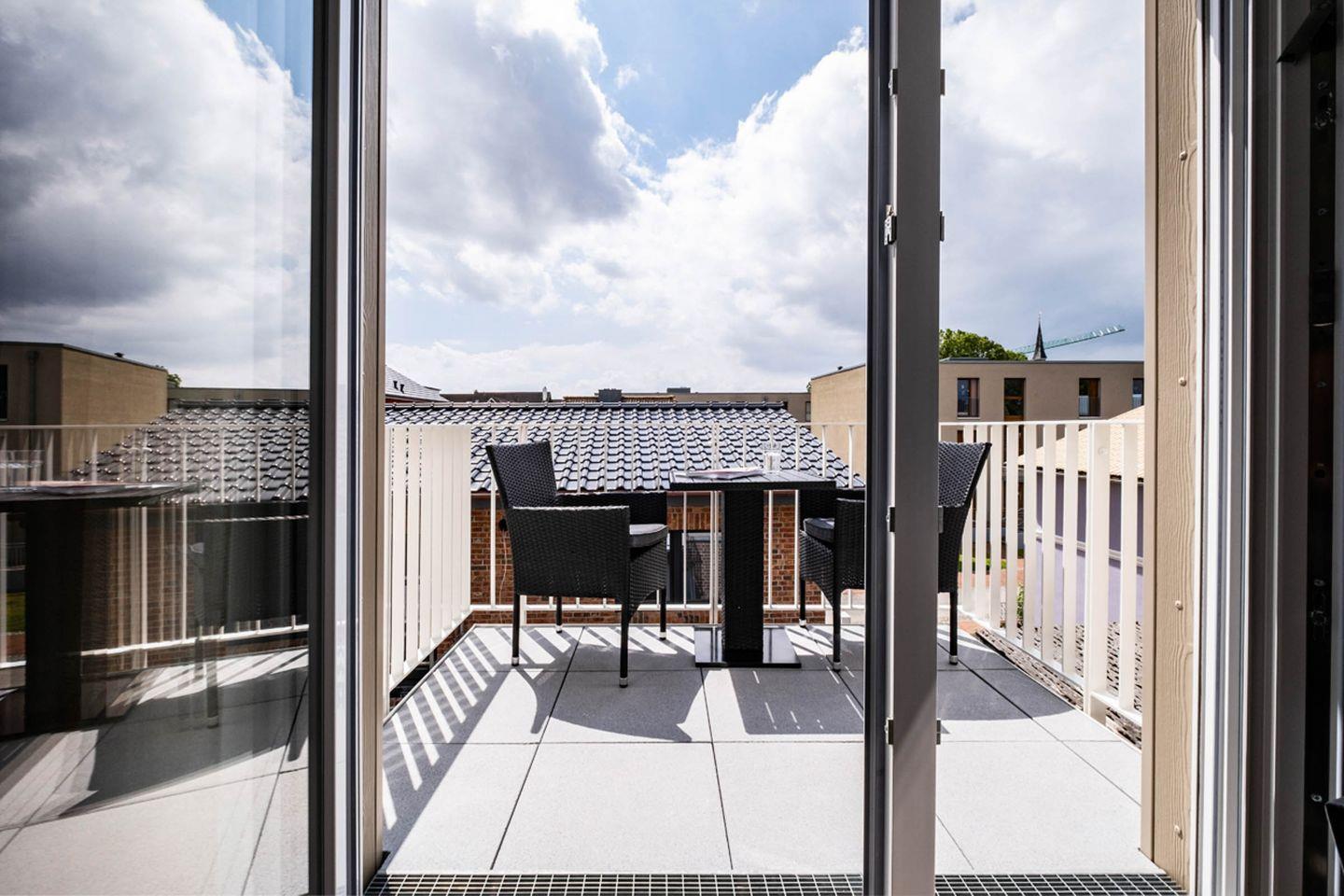 Balkon: Westliche-Lage mit hochwertigen Balkonmöbeln und Sonnenschirm