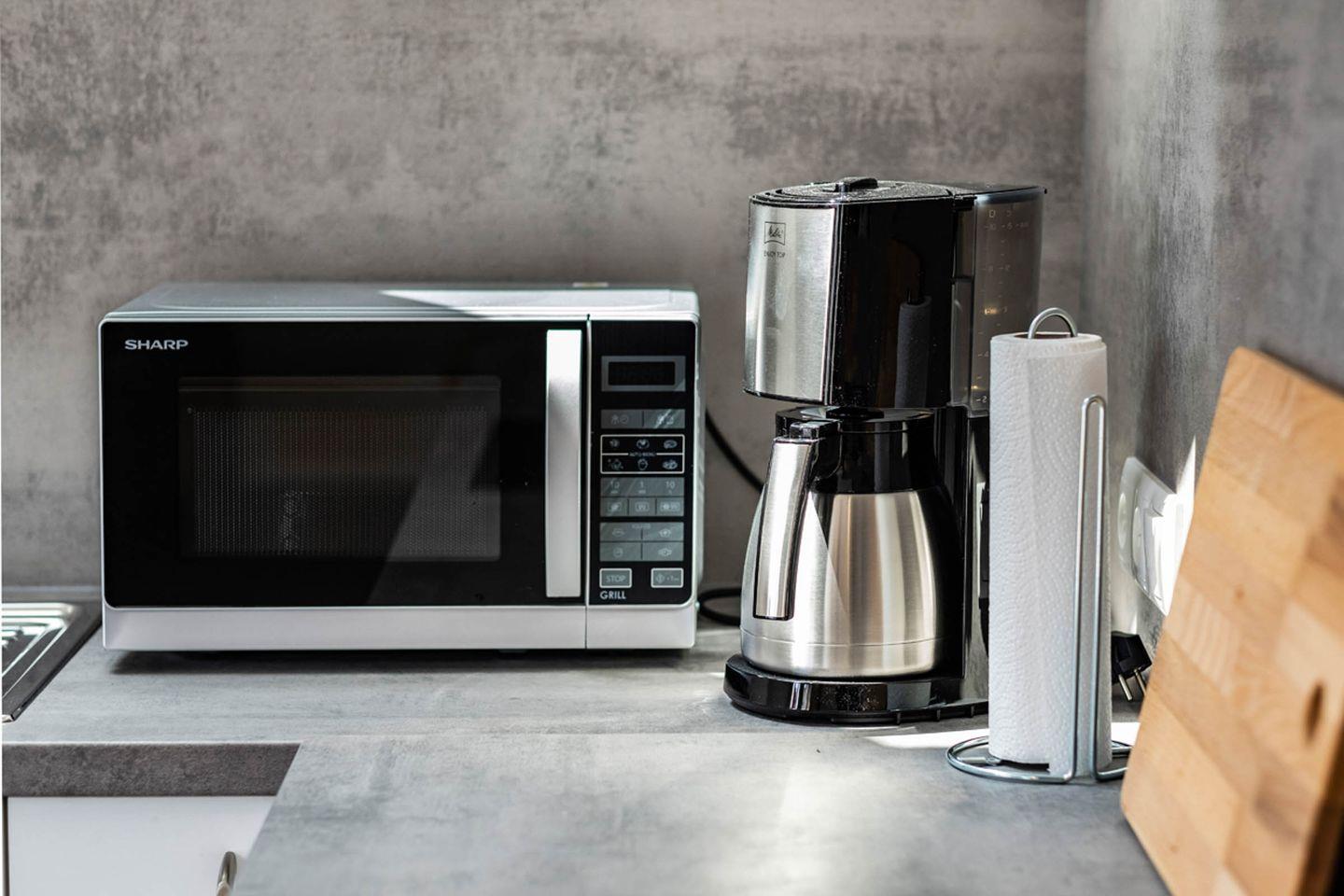 Küchenzeile: Cerankochfeld, Kühlschrank, Filterkaffee, Wasserkocher, Toaster