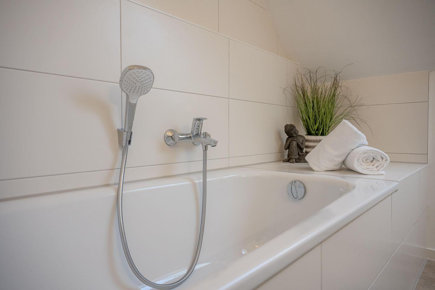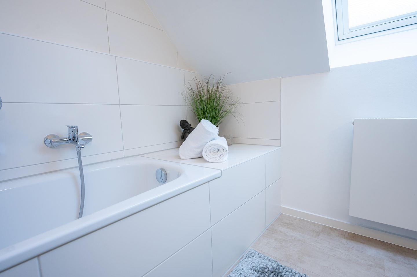 Für eine kleine Wellness-Auszeit bietet sich die Infrarot-Sauna im Badezimmer im Erdgeschoss, oder die Badewanne im Badezimmer im Obergeschoss an.