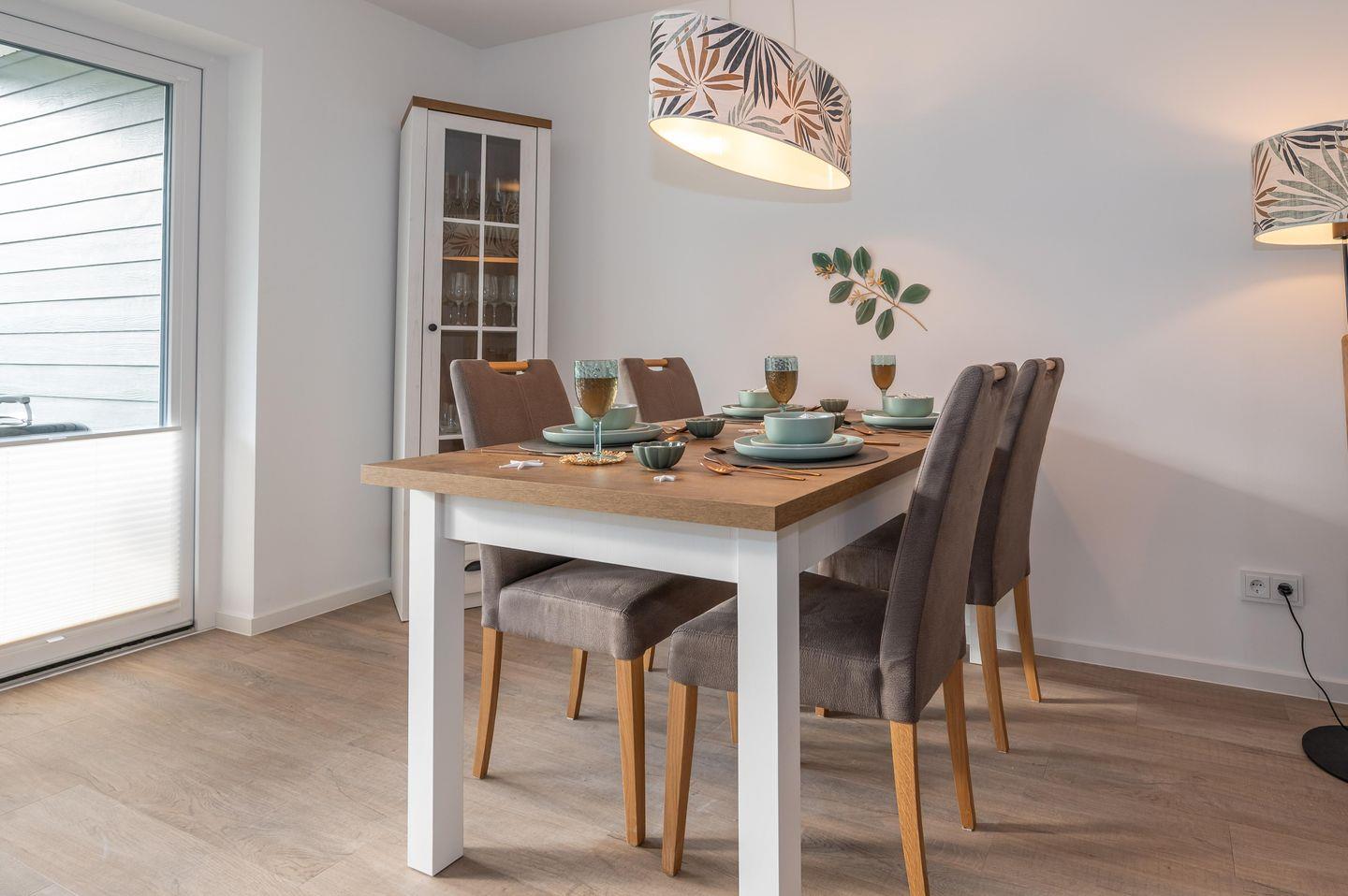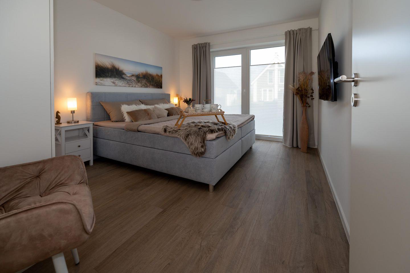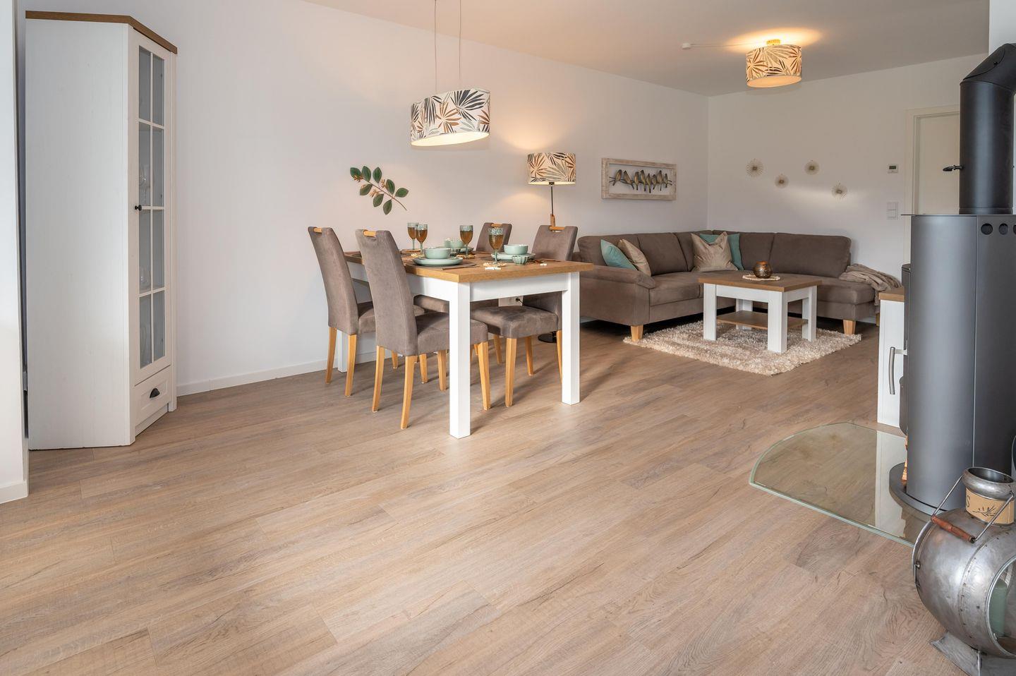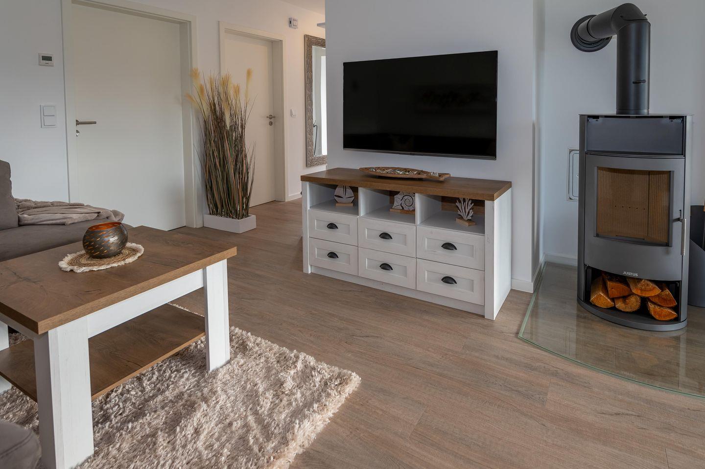 Die Ferienwohnung "Friesenkind" mit 80m² bietet viel Platz und besticht durch Ihre stilvolle und gemütliche Einrichtung. Das Wohnzimmer mit Kamin und einem TV lädt nach einem Spaziergang an der frischen Nordseeluft zum Entspannen ein. Die Küche ist hochwertig und voll ausgestattet. Beide Schlafzimmer bieten Ihnen einen TV, eins verfügt über ein Doppelbett & das zweite über 2 Einzelbetten. Das moderne Badezimmer verfügt neben der barrierearmen Dusche auch über eine Infrarotkabine.
