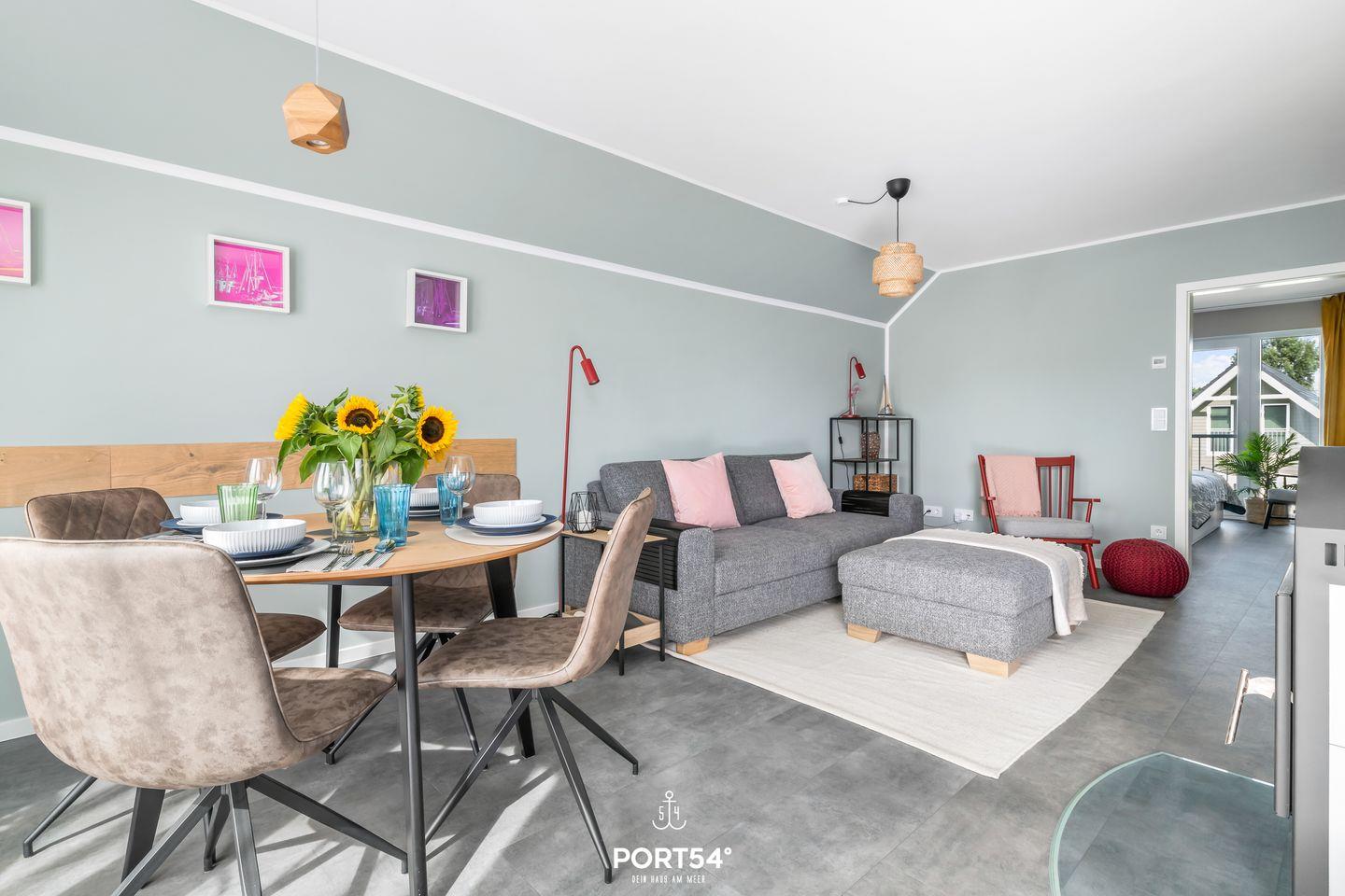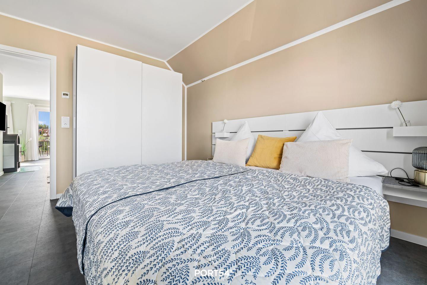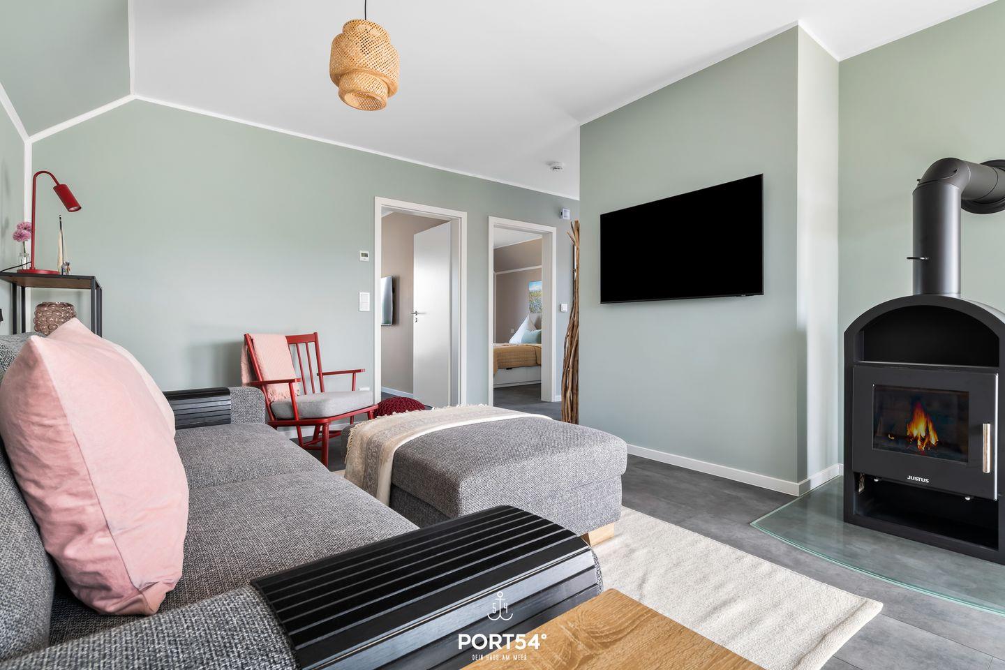 Die Wohnung Süderpiep im Nordsee Resort Büsum ist eine moderne und hochwertig eingerichtete Ferienwohnung, die Platz für bis zu 4 Personen bietet. Der offene Wohn-/Essbereich verfügt über einen gemütlichen Kamin, ideal für kuschelige Abende auf dem Sofa. Ein Smart-TV sorgt für Unterhaltung. Die Wohnung hat zwei Schlafzimmer, eines mit einem großen Doppelbett (180x 200 cm) und das andere mit zwei Einzelbetten (jeweils 90x 200 cm) für erholsamen Schlaf. Das Badezimmer mit Infrarot-Kabine bietet zusätzliche Entspannung. Vom Wohnzimmer aus gelangen Sie auf den möblierten Balkon, perfekt zum Sonnenbaden, für ein gemütliches Frühstück im Freien oder einfach zum ausspannen im Hängesessel für 2 Personen.