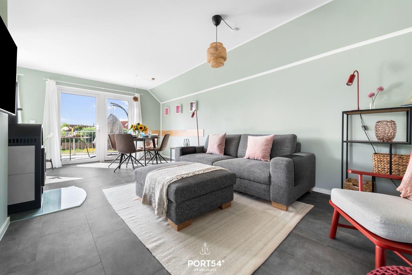 Es erwarten Sie auf 80 m² offene lichtdurchflutete Räumlichkeiten in einem gemütlichen Ambiente. Von der voll ausgestatteten Küche mit Essbereich gelangen Sie auf den Balkon, hier können Sie die Ruhe genießen. Der gemütliche Wohnbereich bietet Ihnen einen Kamin & ein gemütliches Sofa. In einem der beiden Schlafzimmern finden Sie ein Doppelbett & im anderen 2 Einzelbetten vor. Das Wellnessbad verfügt über eine ebenerdige Dusche & eine Infrarot-Sauna.