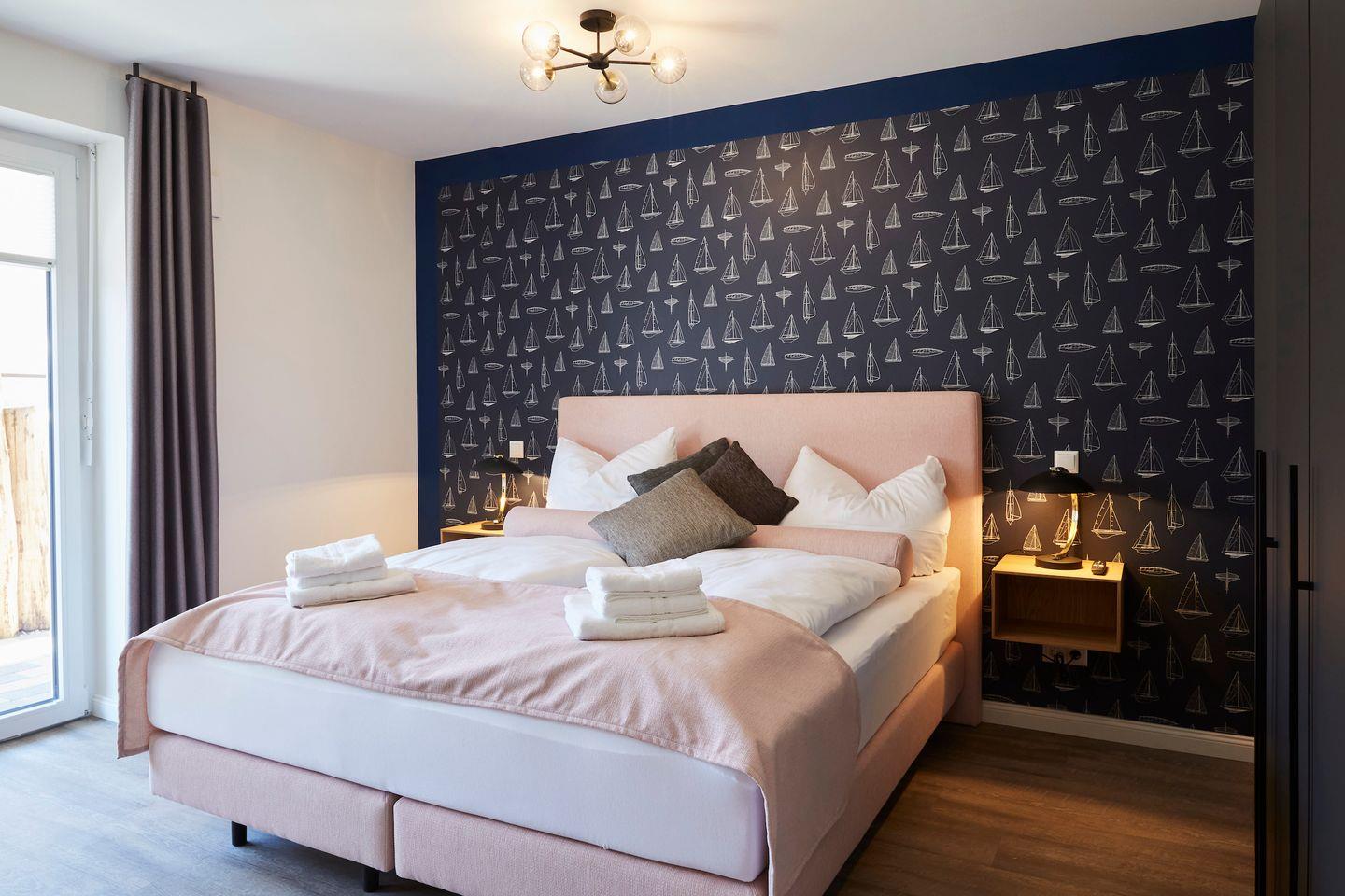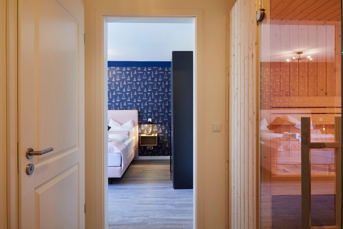 Zudem verfügt das gesamte Apartment über eine Fußbodenheizung. Für einen ruhigen Schlaf sorgen das komfortable Boxspringbett sowie die dreifach verglasten Fenster mit elektrischen Außenjalousien. Die vollausgestattete Wohnküche lädt zum gemeinsamen Kochen ein. Das moderne Badezimmer besticht durch seine bodentiefe Dusche, Handtuchheizkörper und einen Föhn. Weitere Highlights dieser Wohnung sind die großzügig geschnittene Sauna sowie das zweite Vollbad.