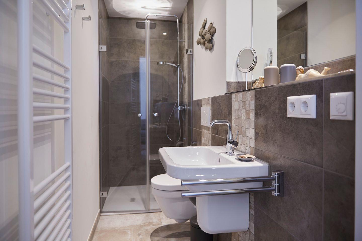 Das Apartment bietet Ihnen ein komfortables Schlafzimmer. Das Badezimmer ist mit zahlreichen Annehmlichkeiten ausgestattet, darunter ein Haartrockner und ein Kosmetikspiegel. Für zusätzlichen Komfort sorgt die Fußbodenheizung im gesamten Apartment.