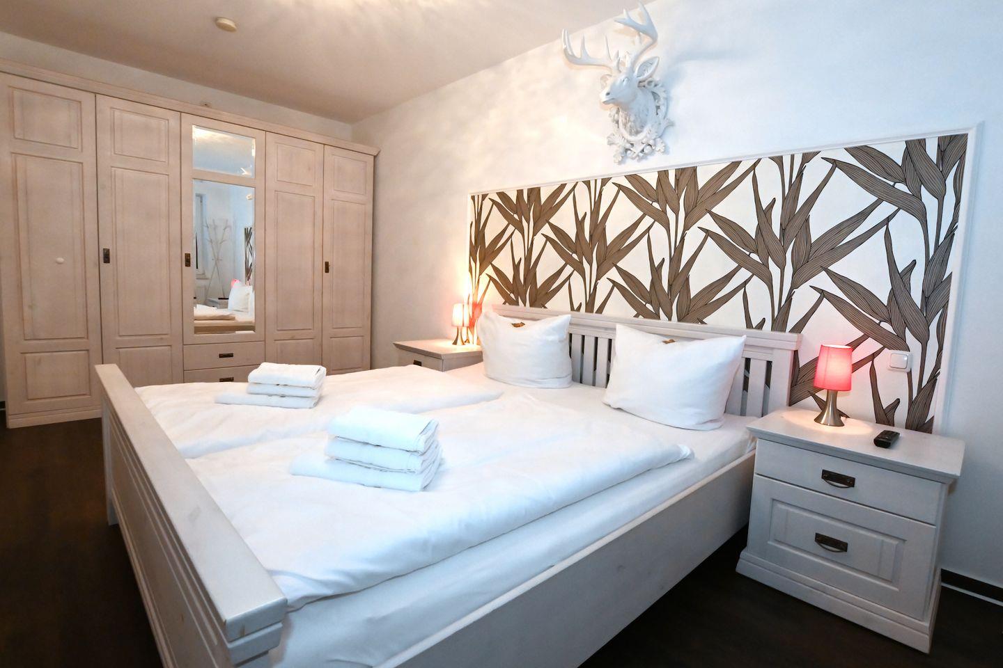 Das gemütliche Schlafzimmer mit Platz für zwei Personen sorgt für eine ruhige Nacht. Das Badezimmer erfüllt alle Bedürfnisse für Ihre persönliche Hygiene.