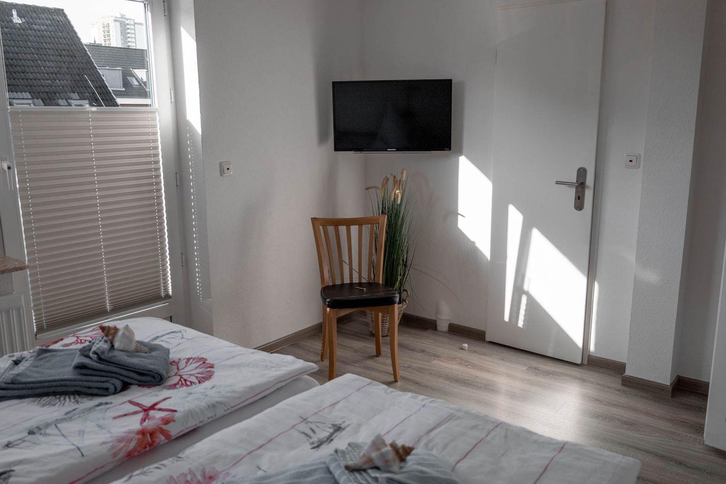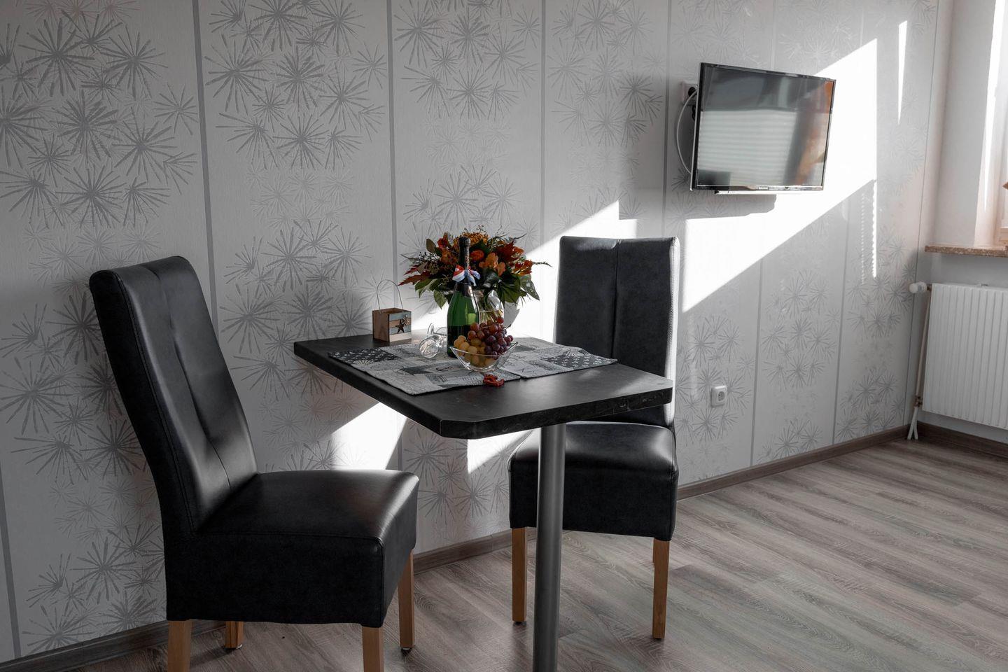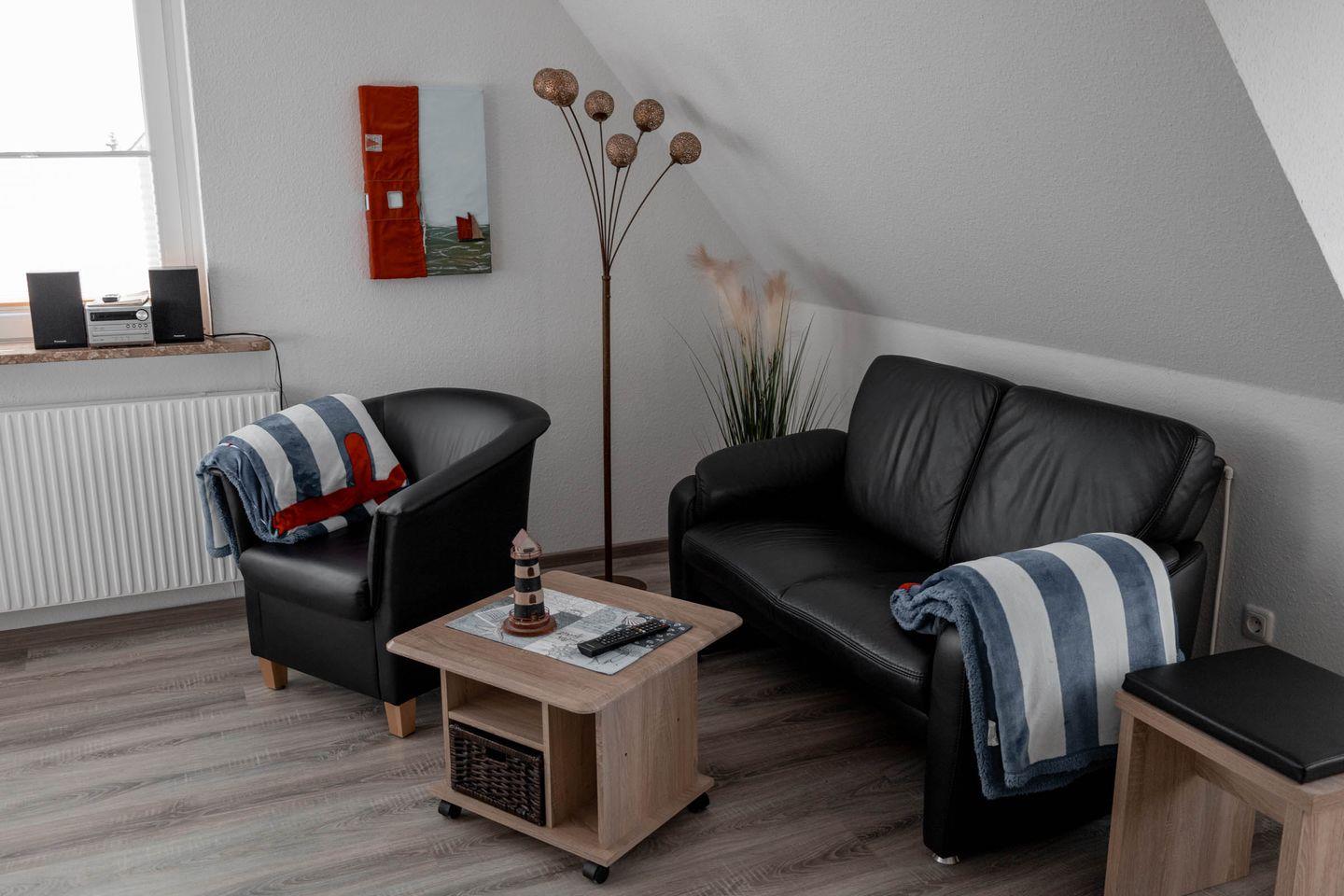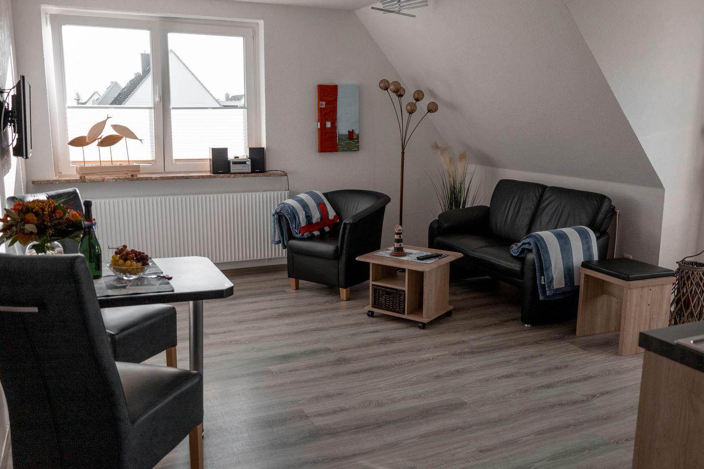Das modern eingerichtete Apartment verfügt über zwei Zimmer, davon ein separates Schlafzimmer, das mit bequemen Schlafmöglichkeiten ausgestattet ist. Der helle und gemütliche Wohnbereich lädt mit einem Sofa und einem Sessel zum Entspannen ein. Zwei Fernseher sorgen für Unterhaltung und durch das vorhandene WLAN bleiben Sie stets mit dem Internet verbunden. Für angenehme Temperaturen in jeder Jahreszeit steht eine Heizung zur Verfügung.