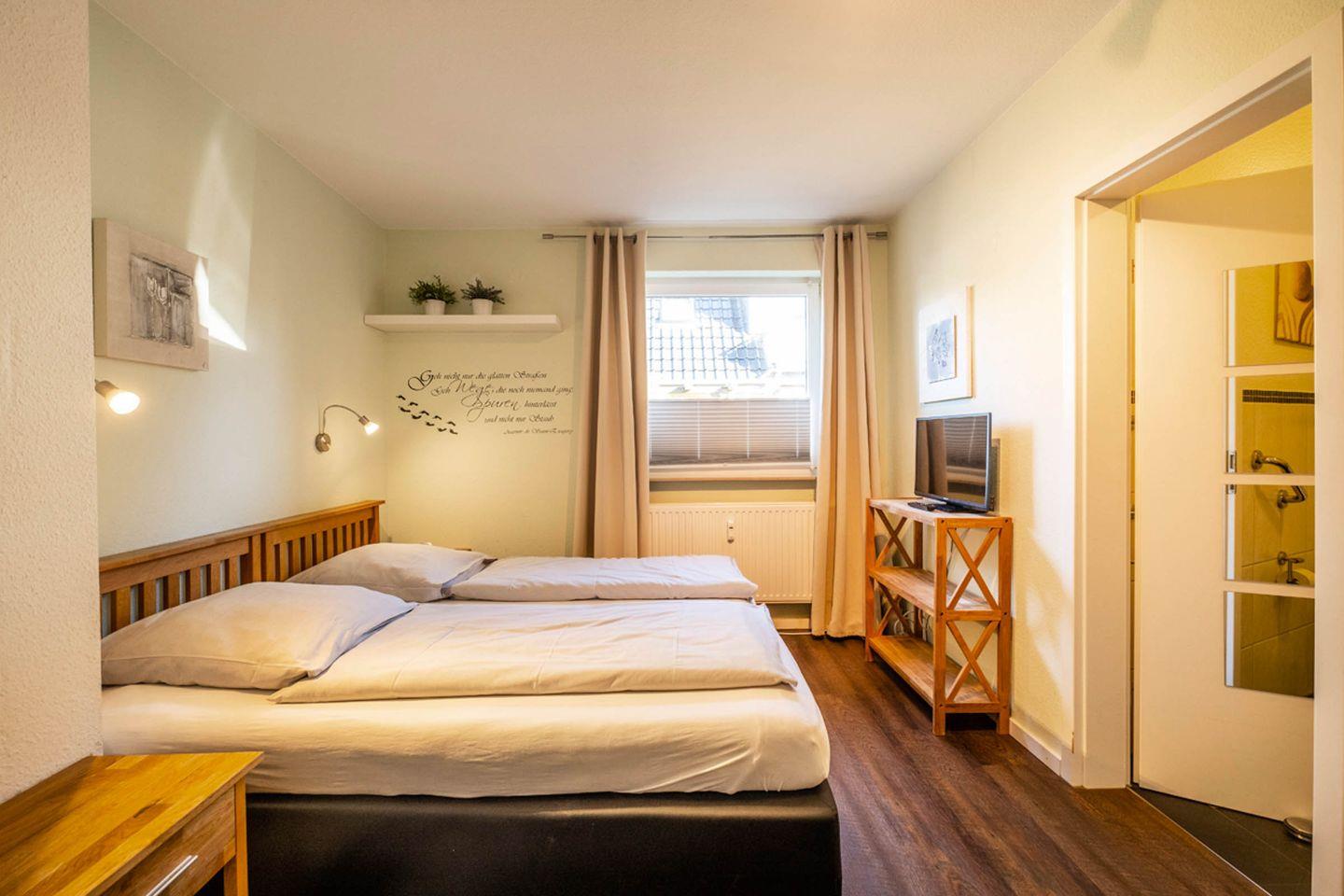 Haus Regenpfeifer Wohnung 2 in Büsum bietet Ihnen auf 84 m² ein komfortables und modernes Zuhause für Ihren Aufenthalt an der Nordseeküste. Die im Parterre gelegene Wohnung überzeugt durch ihre großzügige Aufteilung mit insgesamt drei Zimmern, wovon zwei als Schlafzimmer gestaltet sind. Mit fünf Schlafmöglichkeiten eignet sich das Objekt sowohl für Familien als auch für kleine Gruppen. In einem der Schlafzimmer befindet sich ein Fernsehr.
