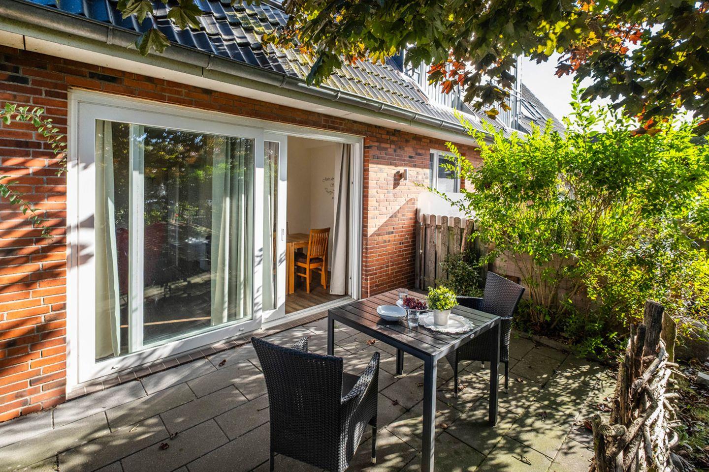 Die Terrasse im Erdgeschoss ist ideal, um die frische Nordseeluft zu genießen oder einen entspannten Tagesausklang zu verbringen. Der zur Wohnung gehörende Parkplatz gewährleistet, dass Sie Ihr Fahrzeug sicher und bequem abstellen können.