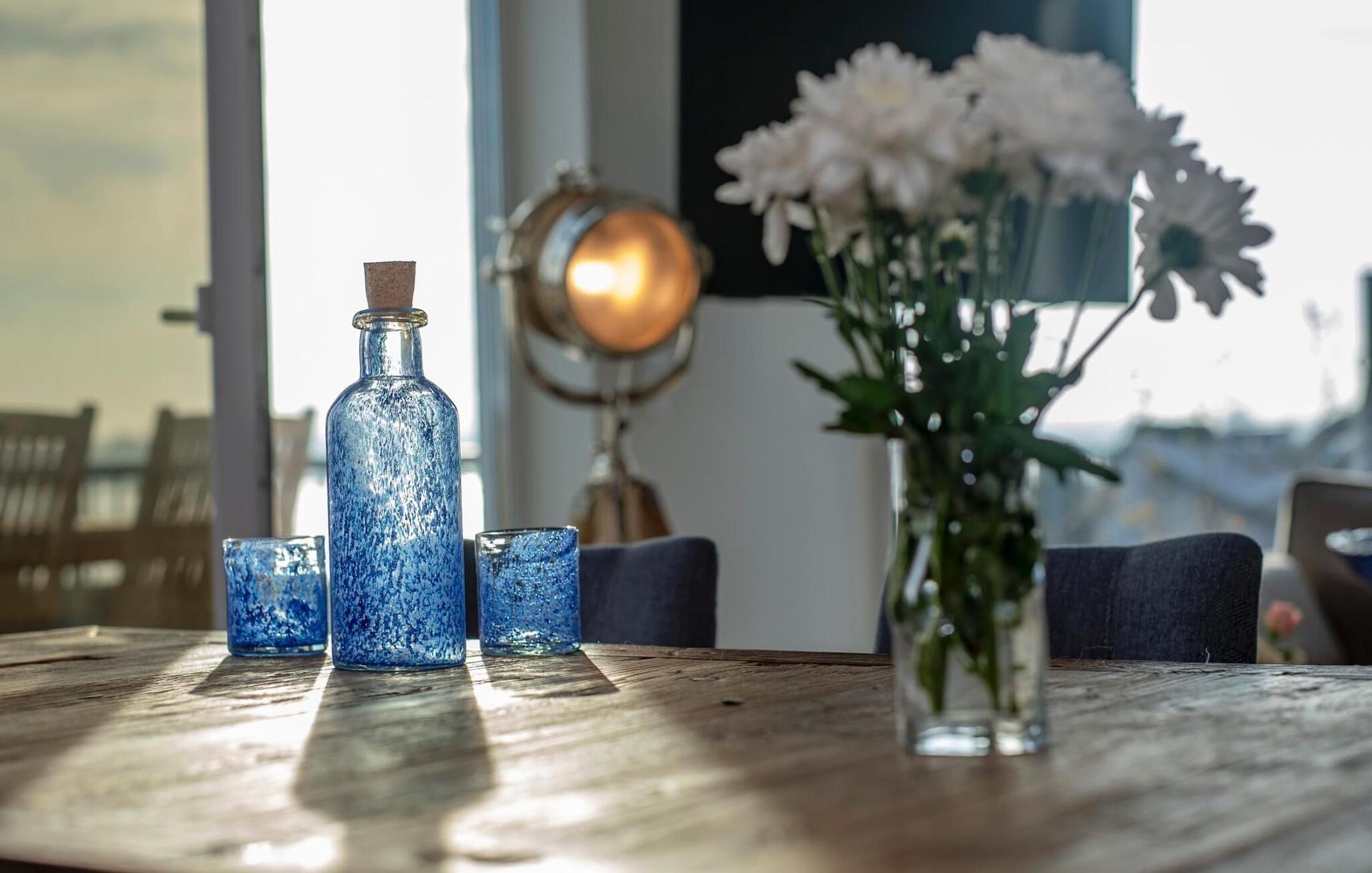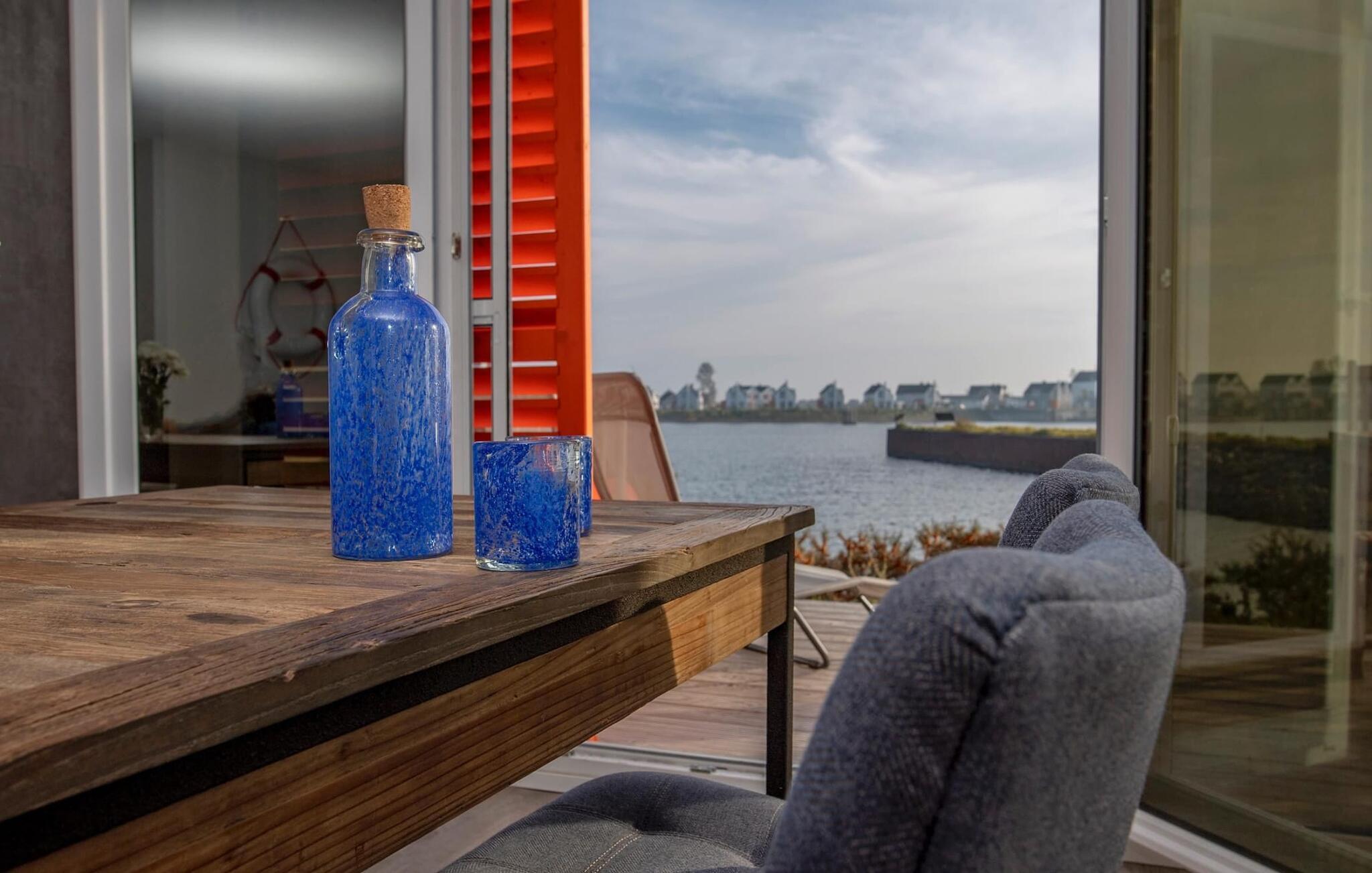 Fantastisk udsigt åbner op fra opholdsstuen og på den tilstødende terrasse med udsigt over lystbådehavnen. Havnebiografen sørger for underholdning under en hyggelig grillaften eller romantisk middag i levende lys.