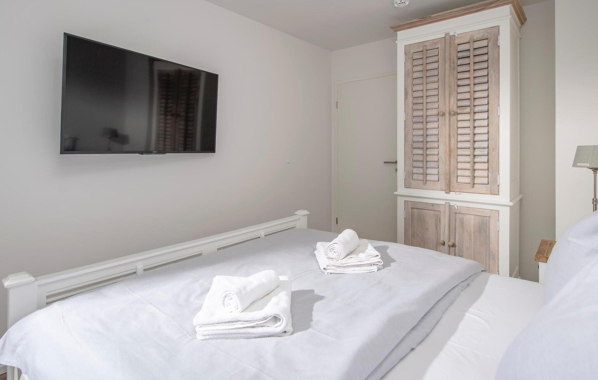 De to soveværelser giver adgang til den anden terrasse. Det store soveværelse er udstyret med et ekstra tv.
