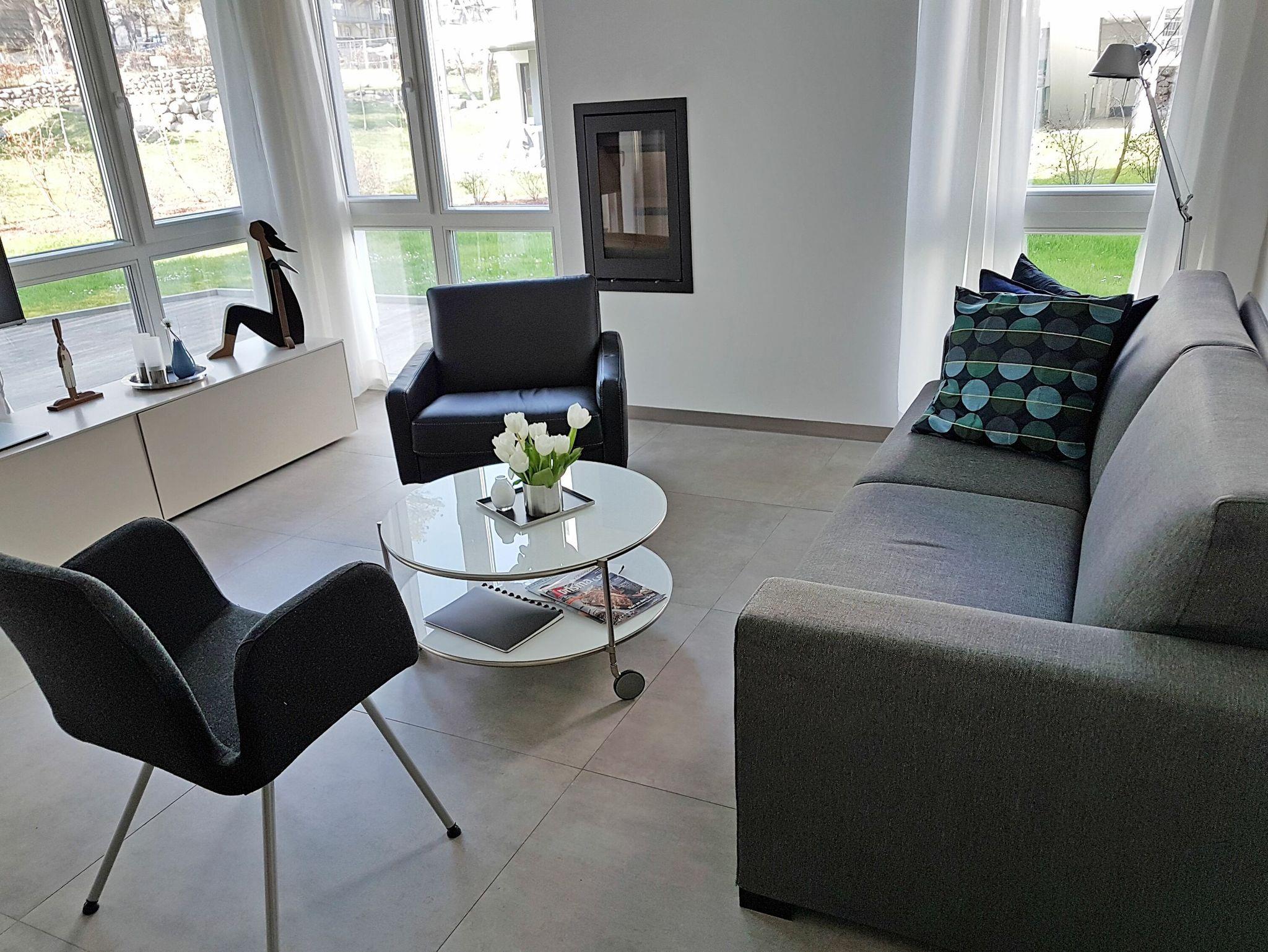 Die Ausstattung mit Sauna und Kamin verleiht dieser großzügig, geradlinig eingerichteten Wohnung auch an kühleren Tagen Gemütlichkeit.
