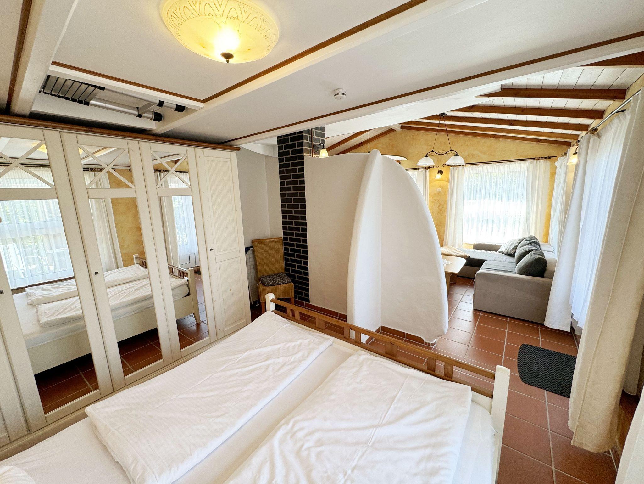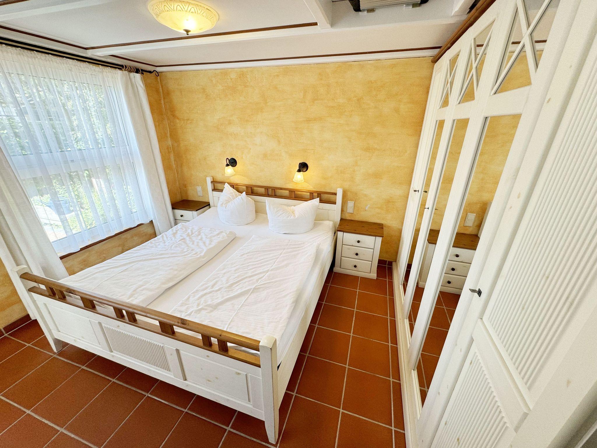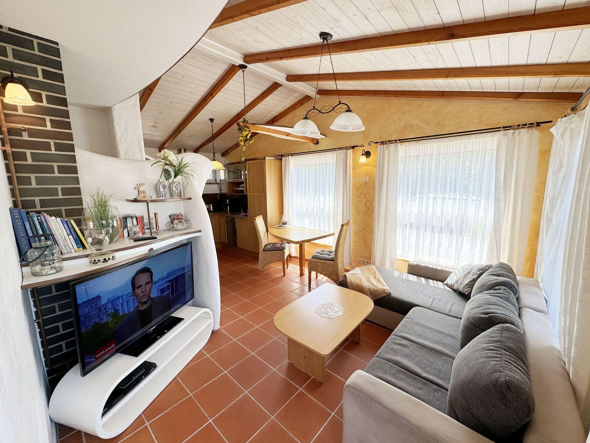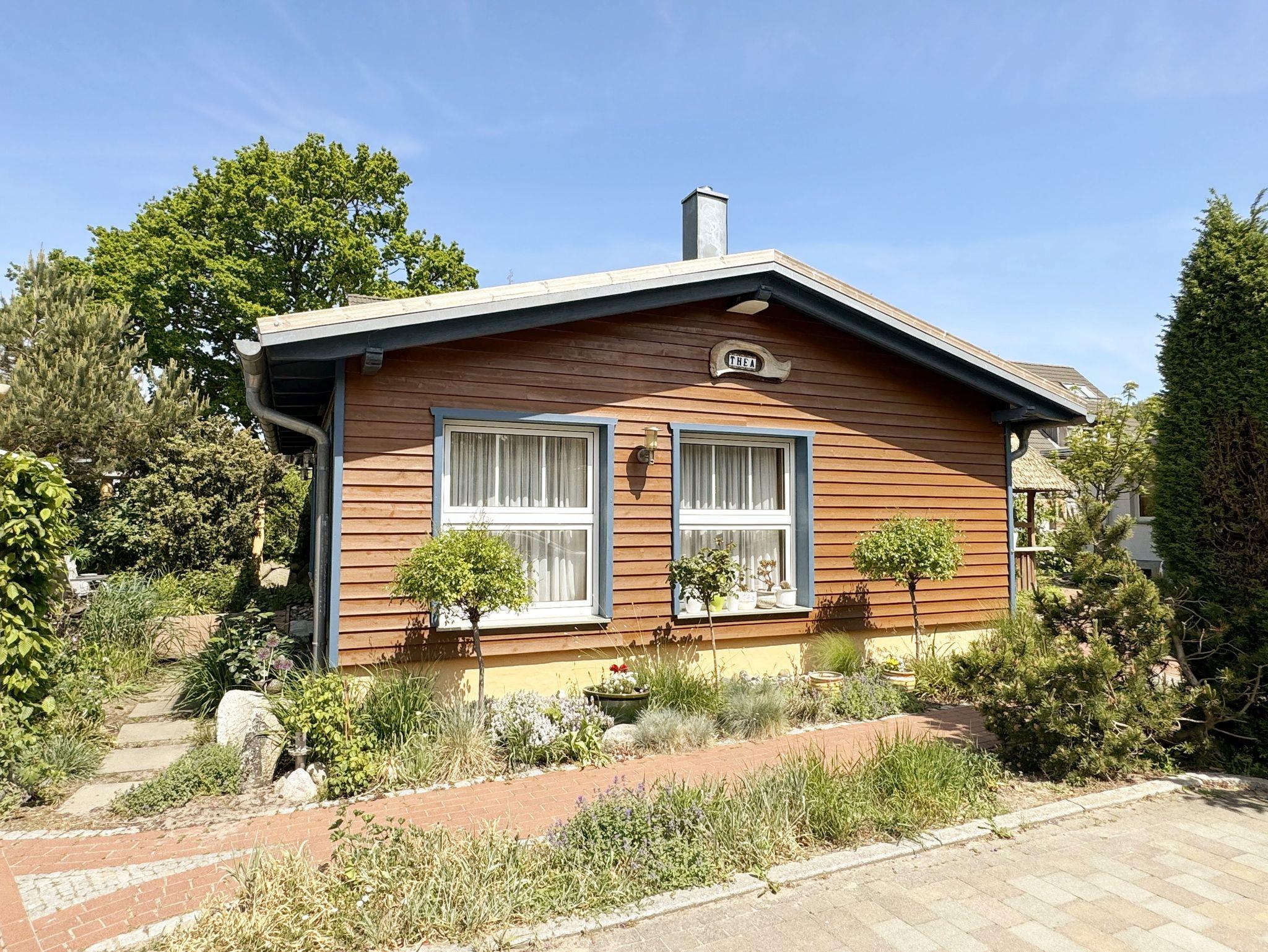 Das Nichtraucherferienhaus Thea umfasst ca. 48 m² und bietet Ihnen Platz für max. 2 Erwachsene. Der offene Wohnbereich ist mit einer Eckcouch, Couchtisch, Radio mit CD-Player, DVD-Player und einem Smart-TV ausgestattet. Auch auf einen Internetanschluss (WLAN) brauchen Sie im Urlaub nicht verzichten. Dieser ist inklusive für Sie. In Verlängerung schließt sich der Essplatz an. Die vollausgestattet Küchenzeile verfügt über einen Backofen, Ceranfeld mit Dunstabzugshabe, Geschirrspüler, Mikrowelle, Kühlschrank mit Eisfach, Kaffeemaschine, Toaster, Wasserkocher sowie diverse Küchenutensilien. Für gemütliche Abende, gerade in der kälteren Jahreszeit, sorgt ein Kamin. Das offene Schlafzimmer verfügt über ein Doppelbett (1,80 m x 2,00 m), Nachttischablagen sowie einen Kleiderschrank. Vom Wohnbereich gelangen Sie auf die bestuhlte Terrasse. Das Tageslicht-Bad wird durch eine Eckdusche, Handtuchwärmer, Fön, WC und Waschtisch abgerundet. Alle Räumlichkeiten sind mit einer Fußbodenheizung sowie Fliesen versehen worden. Mit einem eigenen und mitgebrachten Schlafplatz sind max. 2 Haustiere gegen eine Gebühr gern gesehene Gäste. Im separaten Waschhaus können Sie gegen eine Kasse des Vertrauens eine Waschmaschine und einen Trockner nutzen. Ihre mitgebrachten oder auch geliehenen Fahrräder können Sie am Haus abstellen. Ein PKW-Stellplatz mit Ladestation befindet sich auf dem Grundstück. Die Erstausstattung eines Wäschepaketes (komplette Bettwäsche, 1 Duschhandtuch, 1 kleines Handtuch) können Sie bis 14 Tage vor Anreise gegen einen Aufpreis dazu buchen oder durch eigene ergänzen. Ab 2 gebuchten Paketen erhalten Sie einmalig 1 Geschirrhandtuch und 1 Duschvorleger hinzu.