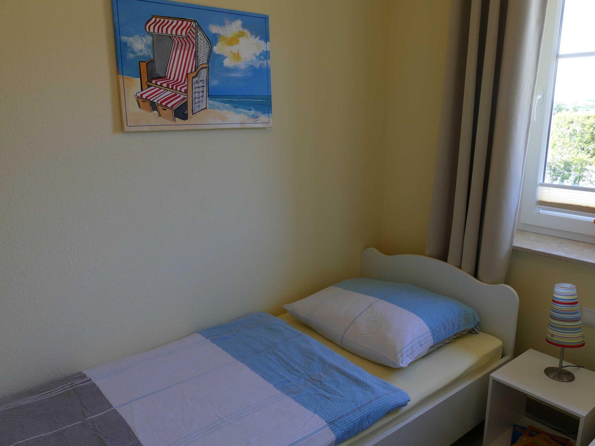 Das 2. Schlafzimmer, welches am 1. Schlafzimmer gelegen ist, wirkt durch zwei Einzelbetten (0,90 m x 2,00 m), Nachtischanlage, einem Kleiderschrank sowie einem Stuhl, der Ihre Kleidungsstücke aufnehmen kann ganz besonders einladend. Hier verschließen Verdunklungsvorhänge das Eindringen der Sonne am frühen Morgen sowie das Fliegengitter das Eindringen von Insekten.