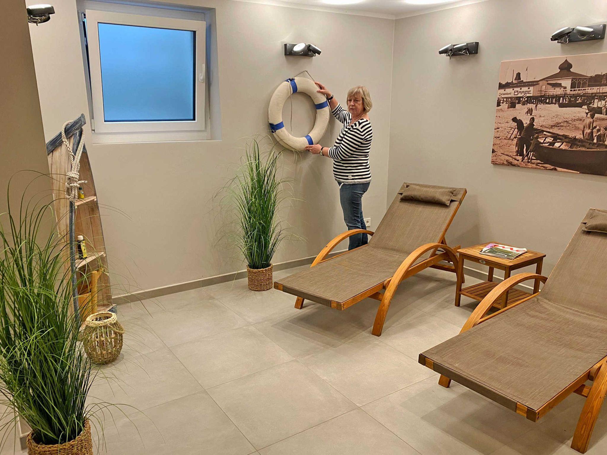 Verwöhnen Sie Ihren Körper auch in der hauseigenen Sauna. Die stilsicher und attraktiv gestaltete Wellnesslandschaft befindet sich im Souterrain der Villa Düne. Sie steht Ihnen (gegen eine kleine Gebühr) für Entspannung und Wohlgefühl zur Verfügung.