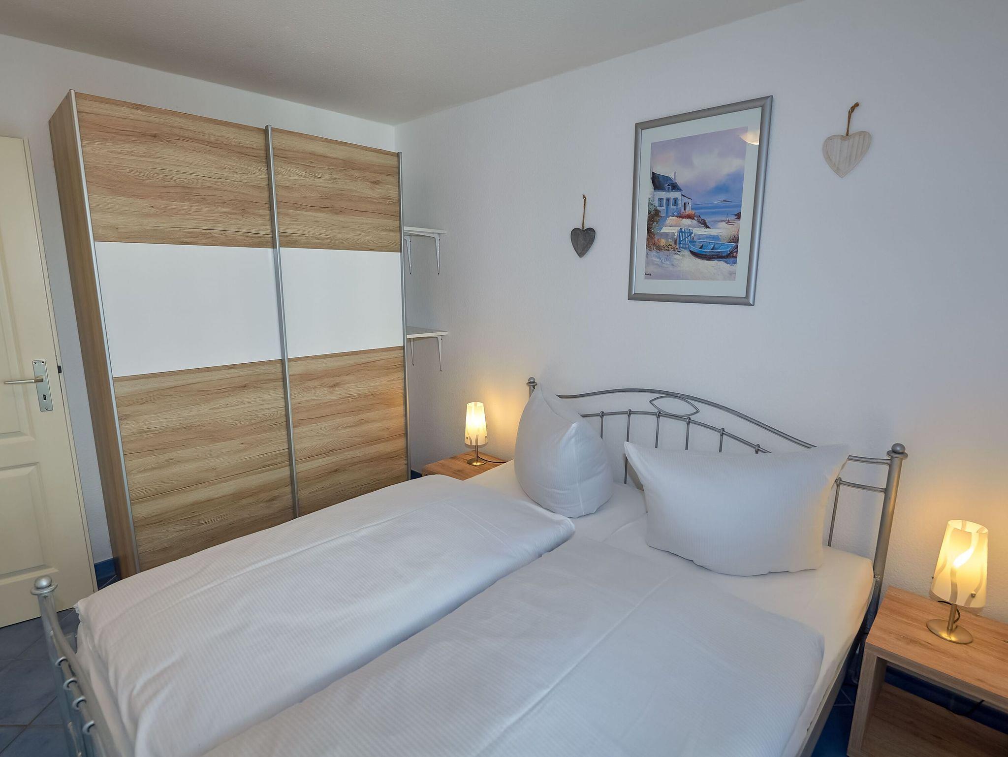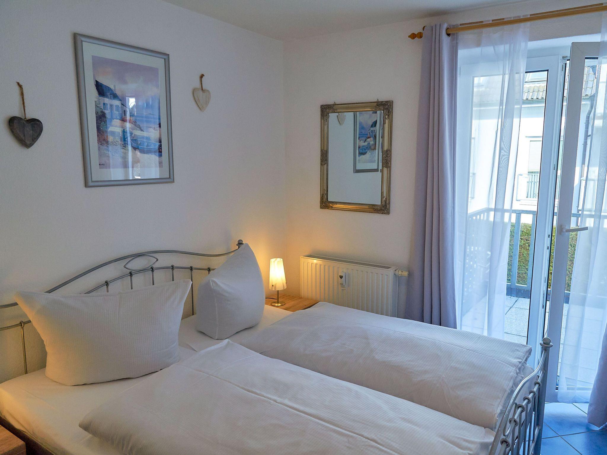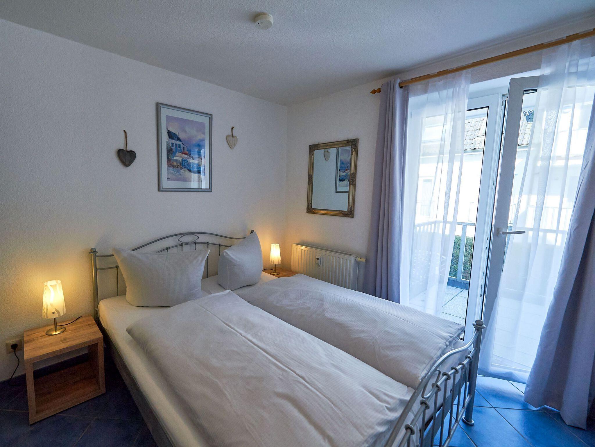 Der große Balkon Ihres Urlaubsdomizils ist sowohl vom Wohn- als auch vom Schlafzimmer aus zu betreten. Er ist mit mit einer Sitz- bzw. Essgruppe und einem Korbschaukelsessel ausgestattet. Das Schlafzimmer verfügt über ein bequemes Doppelbett und einen geräumigen Kleiderschrank für Ihre Urlaubsgarderobe.