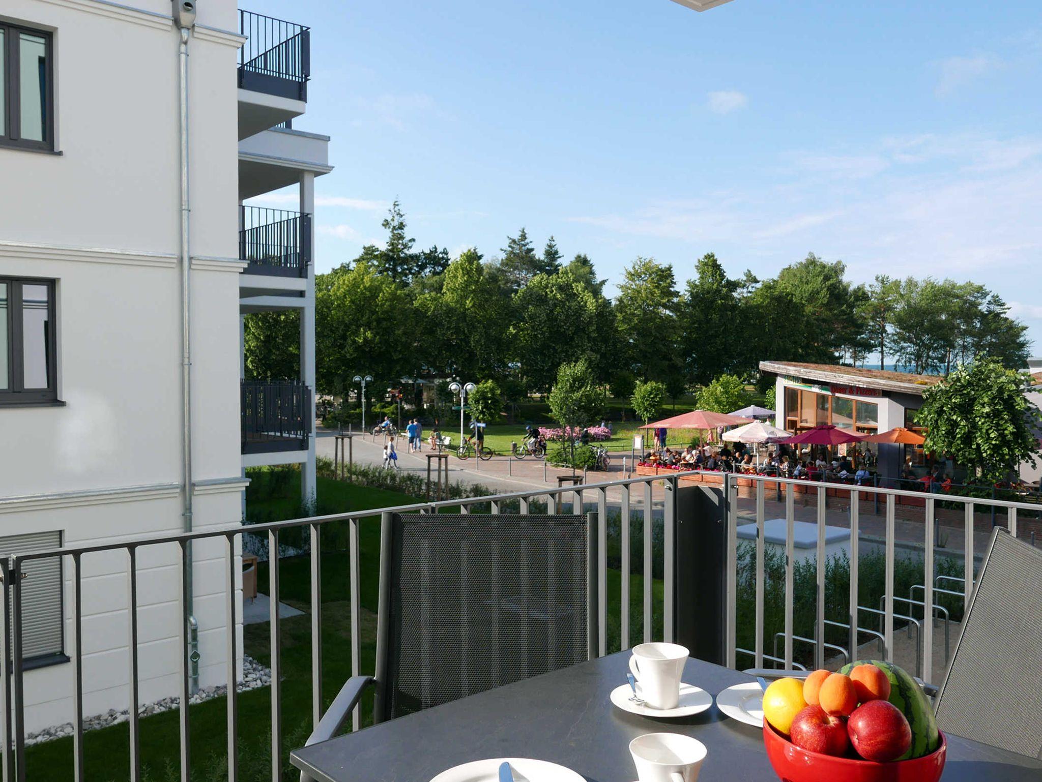 Die helle 2-Zimmer-Wohnung für 2-3 Personen hat einen Balkon mit seitlichem Meerblick und ist modern und hochwertig eingerichtet. Ein Stellplatz ist vorhanden.