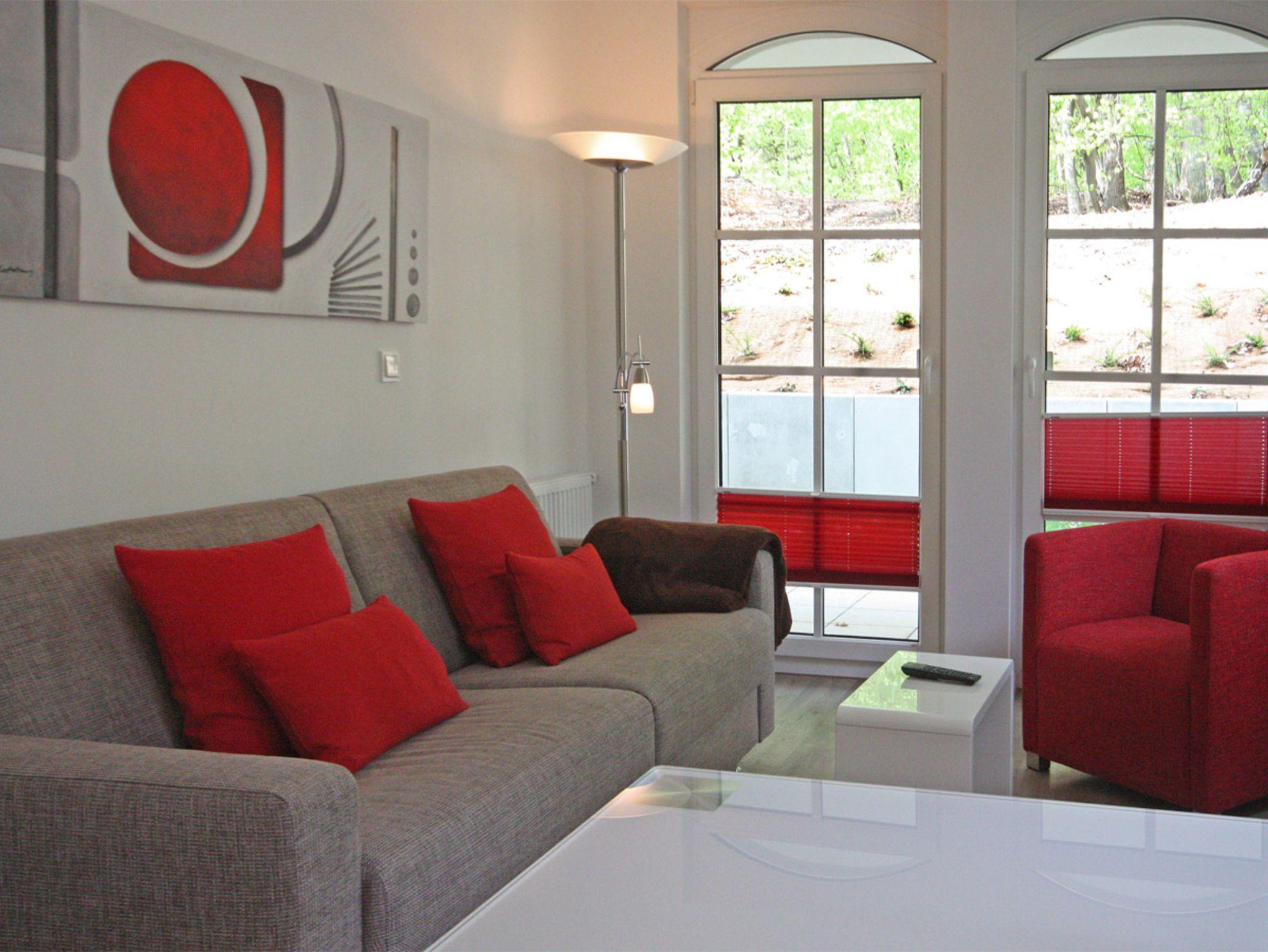 Die Eckwohnung Fischerhüs ist ebenerdig. Im separaten Schlafzimmer ist ein Doppelbett für zwei Personen und ein extra Fernseher. Im Duschbad gibt es eine begehbare Dusche. Sollten Sie mit Kindern anreisen, können Sie ein Babybett (für ein Kind bis 2 Jahre) sowie einen Hochstuhl hinzubuchen. Zur Nichtraucherwohnung gehört ein PKW-Stellplatz in der Tiefgarage des Hauses.