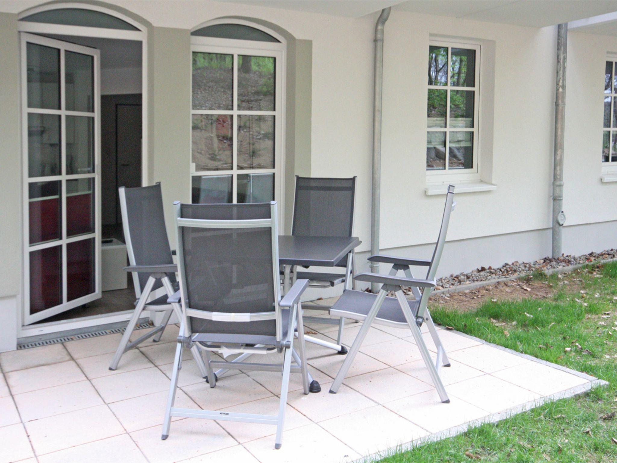 Moderne, strandnahe Ferienwohnung für 2 Personen mit Terrasse, WLAN und extra Fernseher im Schlafzimmer. Die Ferienwohnung ist im Erdgeschoss der Residenz Haus Meeresblick