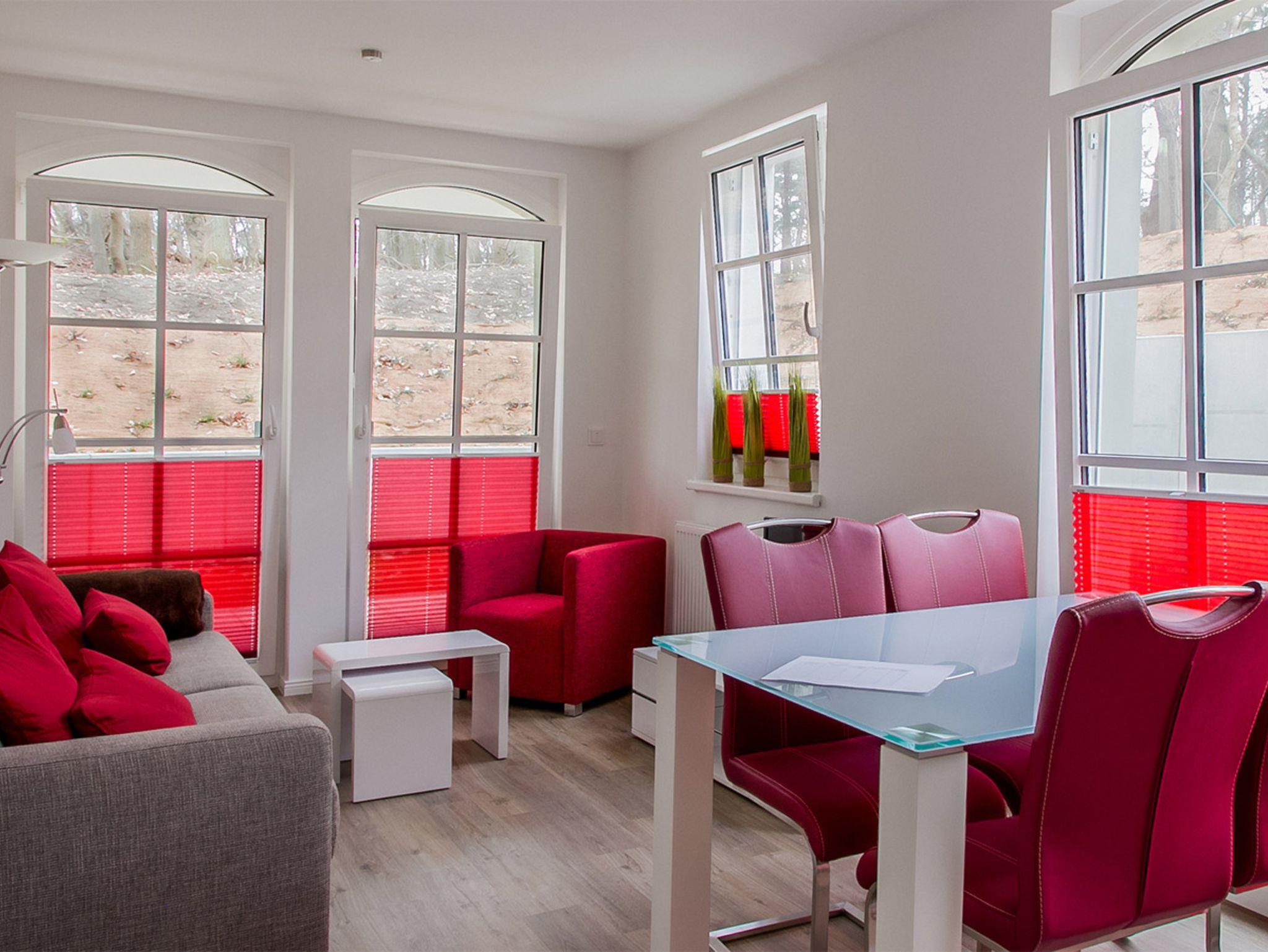 Die exklusive Anlage wurde 2013 eröffnet und hat einen direkten Zugang zum Strand. Das Haus Meeresblick ist mit einem Fahrstuhl, einer Tiefgarage und einem großen Wellnessbereich mit Schwimmbad (ca. 8,00 m x 4,00 m - 1,35 m tief), zwei Saunen (eine finnische Sauna/eine Bio-Sauna) und einem Massagebereich ausgestattet. So können Sie sich zu jeder Jahreszeit im Haus Meeresblick erholen.
