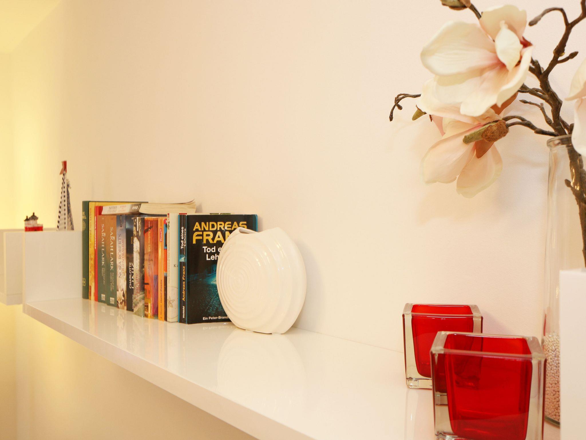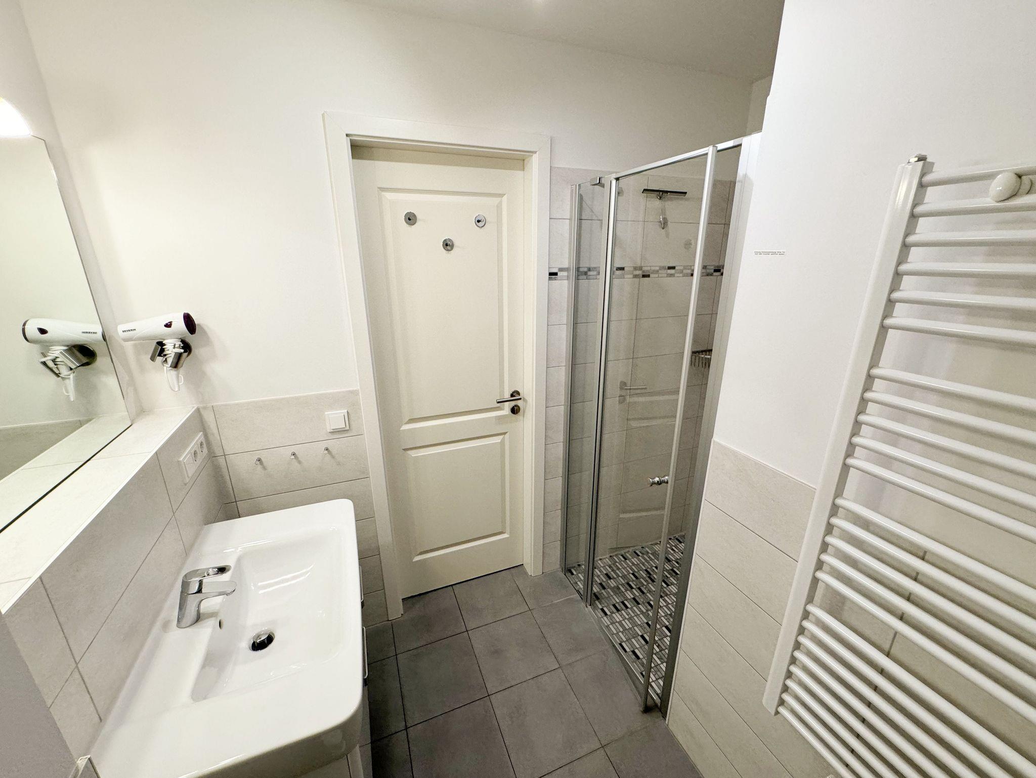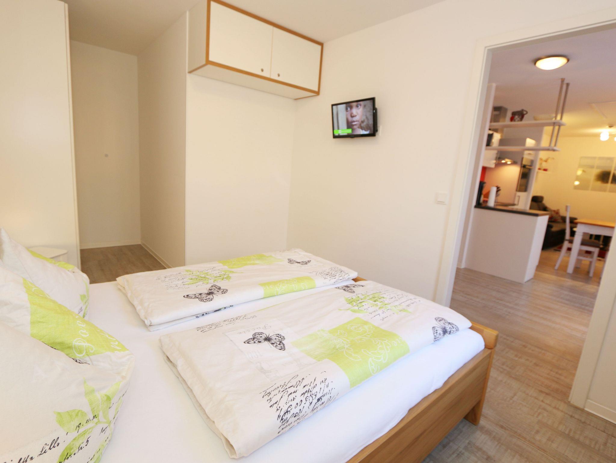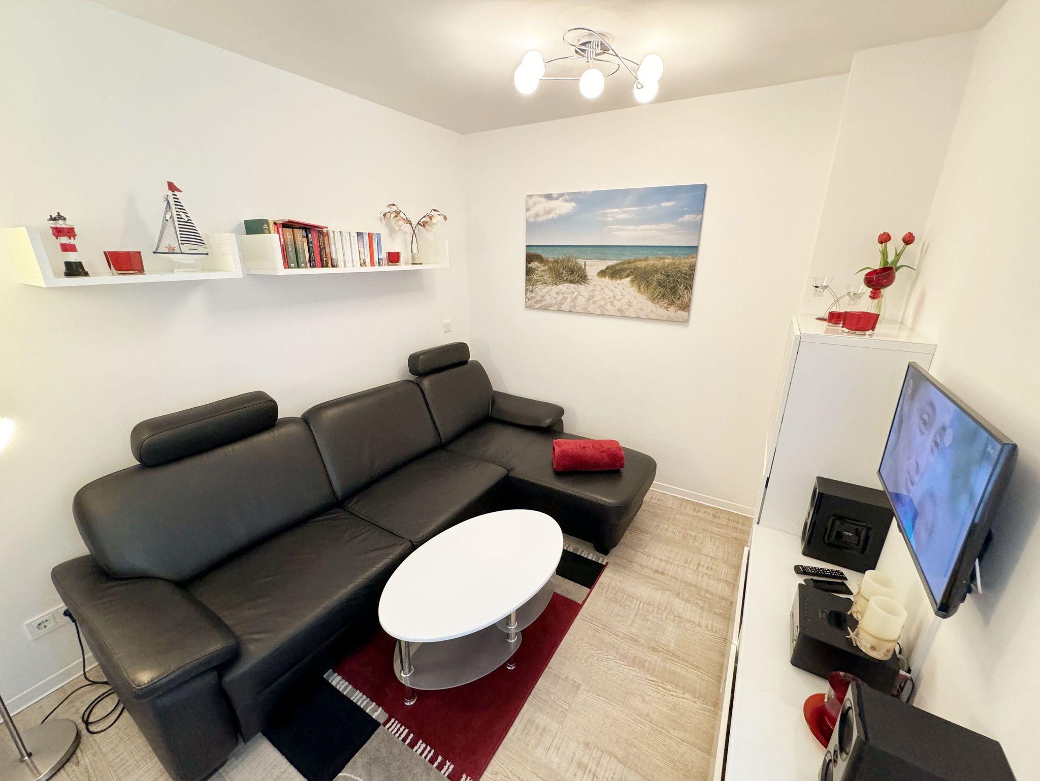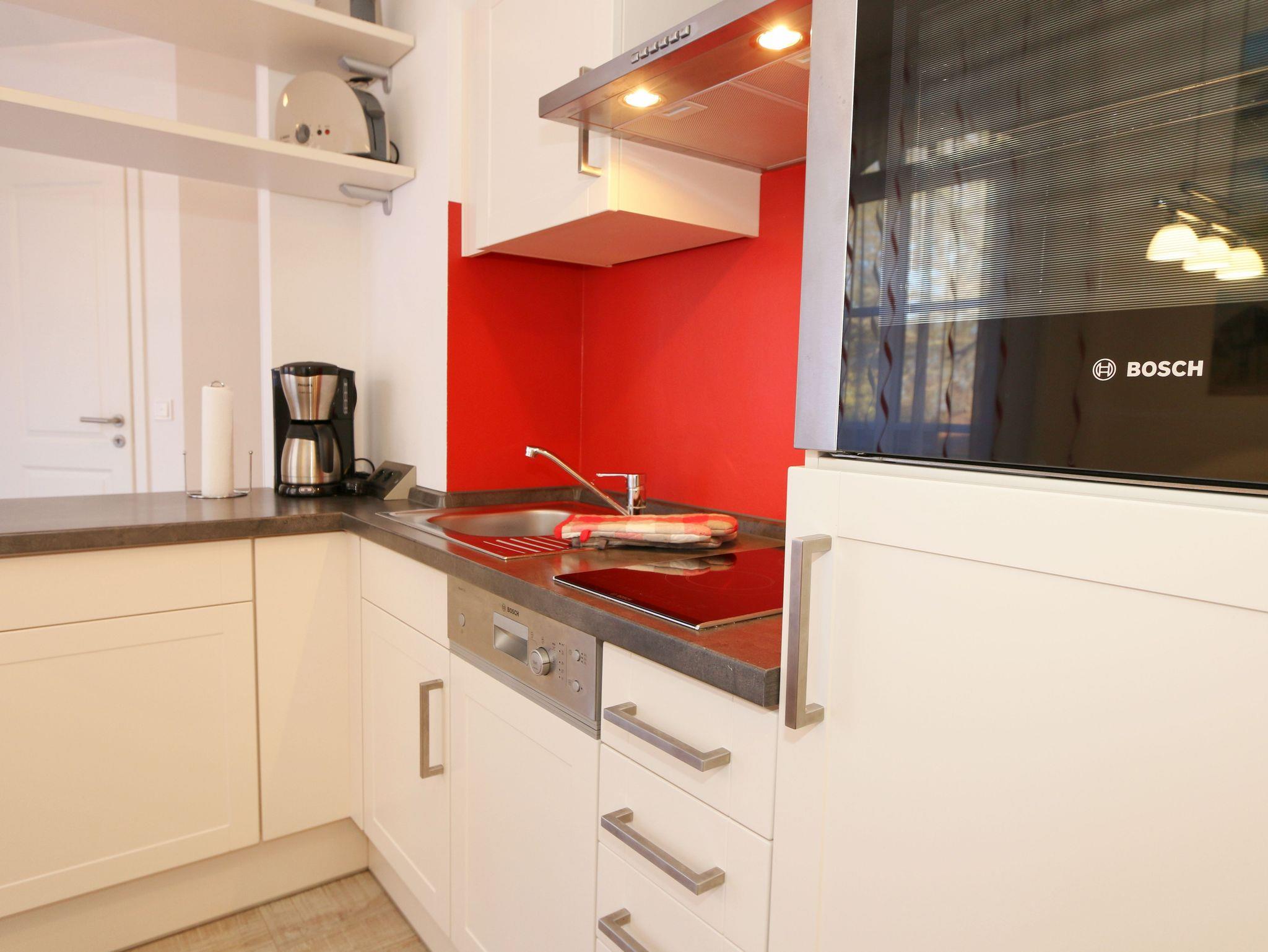 Ihre Nichtraucher-Ferienwohnung ist mit viel Liebe zum Detail ausgestattet und eingerichtet worden. Sie wohnen in einer ca. 42 qm 2-Zimmer Wohnung, die für max. 2 Personen ausgelegt ist. Die Wohnung A.2.23 befindet sich in der 2. Etage und ist per Fahrstuhl von der Tiefgarage bequem zu erreichen. In der Wohnung finden Sie einen kombinierten Wohn/Koch- und Essbereich. Die integrierte Küchenzeile lässt mit Backofen, 2 Zonen-Ceranfeld, Spülmaschine, Kühlschrank mit Gefrierfach, Kaffeemaschine, Wasserkocher, Toaster und anderen praktischen Kochutensilien keine Wünsche offen. Im Wohnbereich befindet sich eine Essecke, eine gemütliche Couch, LCD-TV, DVD-Player und eine Musikanlage mit USB und IPhone/IPod Dock Station sind vorhanden. Auch auf einen Internetanschluss (WLAN) müssen Sie im Urlaub nicht verzichten. Dieser ist für Sie inklusive! Der große Balkon ist vom Wohn/Essbereich begehbar und möbliert. Das Schlafzimmer ist mit einem Doppelbett (1,80m x 2,00m), verstellbare Lattenroste, Nachttischkonsolen, einem Kleiderschrank und einem weiteren Flachbild-TV ausgestattet. Das Bad verfügt über eine ebenerdige Dusche, Waschbecken, WC, Handtuchheizkörper sowie einen Fön. Ein kleiner Abstellraum gehört zur Wohnung dazu. Hier finden untereinander Reinigungsutensilien sowie einen Wäscheständer. 1 kleiner Hund (keine Katzen) ist gegen eine Gebühr ein gern gesehener Gast. Ein eigener PKW-Stellplatz (Nr. 105, Einfahrtshöhe 2,00m) befindet sich in der Tiefgarage des Hauses. Im Keller des Hauses haben Sie die Möglichkeit eine Waschmaschine/Trockner gegen Gebühr zu nutzen. Mit dem Fahrstuhl des Hauses A gelangen sie in das Untergeschoss der Meeresblickanlage, wo Sie ein großzügiger und heller Wellnessbereich erwartet. Hier können sie in einem Pool kleine Bahnen schwimmen, in 2 Saunen Ihren Kreislauf in Schwung bringen, in einem dazugehörigen Ruheraum Ihren Körper wieder beruhigen, in einer Schneckendusche sowie weiteren Duschen das kühle Nass genießen und auf einer Außenterrasse mit Außendusche die frische Luft einatmen. Die Erstausstattung eines Wäschepaketes (komplette Bettwäsche, 1 Duschhandtuch, 2 kleine Handtücher) können Sie bis 14 Tage vor Anreise gegen einen Aufpreis dazu buchen oder durch eigene ergänzen. Ab 2 gebuchten Paketen erhalten Sie einmalig 1 Geschirrhandtuch und 1 Duschvorleger hinzu.