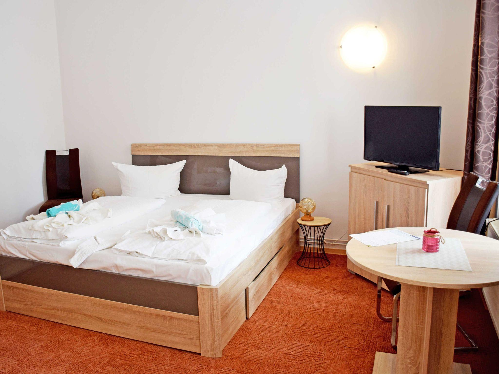 Gegen Aufpreis können Wäschepakete dazu gebucht werden. Das moderne Bad ist mit Dusche, WC und Waschtisch ausgestattet und verfügt über Tageslicht (nur Zimmer 01).