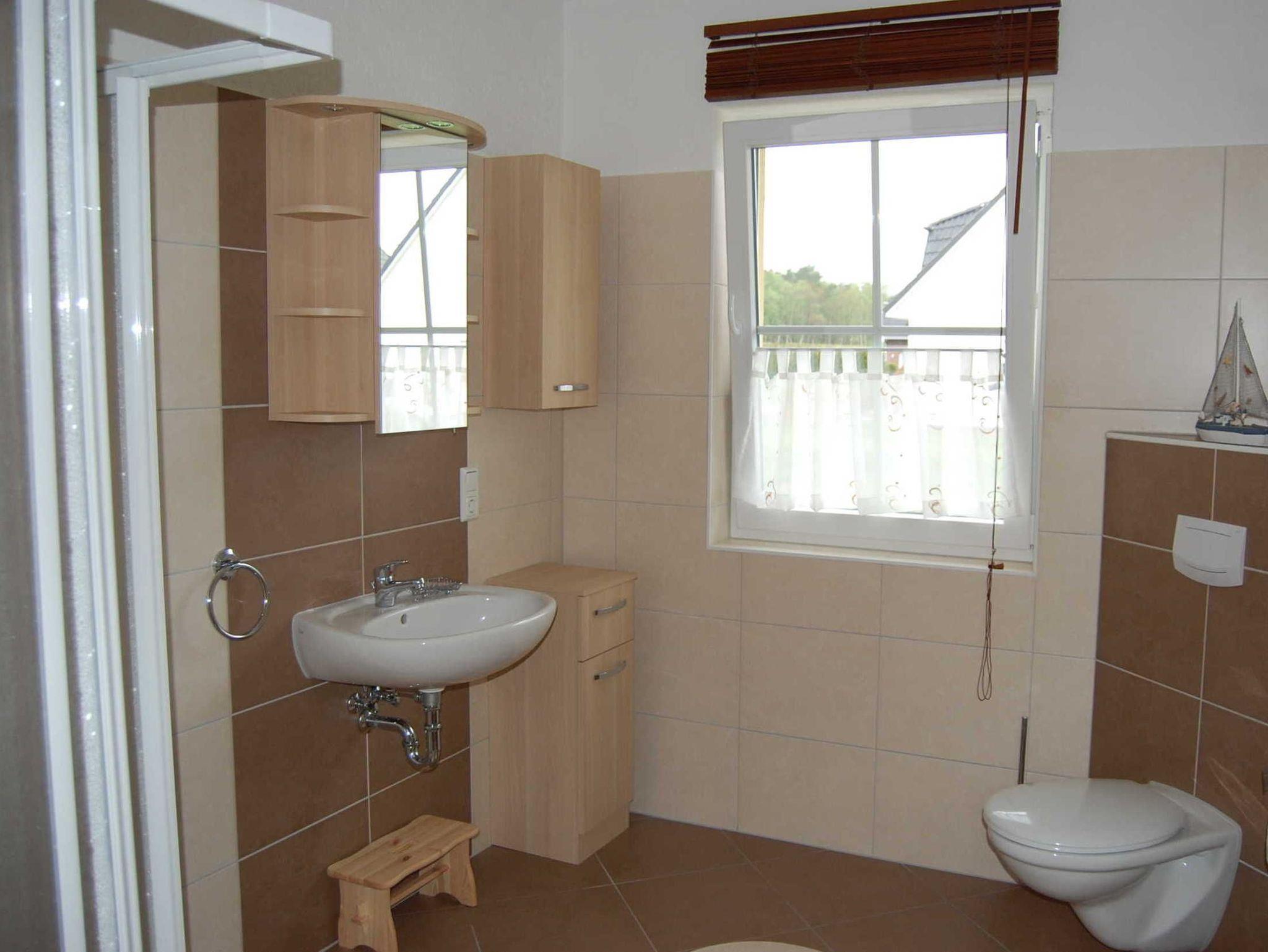 Das Bad besteht aus einem WC und einer grossen Dusche.