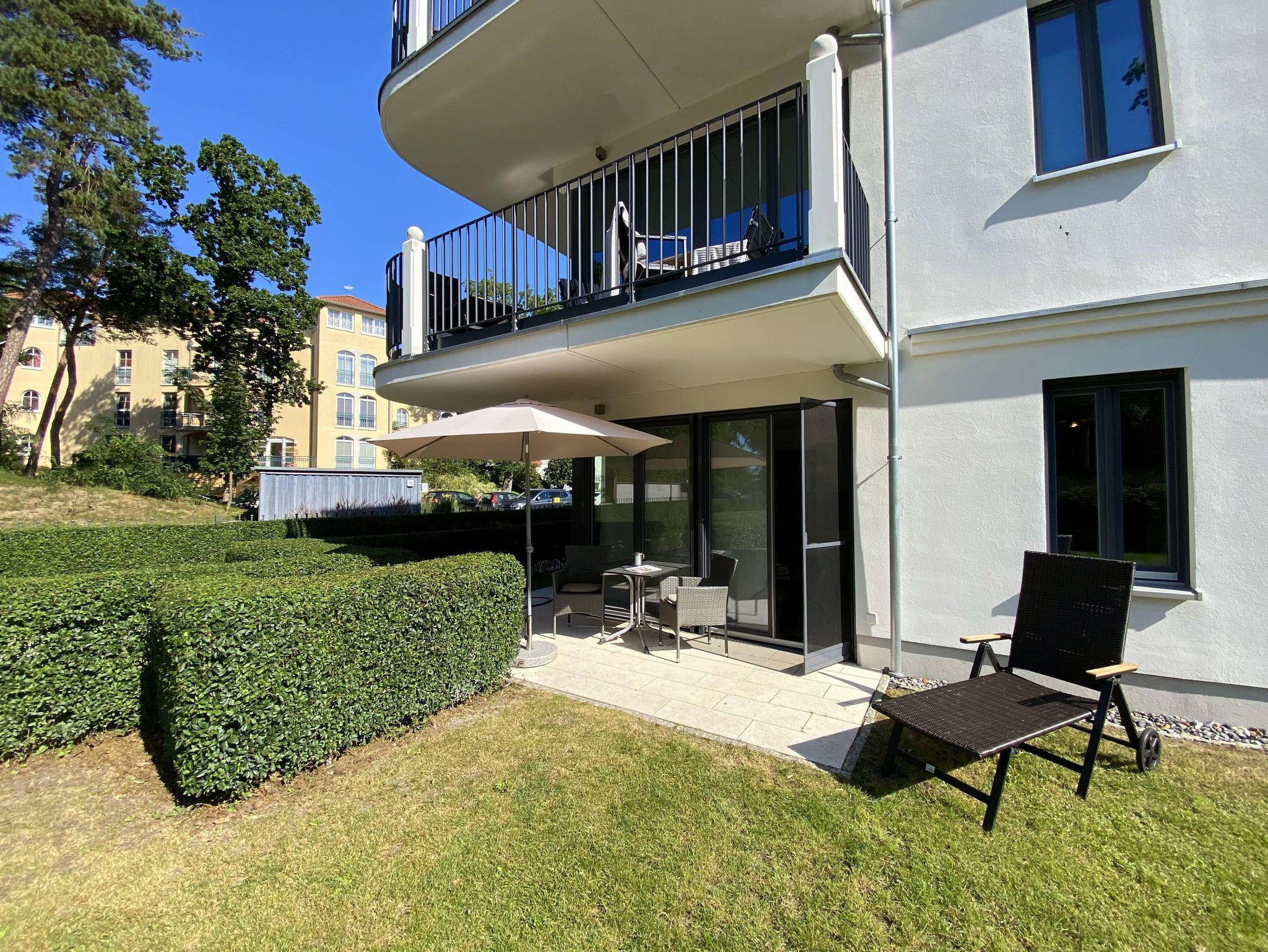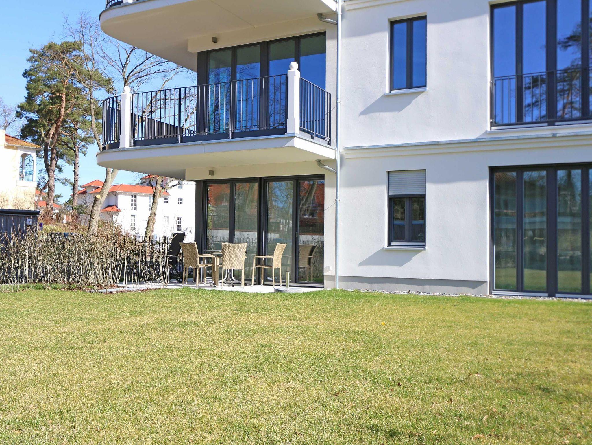 Am Kurpark des Ortes Baabe liegt die moderne Nichtraucher-Ferienwohnung Nr. 4 in der im Bäderstil erbauten Strandvilla Andrea. Die komfortable Wohnung liegt in der ersten Reihe zum Ostseestrand und ist nach Süden ausgerichtet. Da sich die Wohnung im Erdgeschoss befindet, verfügt sie über eine eigene Terrasse mit dazugehöriger, großzügiger Rasenfläche, die von Ihnen allein genutzt werden kann. Um Ihre Einkäufe und frische Backwaren zu besorgen, können Sie die nahegelegenen Geschäfte durch kurze Fußwege erreichen. Das in unmittelbarer Nähe gelegene Zentrum des Kurortes bietet vielfältige Einkaufsmöglichkeiten sowie verschiedene Restaurants und Cafés.