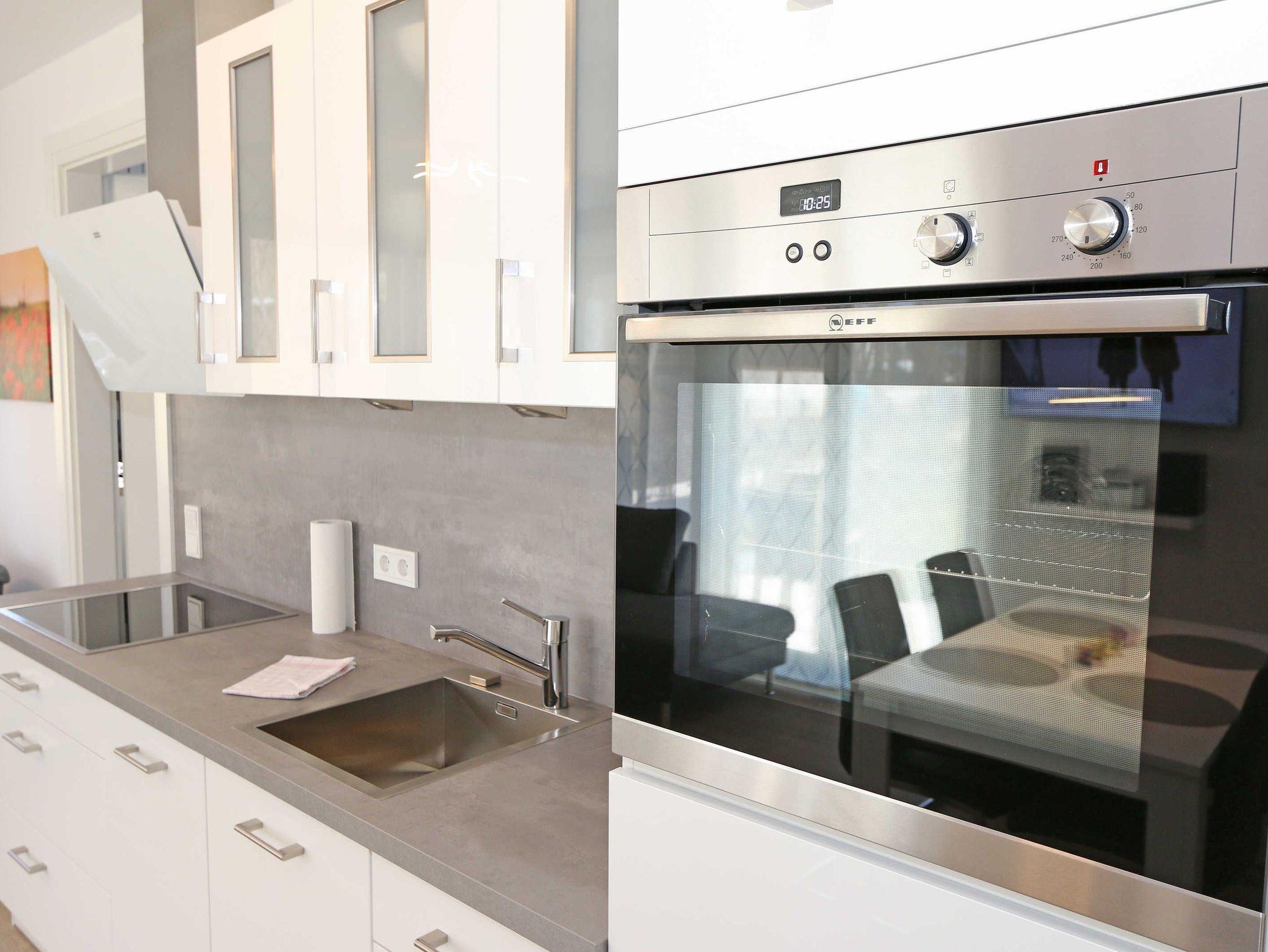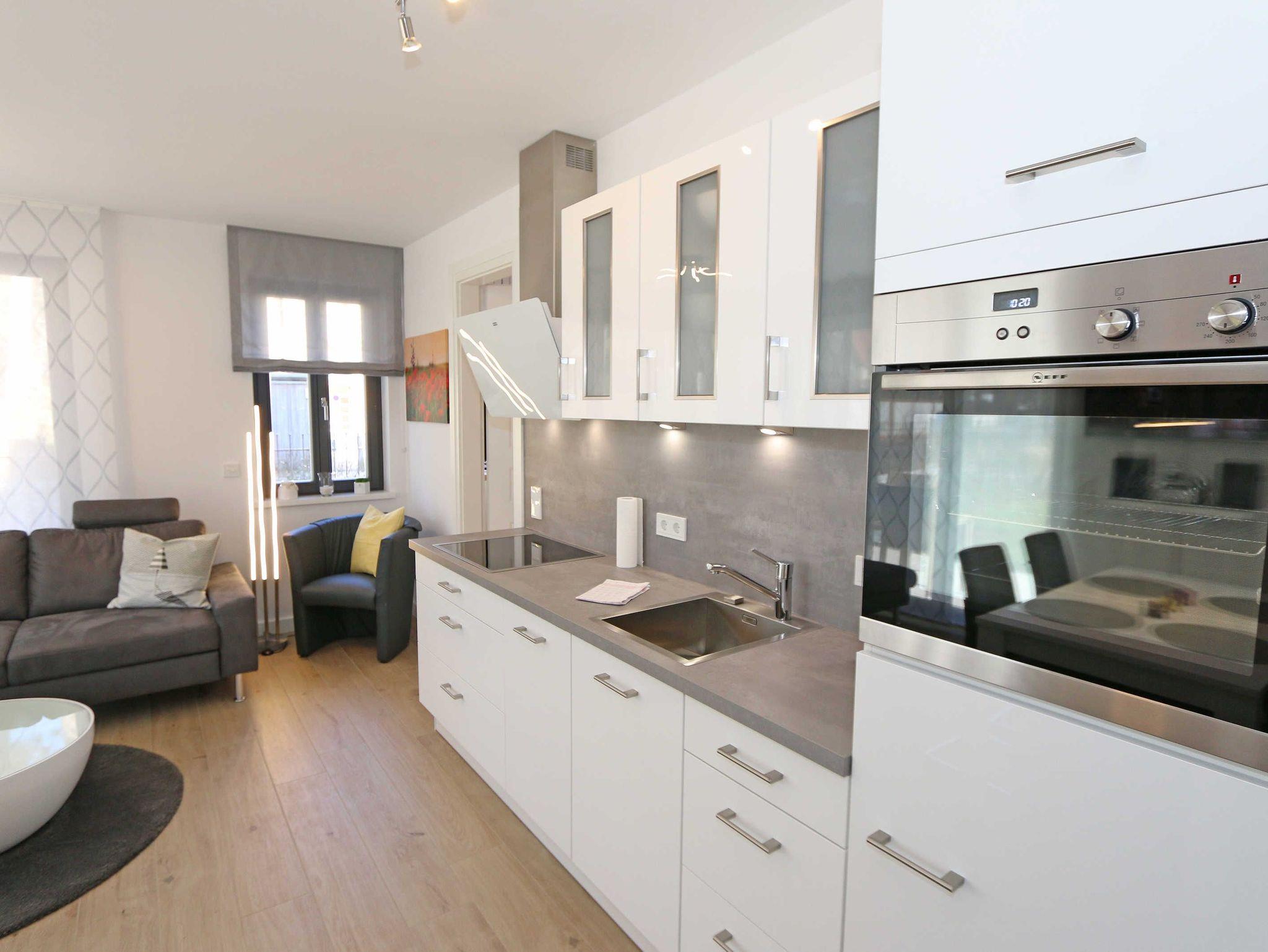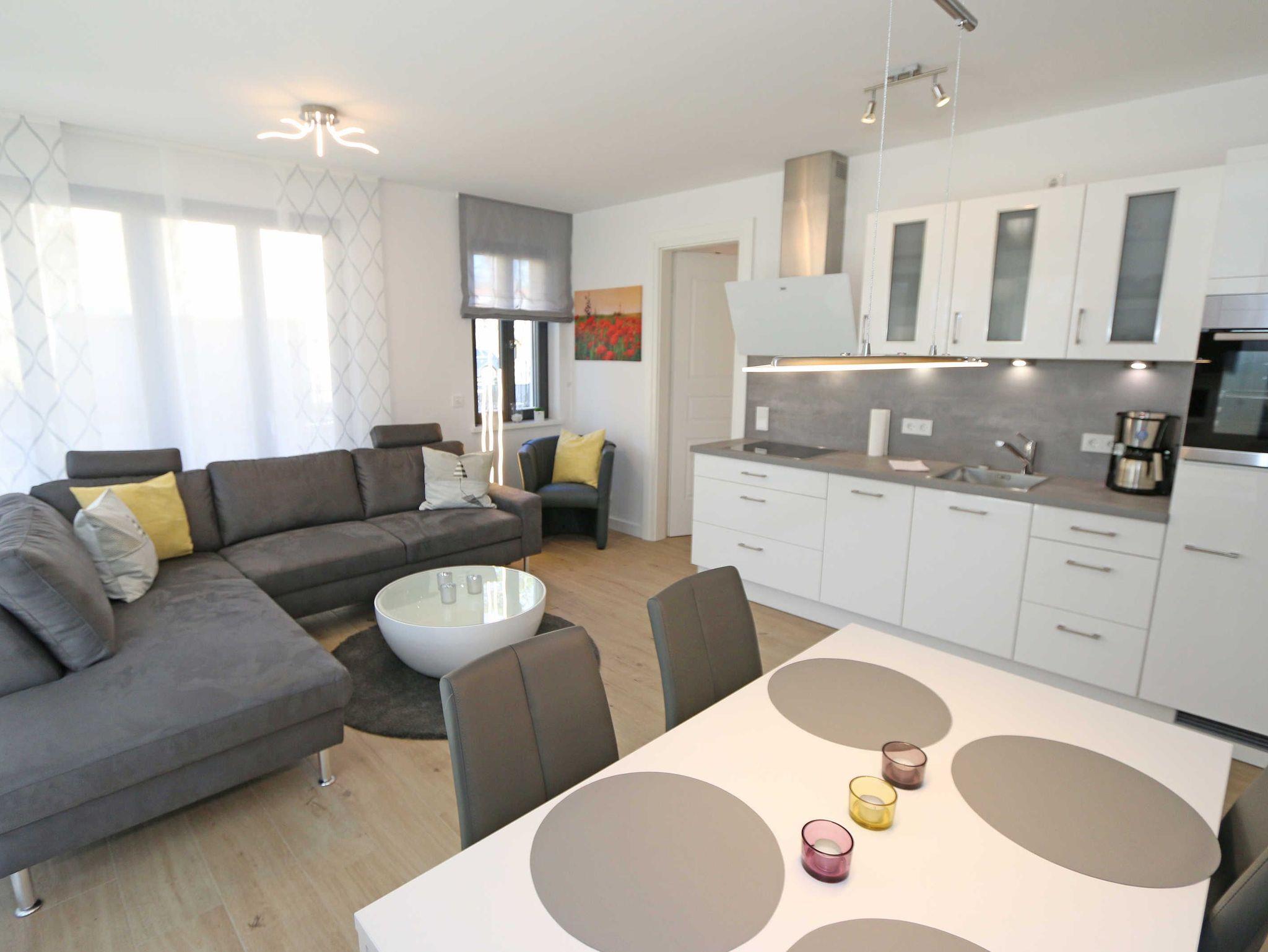Die ca. 65 m² große 3-Zimmer-Ferienwohnung (Nichtraucher) bietet Ihnen durch ihre hochwertige Ausstattung beste Voraussetzungen für einen erholsamen Urlaub. Durch eine moderne und großzügige Raumaufteilung herrscht genügend Platz für 2 bis 4 Personen. Im lichtdurchfluteten Wohn-/Esszimmer können Sie durch die komfortable Eckcouch, einen Couchtisch, eine Leselampe, ein Sideboard und einen großen Essplatz gemütliche Tage verbringen. Für Unterhaltung sorgen dabei ein Smart-TV, eine Stereoanlage mit DAB-Radio inkl. CD-Player und das in der Wohnung kostenlos, verfügbare W-LAN. Vom Wohnbereich gelangen Sie auf die nach Süden ausgerichtete und bestuhlte Terrasse mit einer großzügigen Rasenfläche und Sonnenschirm, die von Ihnen allein genutzt werden kann. Für Ihr leibliches Wohl können die moderne Küchenzeile mit einem Ceranfeld, Backofen, Spülmaschine, Kühlschrank mit Eisfach, Kaffeemaschine, Dolce Gusto Maschine, Toaster, Wasserkocher sowie diverse Küchenutensilien sorgen. Ein weiterer Smart-TV befindet sich in einem der beiden Schlafzimmer, die jeweils mit bequemen Betten (ein Schlafzimmer verfügt über ein Doppelbett (1,80 m x 2,00 m) das andere über 2 Einzelbetten (je 0,90 m x 2,00 m), verstellbare Lattenroste, Nachttischablagen und Kleiderschränken für Ihre Urlaubsgarderobe ausgestattet sind. Für einen ruhigen Schlaf dienen die Außenrollos. Vom weitläufigen Flurbereich gelangen Sie direkt in die zwei komfortablen Bäder, die jeweils mit ebenerdiger Regen-Dusche, WC, Fön, Kosmetikspiegel, Handtuchtrockner sowie einen Waschplatz mit großzügigem Spiegel und breiter Ablagefläche eingerichtet sind. Alle Räumlichkeiten sind mit einer Fußbodenheizung ausgestattet sowie mit Insektenschutzgitter versehen. Haustiersind nicht erlaubt. Die hauseigene Tiefgarage (Platz Nr. 4 / Einfahrtshöhe 2,00 m) sorgt dafür, dass Ihr PKW sicher untergebracht ist. Durch die Tiefgarage gelangen Sie direkt in die Strandvilla Andrea, die auch über einen Lift verfügt, um Ihr Reisegepäck mühelos in die Ferienwohnung zu transportieren. Im Keller befinden sich außerdem eine münzgesteuerte Waschmaschine, ein Wäschetrockner und eine Sauna mit angrenzender Dusche, WC und einem Ruheraum, die zum Entspannen einladen. Auf dem Gelände der Strandvilla befinden sich überdachte Fahrradständer, an denen Sie eigene oder geliehene Räder abstellen können. Die Erstausstattung eines Wäschepaketes (komplette Bettwäsche, 1 Duschhandtuch, 2 kleine Handtücher) können Sie bis 14 Tage vor Anreise gegen einen Aufpreis dazu buchen oder durch eigene ergänzen. Ab 2 gebuchten Paketen erhalten Sie einmalig 1 Geschirrhandtuch und 1 Duschvorleger hinzu.