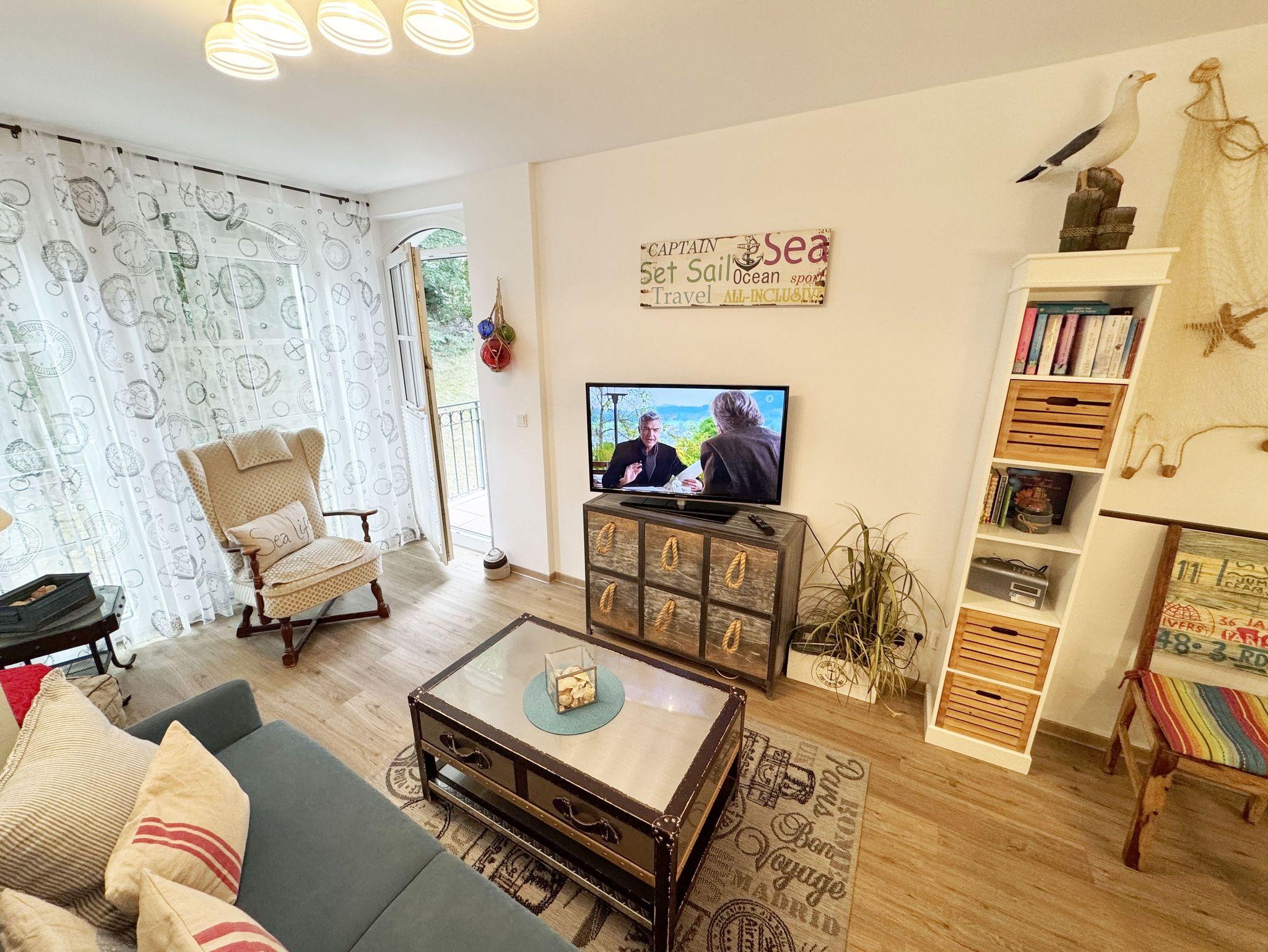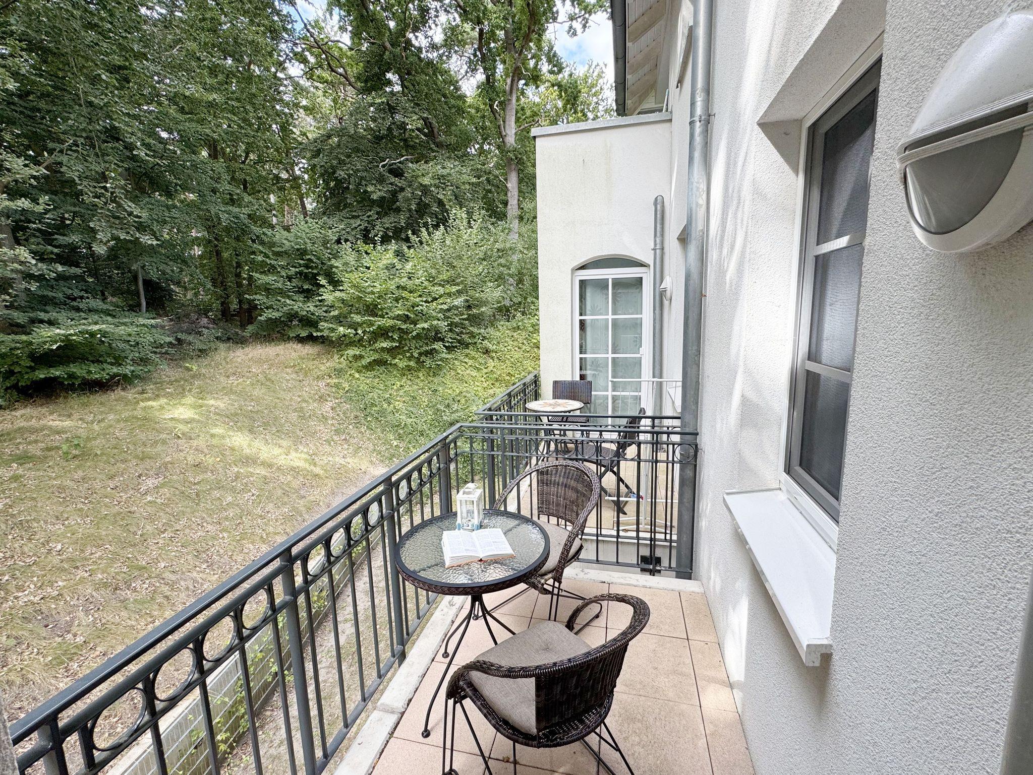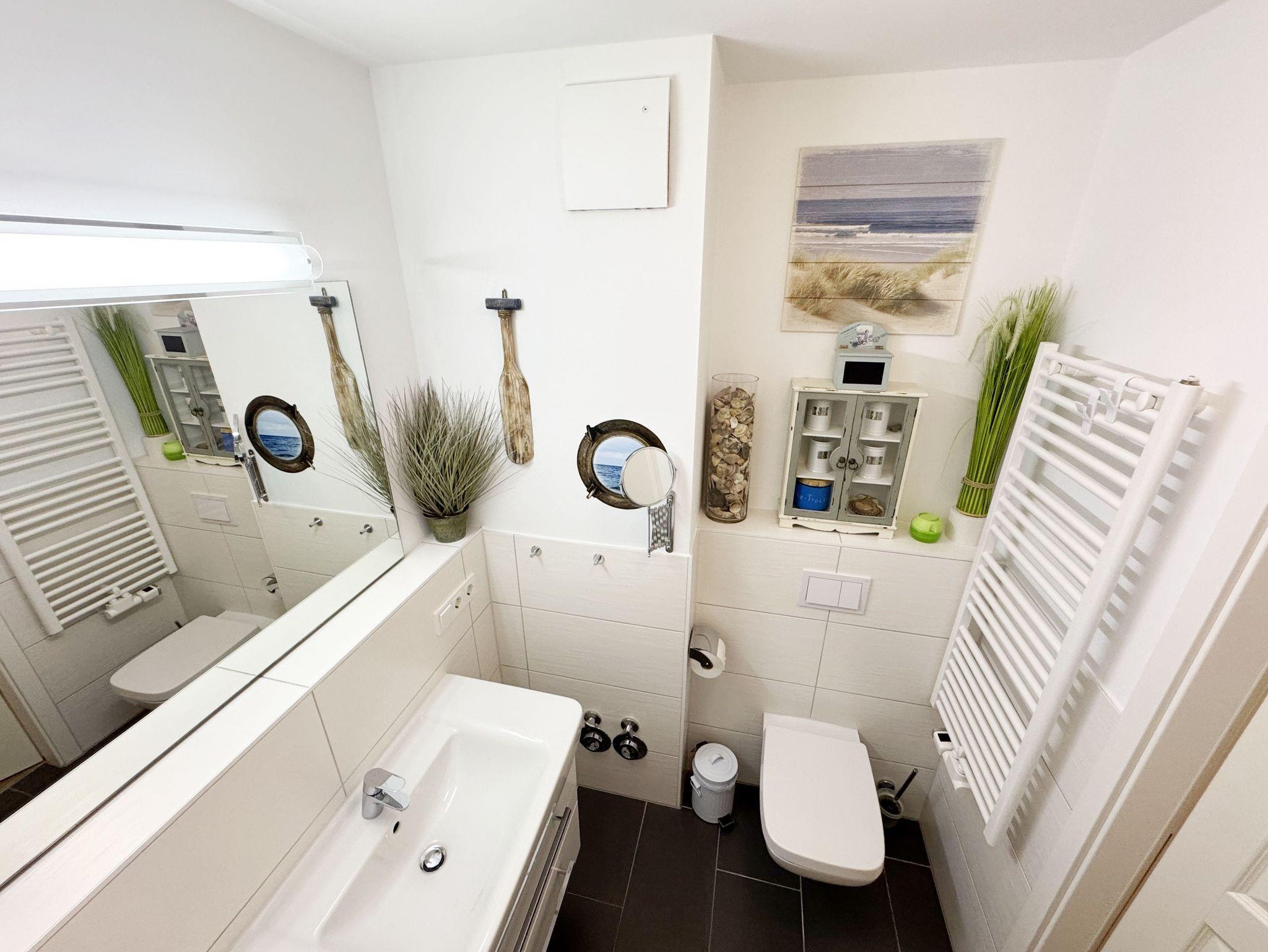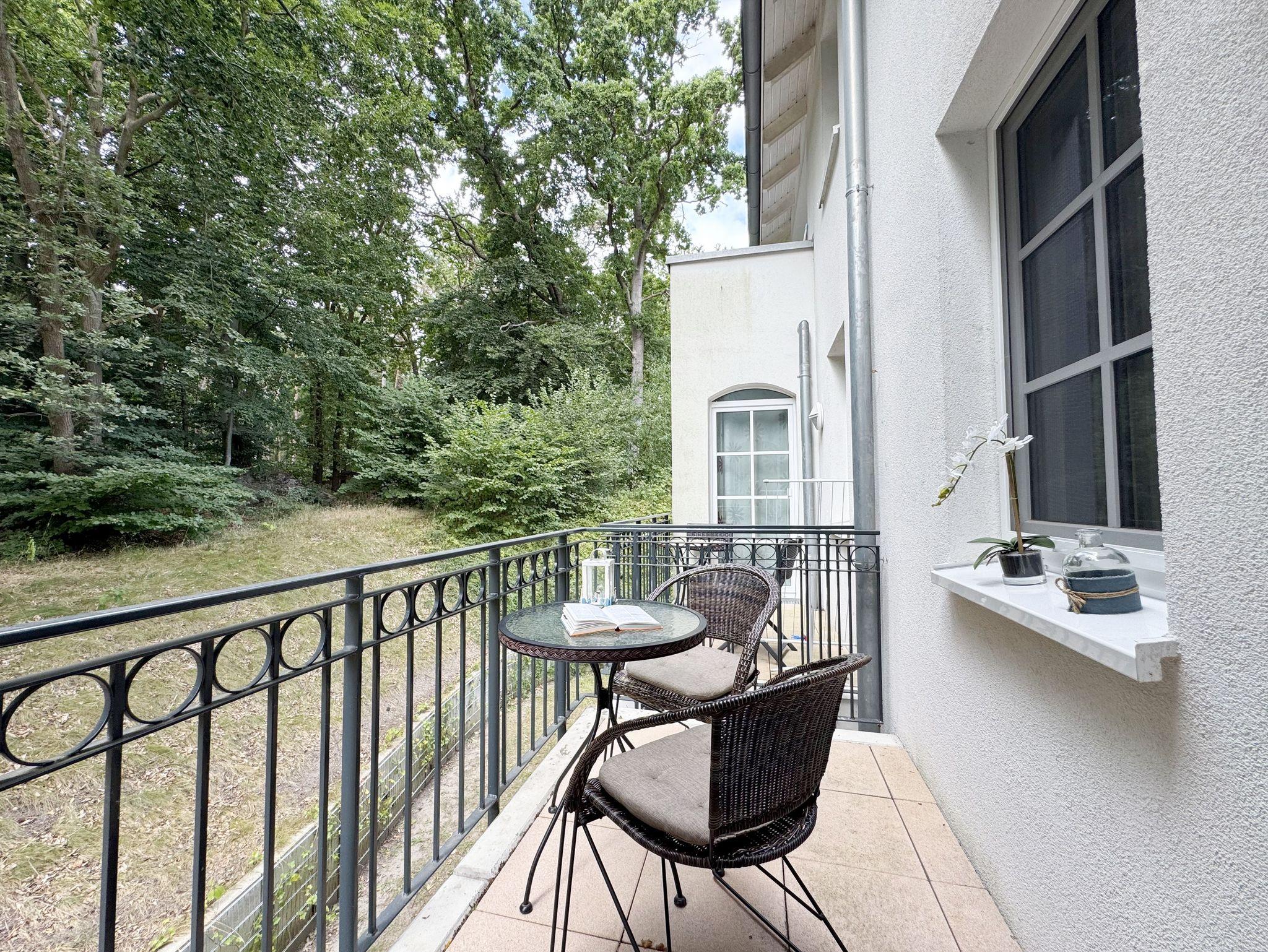 Dieses individuell eingerichtete Nichtraucher-Appartement mit separatem Schlafzimmer im zweiten Obergeschoss des Hauses Meeresblick bietet Ihnen ausreichend Platz. Auf ca. 41 m² fühlen Sie sich mit max. 2 Erwachsene + 1 Kleinkind bis 3 Jahre im Kinderreisebett wohl. Sie erwartet ein Wohn-/Essbereich mit integrierter Küchenzeile, die mit einem 4-Zonenkochfeld, einem Kühlschrank mit Gefrierfach, einer Geschirrspülmaschine, einer Kaffeemaschine, einen Toaster und einem Wasserkocher und allen Küchenutensilien vollwertig ausgestattet ist. Natürlich wurde auch an einen gemütlichen Essplatz gedacht. Im angrenzenden Wohnbereich lädt eine Couch zum Verweilen ein. Der gemütliche Sessel, ist der ideale Ort, um den Tag ausklingen zu lassen, oder auch mal, um zwischendurch zu relaxen. Zusätzlich finden Sie hier noch eine Stehlampe, einen Couchtisch sowie Regale wo etwas Urlaubslektüre auf Sie wartet. Ein Internetanschluss (WLAN/LAN) steht Ihnen inklusive zur Verfügung. Der technische Bereich wird durch einen Flachbild-TV sowie ein DAB-Radio abgerundet. Auf dem windgeschützten und bestuhlten Balkon (Nord) können Sie Ihre Ruhe finden, da er ist nur von einer Seite einsehbar ist. Diesen erreichen Sie vom Wohnbereich. Im separaten Schlafzimmer stört Sie in der Nacht höchstens das Geräusch des Windes, der durch die Kiefern weht. Ein 1,80 m x 2,00 m Doppelbett, mit Komfort- Wendematratzen (HG 3 & 4), Nachttischablagen einen geräumigen Kleiderschrank, ein Flachbild TV sowie Insektenschutzgitter runden die Ausstattung ab. Das moderne Duschbad verfügt über eine ebenerdige Glasdusche, ein WC, ein Waschplatz, einen Kosmetikspiegel, einen Fön sowie einem Schrank. Haustiere sind nicht erlaubt. Ein Tiefgaragen-Stellplatz (Nr. 16, Einfahrtshöhe 2,00m) steht unseren Feriengästen kostenlos zur Verfügung, von wo Sie Ihre Ferienwohnung bequem mit dem Aufzug erreichen können. Ein Ausweichstellplatz im Freien befindet sich hinter dem Café Zeit. Der Wellnessbereich, der exklusiv den Bewohnern des Haus Meeresblick vorbehalten ist, beinhaltet ein Schwimmbecken (ca. 8,00 x 4,00 m - 1,35 m tief), zwei Saunen (1 Bio-Sauna & 1 Finnische Sauna), eine Erlebnisdusche, drei Duschanlagen, eine Schneckendusche sowie Umkleiden für Damen und Herren, und natürlich WCs. Es findet sich hier auch eine schöne Außenterrasse, die es erlaubt, Sonne und Seeluft ohne den Trubel des Strandes zu genießen. Im Keller des Hauses haben Sie die Möglichkeit eine Waschmaschine/Trockner gegen Gebühr zu nutzen. Ein Kinderreisebett steht für unsere kleinen Gäste inklusive zur Verfügung. Einen Hochstuhl können gegen eine Gebühr dazubuchen. Die Erstausstattung eines Wäschepaketes (komplette Bettwäsche, 1 Duschhandtuch, 2 kleine Handtücher) können Sie bis 14 Tage vor Anreise gegen einen Aufpreis dazu buchen oder durch eigene ergänzen. Ab 2 gebuchten Paketen erhalten Sie einmalig 1 Geschirrhandtuch und 1 Duschvorleger hinzu.