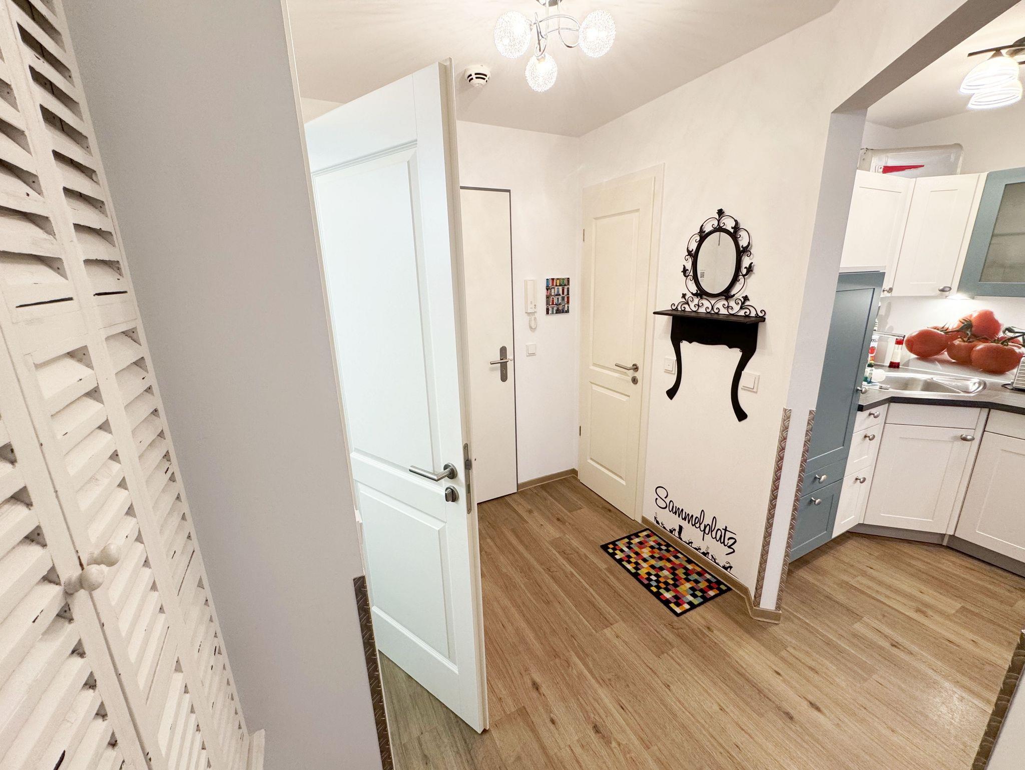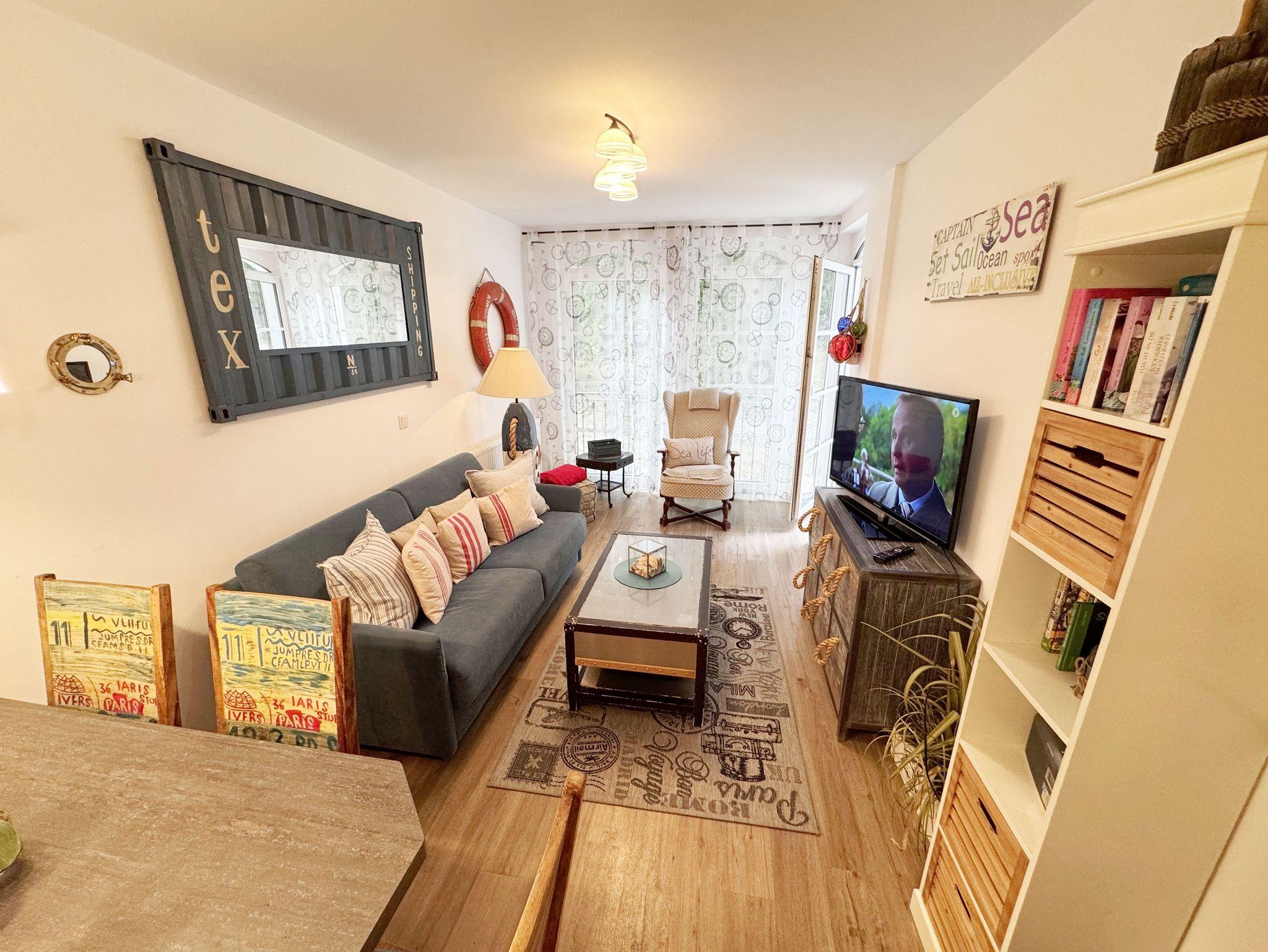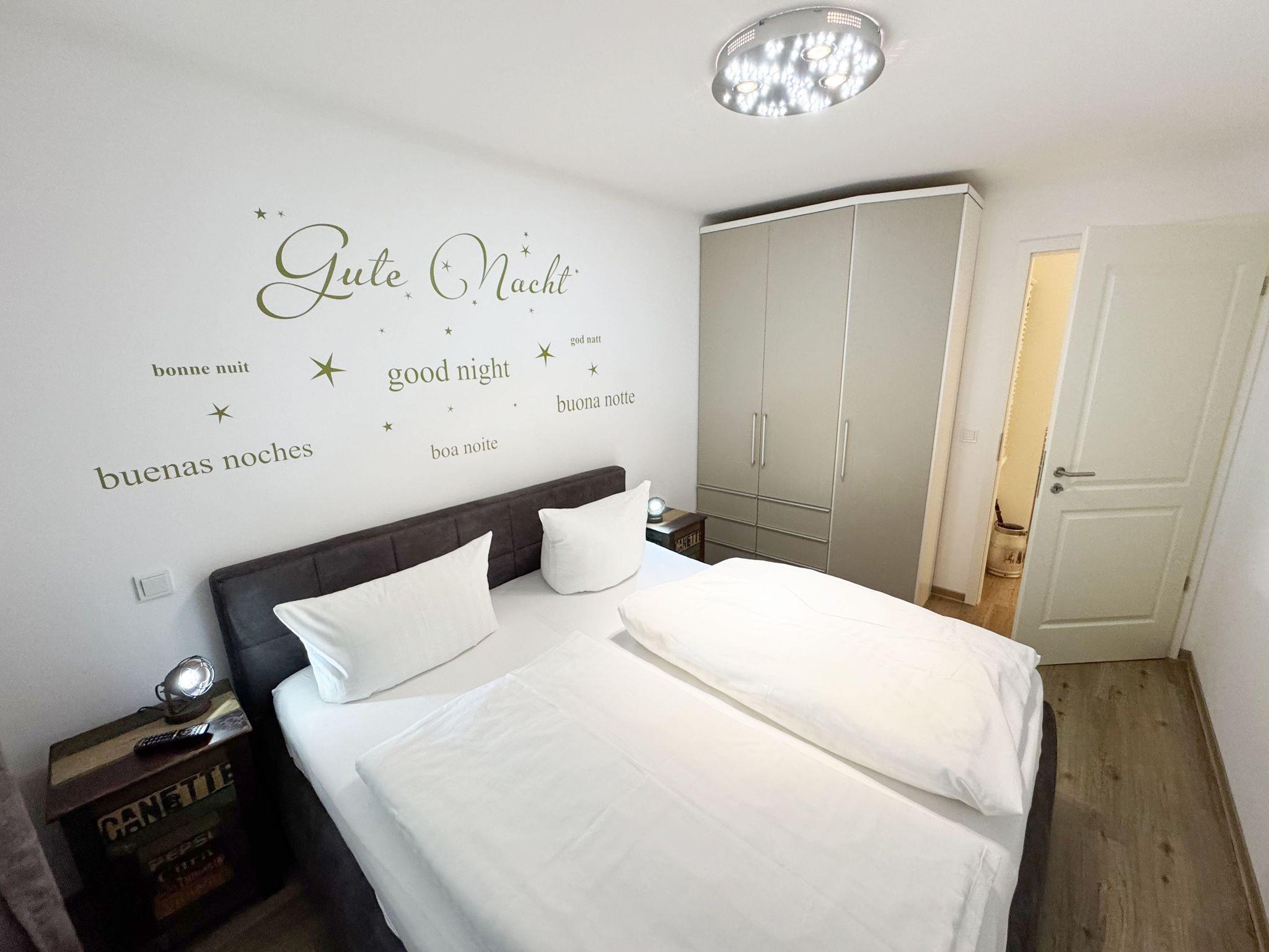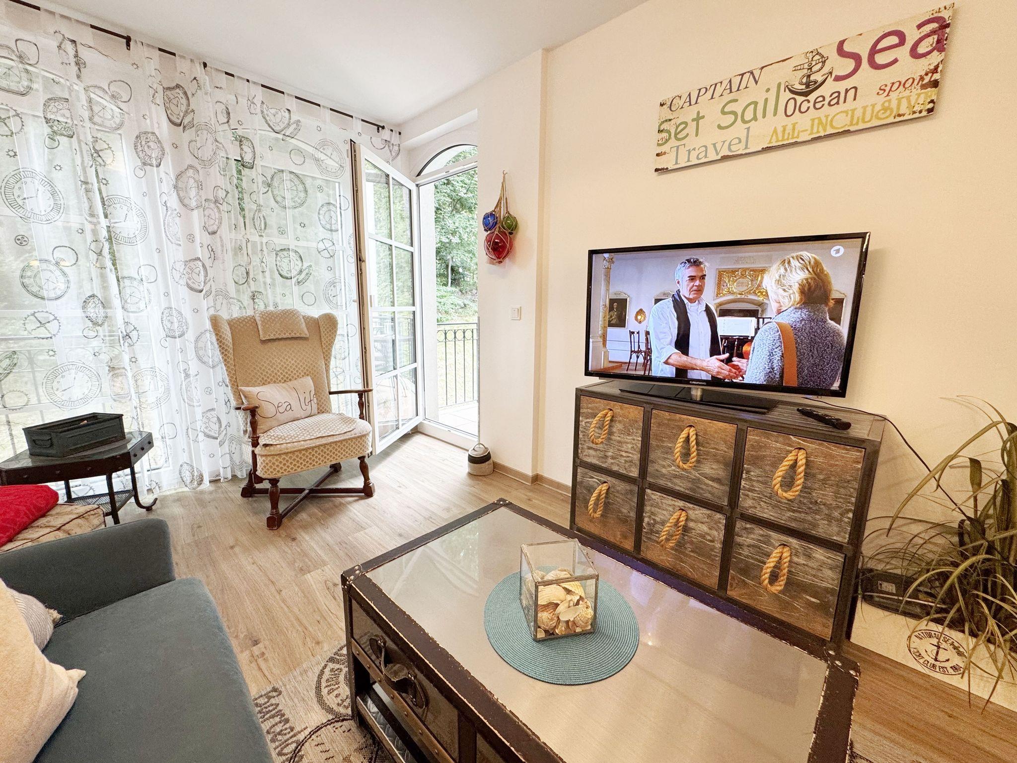 Dieses individuell eingerichtete Nichtraucher-Appartement mit separatem Schlafzimmer im zweiten Obergeschoss des Hauses Meeresblick bietet Ihnen ausreichend Platz. Auf ca. 41 m² fühlen Sie sich mit max. 2 Erwachsene + 1 Kleinkind bis 3 Jahre im Kinderreisebett wohl. Sie erwartet ein Wohn-/Essbereich mit integrierter Küchenzeile, die mit einem 4-Zonenkochfeld, einem Kühlschrank mit Gefrierfach, einer Geschirrspülmaschine, einer Kaffeemaschine, einen Toaster und einem Wasserkocher und allen Küchenutensilien vollwertig ausgestattet ist. Natürlich wurde auch an einen gemütlichen Essplatz gedacht. Im angrenzenden Wohnbereich lädt eine Couch zum Verweilen ein. Der gemütliche Sessel, ist der ideale Ort, um den Tag ausklingen zu lassen, oder auch mal, um zwischendurch zu relaxen. Zusätzlich finden Sie hier noch eine Stehlampe, einen Couchtisch sowie Regale wo etwas Urlaubslektüre auf Sie wartet. Ein Internetanschluss (WLAN/LAN) steht Ihnen inklusive zur Verfügung. Der technische Bereich wird durch einen Flachbild-TV sowie ein DAB-Radio abgerundet. Auf dem windgeschützten und bestuhlten Balkon (Nord) können Sie Ihre Ruhe finden, da er ist nur von einer Seite einsehbar ist. Diesen erreichen Sie vom Wohnbereich. Im separaten Schlafzimmer stört Sie in der Nacht höchstens das Geräusch des Windes, der durch die Kiefern weht. Ein 1,80 m x 2,00 m Doppelbett, mit Komfort- Wendematratzen (HG 3 & 4), Nachttischablagen einen geräumigen Kleiderschrank, ein Flachbild TV sowie Insektenschutzgitter runden die Ausstattung ab. Das moderne Duschbad verfügt über eine ebenerdige Glasdusche, ein WC, ein Waschplatz, einen Kosmetikspiegel, einen Fön sowie einem Schrank. Haustiere sind nicht erlaubt. Ein Tiefgaragen-Stellplatz (Nr. 16, Einfahrtshöhe 2,00m) steht unseren Feriengästen kostenlos zur Verfügung, von wo Sie Ihre Ferienwohnung bequem mit dem Aufzug erreichen können. Ein Ausweichstellplatz im Freien befindet sich hinter dem Café Zeit. Der Wellnessbereich, der exklusiv den Bewohnern des Haus Meeresblick vorbehalten ist, beinhaltet ein Schwimmbecken (ca. 8,00 x 4,00 m - 1,35 m tief), zwei Saunen (1 Bio-Sauna & 1 Finnische Sauna), eine Erlebnisdusche, drei Duschanlagen, eine Schneckendusche sowie Umkleiden für Damen und Herren, und natürlich WCs. Es findet sich hier auch eine schöne Außenterrasse, die es erlaubt, Sonne und Seeluft ohne den Trubel des Strandes zu genießen. Im Keller des Hauses haben Sie die Möglichkeit eine Waschmaschine/Trockner gegen Gebühr zu nutzen. Ein Kinderreisebett steht für unsere kleinen Gäste inklusive zur Verfügung. Einen Hochstuhl können gegen eine Gebühr dazubuchen. Die Erstausstattung eines Wäschepaketes (komplette Bettwäsche, 1 Duschhandtuch, 2 kleine Handtücher) können Sie bis 14 Tage vor Anreise gegen einen Aufpreis dazu buchen oder durch eigene ergänzen. Ab 2 gebuchten Paketen erhalten Sie einmalig 1 Geschirrhandtuch und 1 Duschvorleger hinzu.