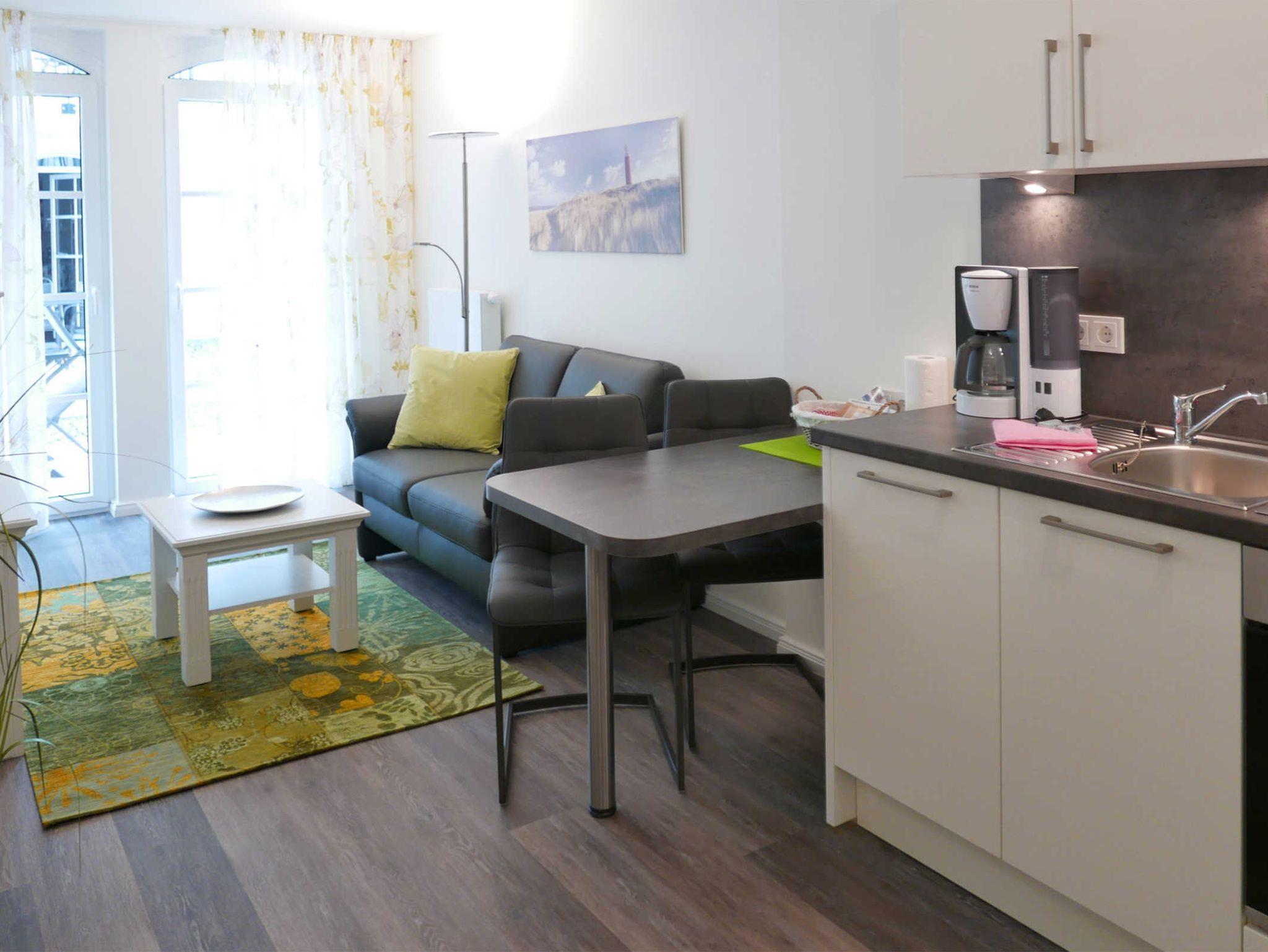 Die 2-Zimmer-Ferienwohnung für 2 Personen liegt im Erdgeschoß im Haus Meeresblick in direkter Strandnähe.