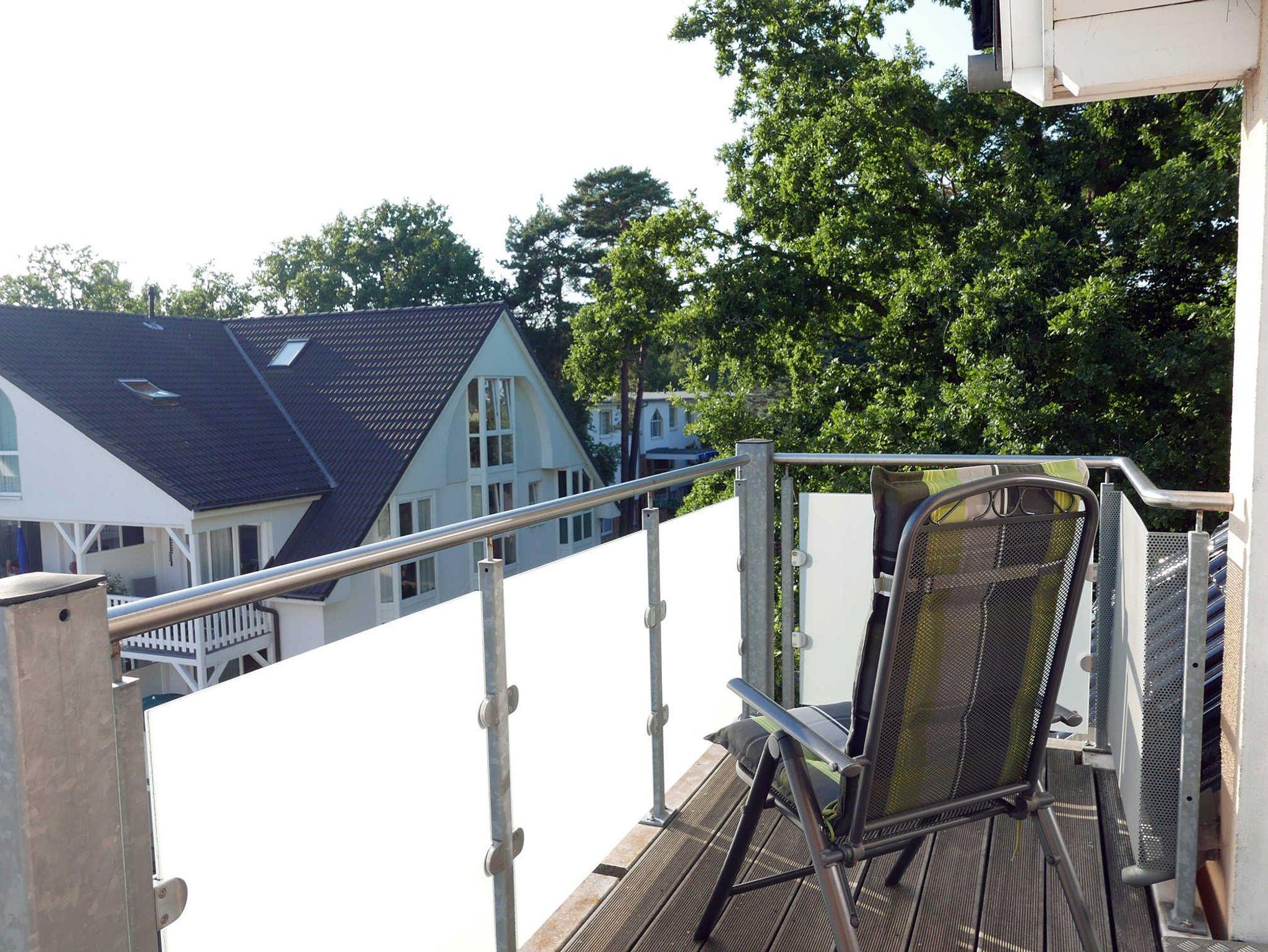 Lichtdurchflutete 3-Zimmer-Ferienwohnung für bis zu 6 Personen mit tollem Balkon, hier hat man einen herllichen Blick über die Dächer des Ostseebad Baabe.