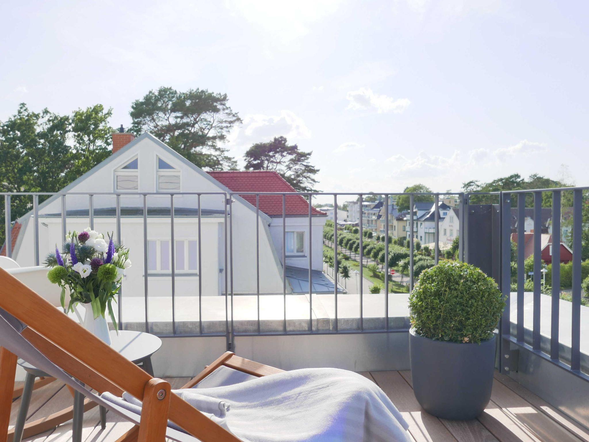 3-Zimmer-Ferienwohnung für 2 Personen mit atemberaubender 30 qm Dachterrasse, von welcher aus man einen grandiosen Blick auf die Ostsee und Baabe genießen kann. Liebevoll eingerichtet mit exklusiven Designermöbeln entsteht hier ein Ambiente der Extraklasse.