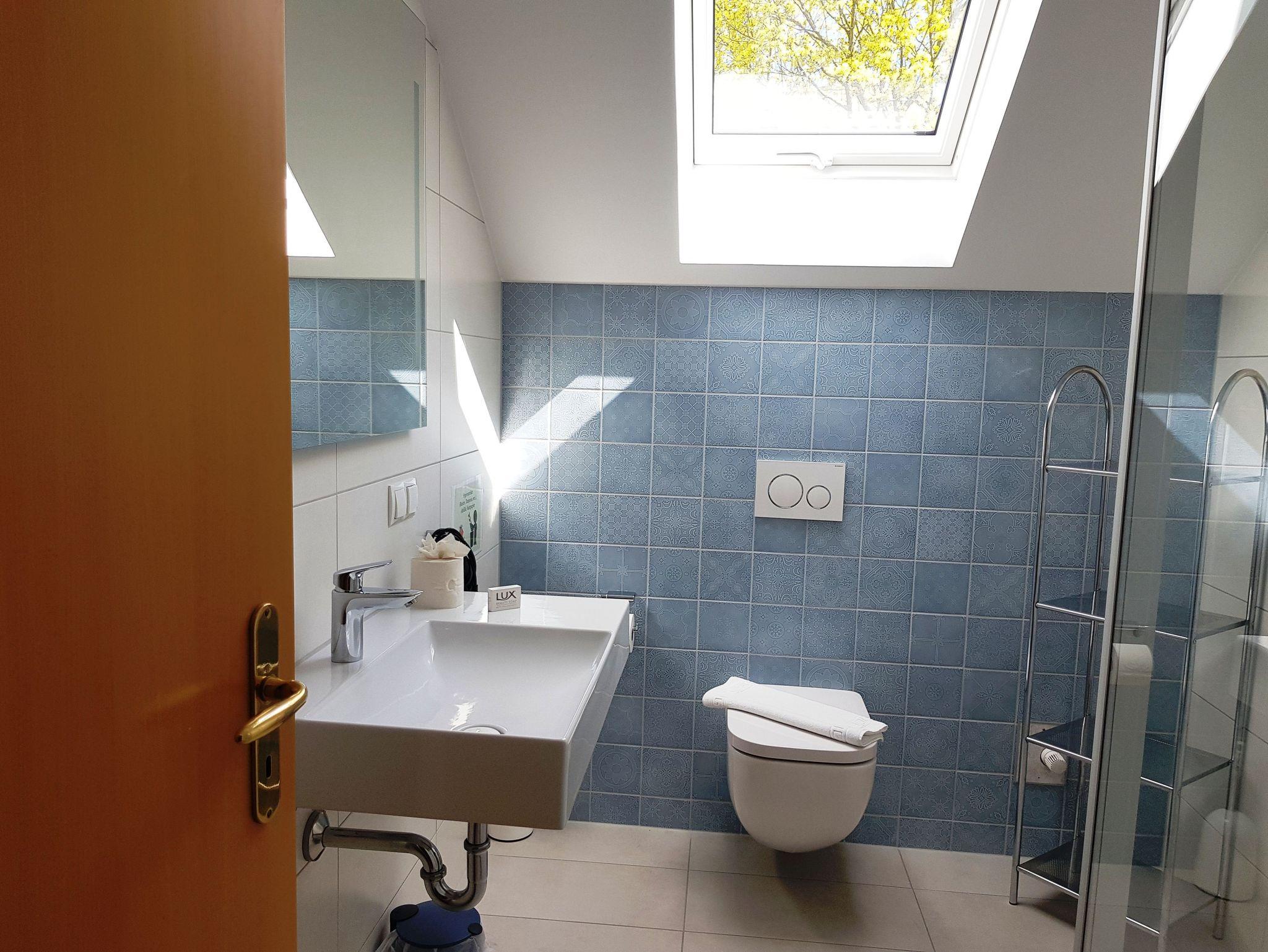 • Tageslichtbad mit Dusche, WC, Waschplatz und Fußbodenheizung
