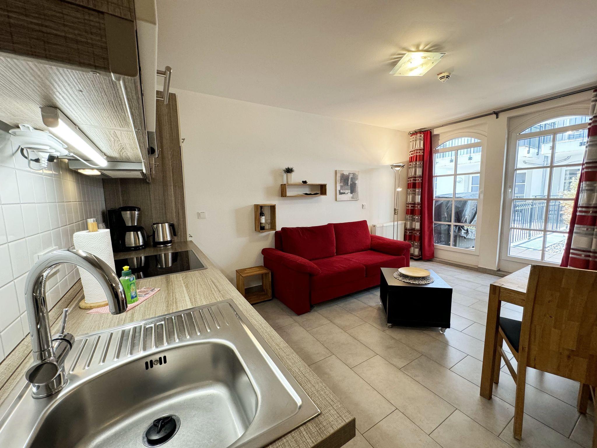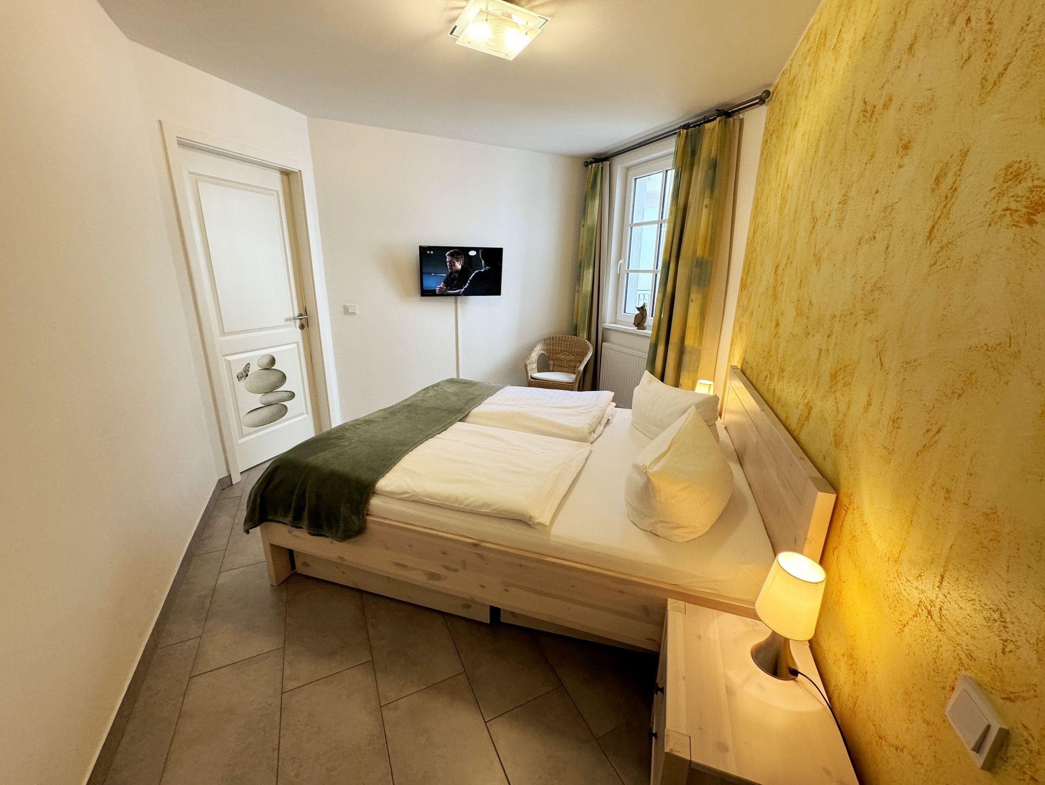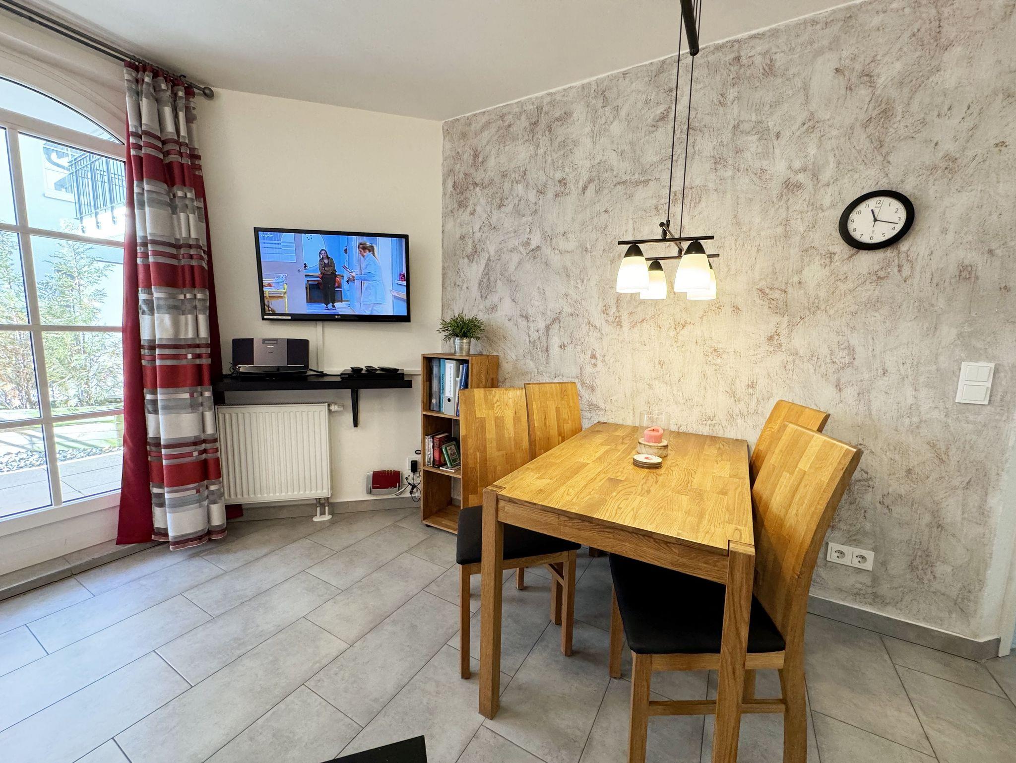 Ihre Nichtraucher/Ferienwohnung Nautica ist mit viel Liebe zum Detail ausgestattet und eingerichtet worden. Sie wohnen in einer ca. 40 qm 2-Zimmer Wohnung, die für 2 bis 4 Personen ausgelegt ist. Die Wohnung befindet sich in der 1. Etage und ist per Fahrstuhl bequem zu erreichen. In der Wohnung finden Sie einen kombinierten Wohn/Koch- und Essbereich. Die integrierte geräumige Küchenzeile lässt mit Mikrowelle, Backofen, Ceranfeld, Spülmaschine, Kühlschrank mit Gefrierfach, Kaffeemaschine und anderen praktischen Helfern keine Wünsche offen. Im Wohnbereich ist weiterhin eine Essecke und eine gemütliche Couch vorhanden, die in wenigen Handgriffen zur 2. Schlafstätte (Schlafcouchmaße 1,60 x 2,00 m) umfunktioniert werden kann. Abgerundet wird der Wohnbereich mit einem Smart-TV, Blu-Ray Player, Leselampe und einer Musikanlage mit DAB-Radio. Auch auf einen Internetanschluss (WLAN) müssen Sie im Urlaub nicht verzichten. Dieser ist für Sie inklusive! Der Balkon ist vom Wohn/Essbereich begehbar und komplett möbliert. Das Schlafzimmer ist mit einem Doppelbett (1,60m x 2,00m), Nachttischkonsolen, kleinem Flachbildschirm und einem begehbaren Kleiderschrank sowie ein Insektenschutzgitter ausgestattet. Auch 1x Kinderreisebett (ohne Matratze und Bett Inlett) sowie 1x Kinderhochstuhl werden unseren kleinen Gästen zur Verfügung gestellt (inklusive). Das Bad verfügt über eine ebenerdige Dusche, Waschbecken, Kosmetikspiegel, Fön, WC und Handtuchheizkörper. Ein eigener PKW-Stellplatz (Nr.23, Einfahrtshöhe 2,00m) befindet sich in der Tiefgarage des Hauses. Auch 1 Hund ist gegen eine Gebühr ein gern gesehener Gast in der Wohnung. Im Keller des Hauses haben Sie die Möglichkeit eine Waschmaschine/Trockner gegen Gebühr zu nutzen. Mit dem Fahrstuhl des Hauses A gelangen sie in das Untergeschoss der Meeresblickanlage, wo Sie ein großzügiger und heller Wellnessbereich erwartet. Hier können sie in einem Pool kleine Bahnen schwimmen, in 2 Saunen Ihren Kreislauf in Schwung bringen, in einem dazugehörigen Ruheraum Ihren Körper wieder beruhigen, in einer Schneckendusche sowie weiteren Duschen das kühle Nass genießen und auf einer Außenterrasse mit Außendusche die frische Luft einatmen. Die Erstausstattung eines Wäschepaketes (komplette Bettwäsche, 1 Duschhandtuch, 2 kleine Handtücher) können Sie bis 14 Tage vor Anreise gegen einen Aufpreis dazu buchen oder durch eigene ergänzen. Ab 2 gebuchten Paketen erhalten Sie einmalig 1 Geschirrhandtuch und 1 Duschvorleger hinzu.