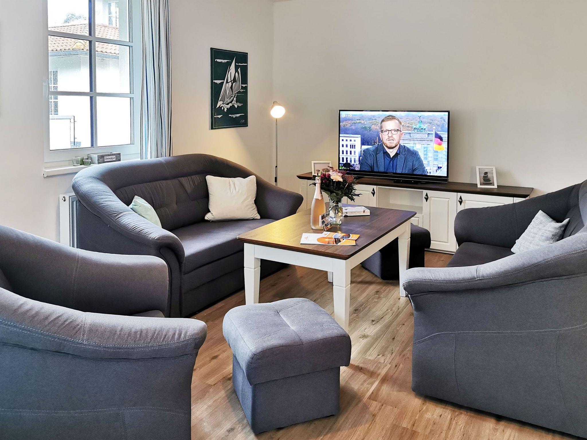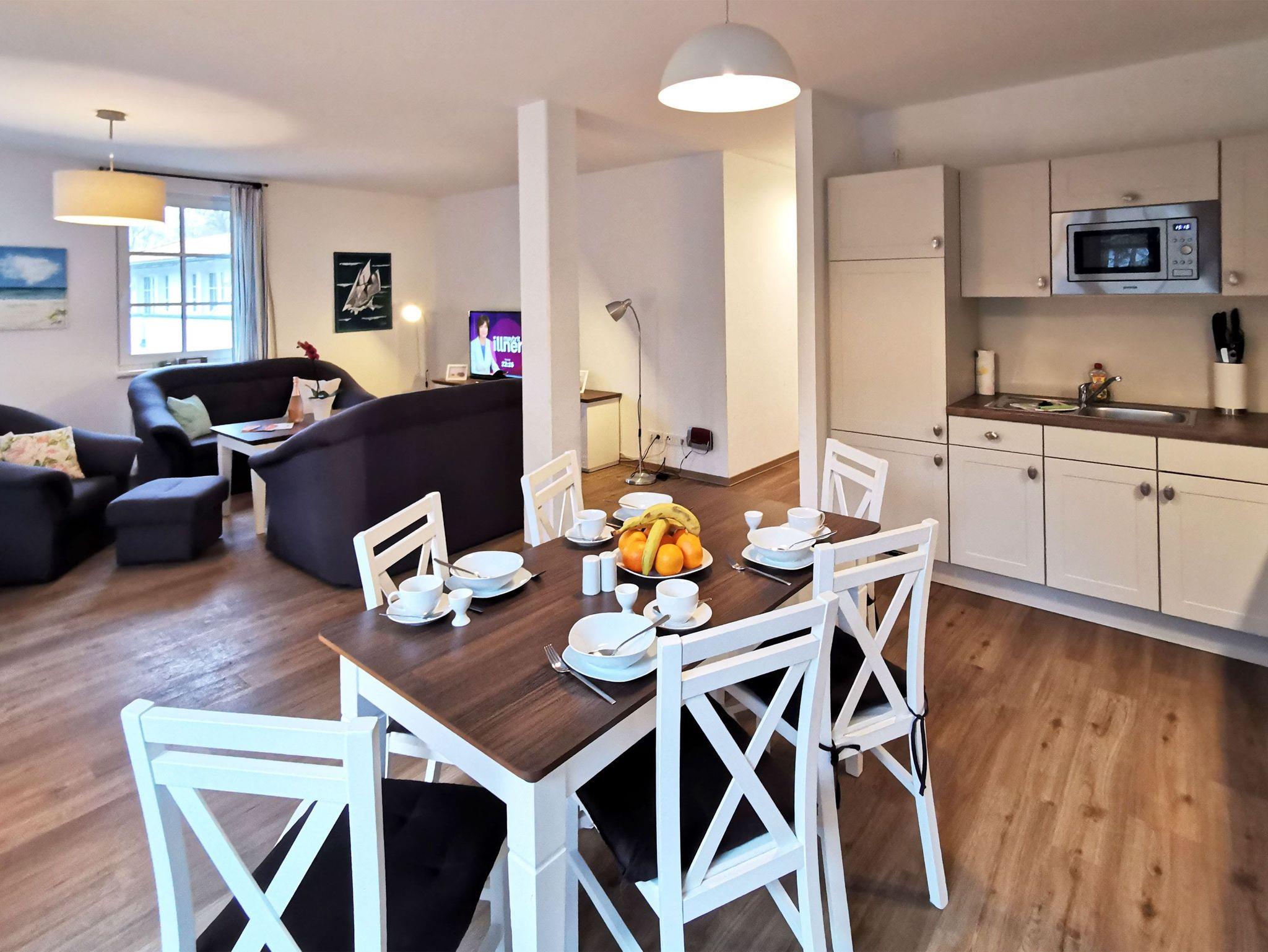Moderne 90 qm große Ferienwohnung für bis zu 6 Personen mit Meerblick und Balkon, gelegen in der neuen Anlage Inselparadies direkt am Strand von Baabe. Insgesamt gibt es 13 Ferienwohnungen in dieser tollen neuen Anlage und besonders hervor zu heben ist, dass sich am Ende der Wohnanlage der nun neu restaurierte Mütherbau befindet.