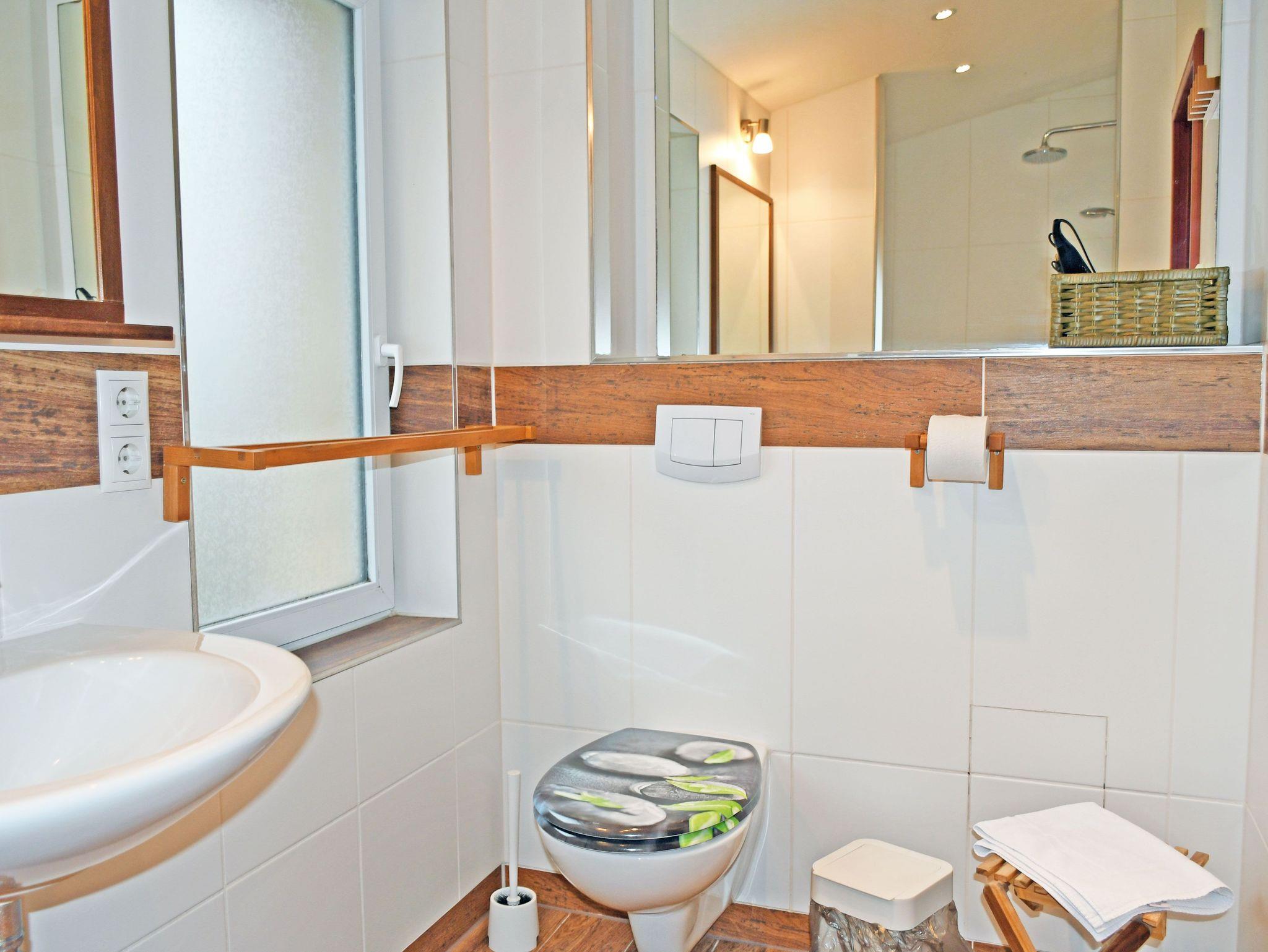 Die Küchenzeile im Wohnbereich ist mit einem Cerankochfeld, Geschirrspüler, Wasserkocher, Kaffeemaschine, Toaster und Backofen ausgestattet. Das sehr schöne und großzügige Bad bietet einen Waschtisch, WC und eine spezielle Wellnessdusche.