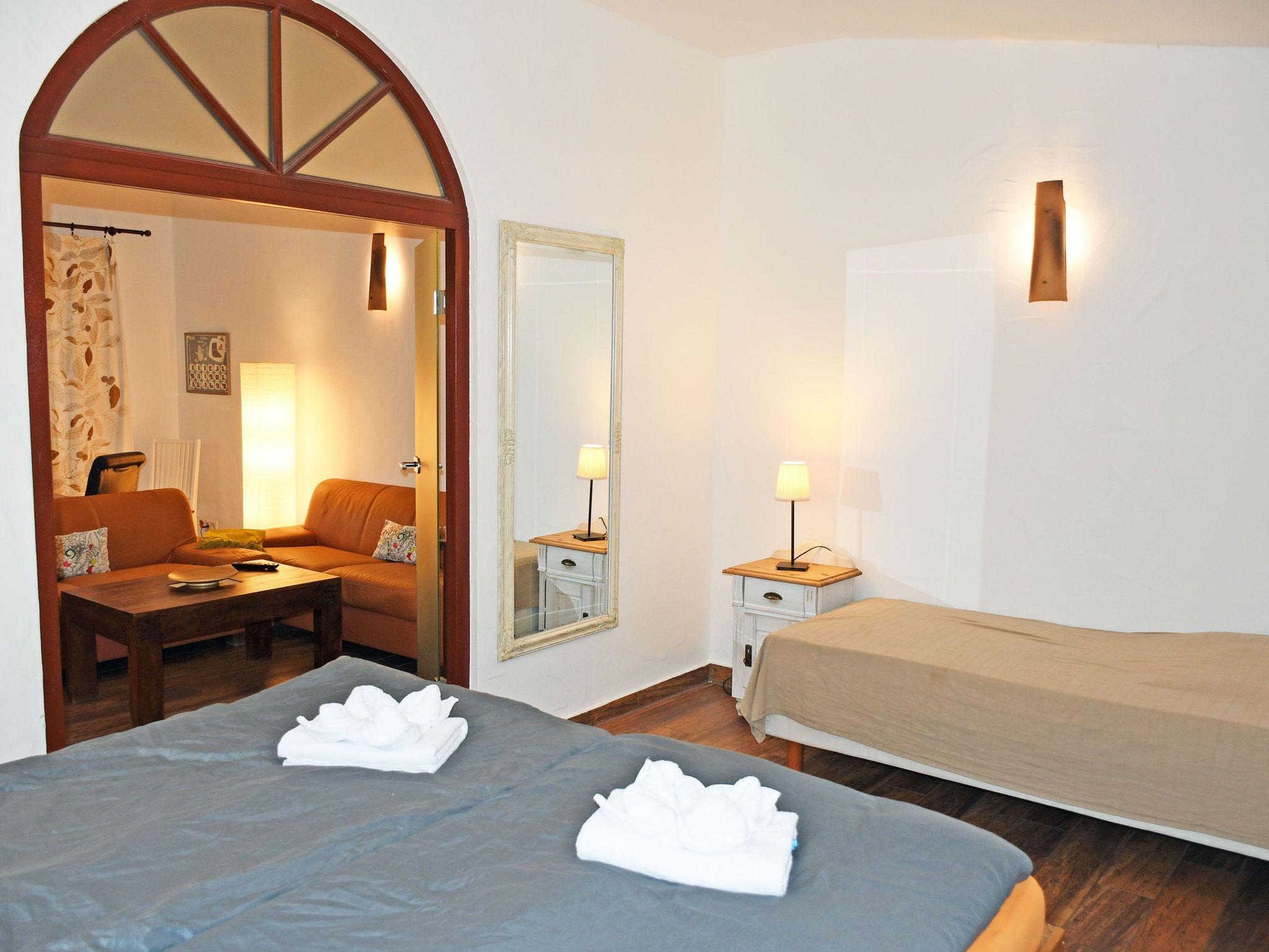 Unsere mediterran gestalteten Ferienwohnungen sind 45 qm groß und bieten für max. 3 Gäste Platz und ein Kind bis 3 Jahre im Kinderreisebett.