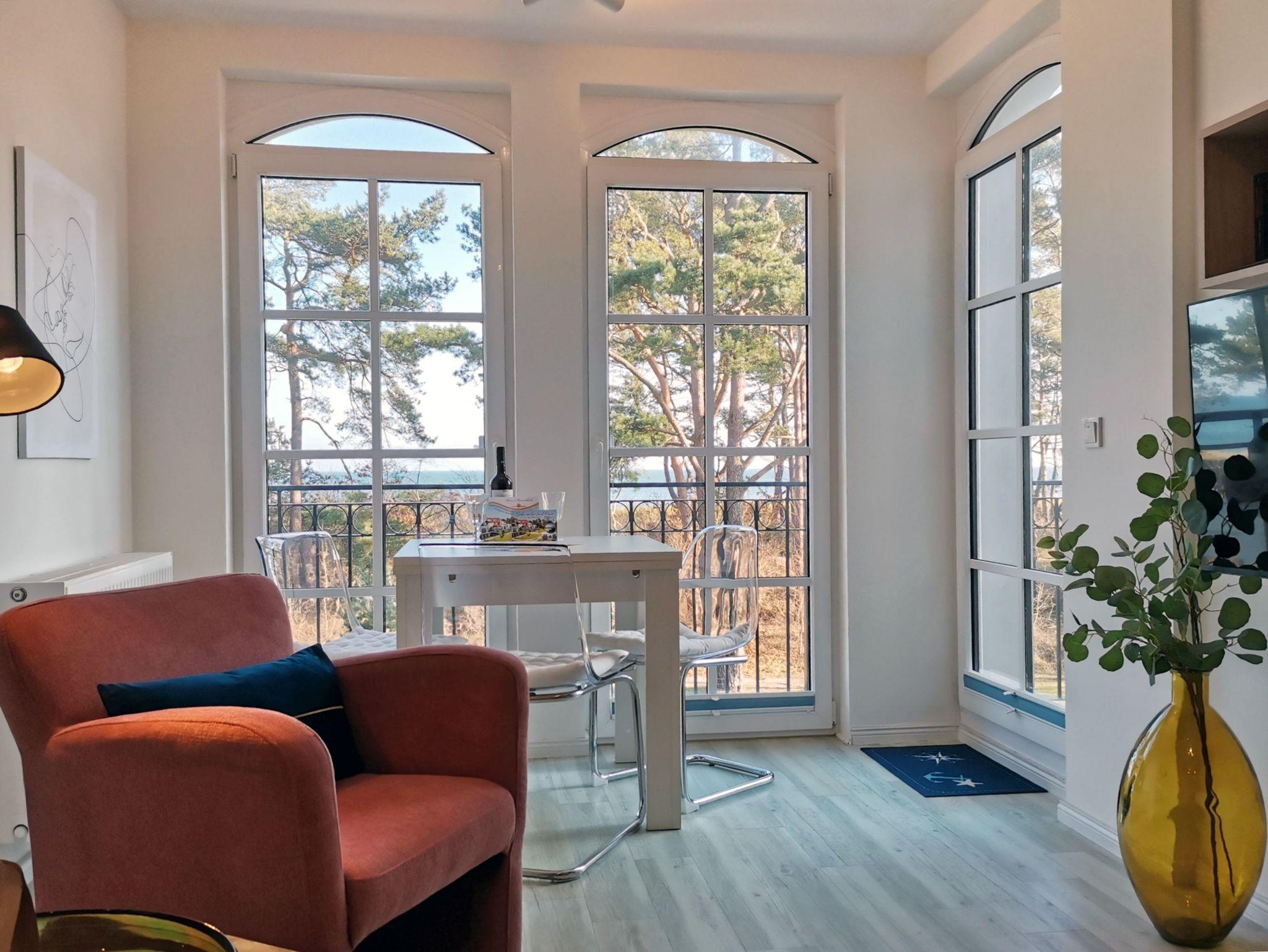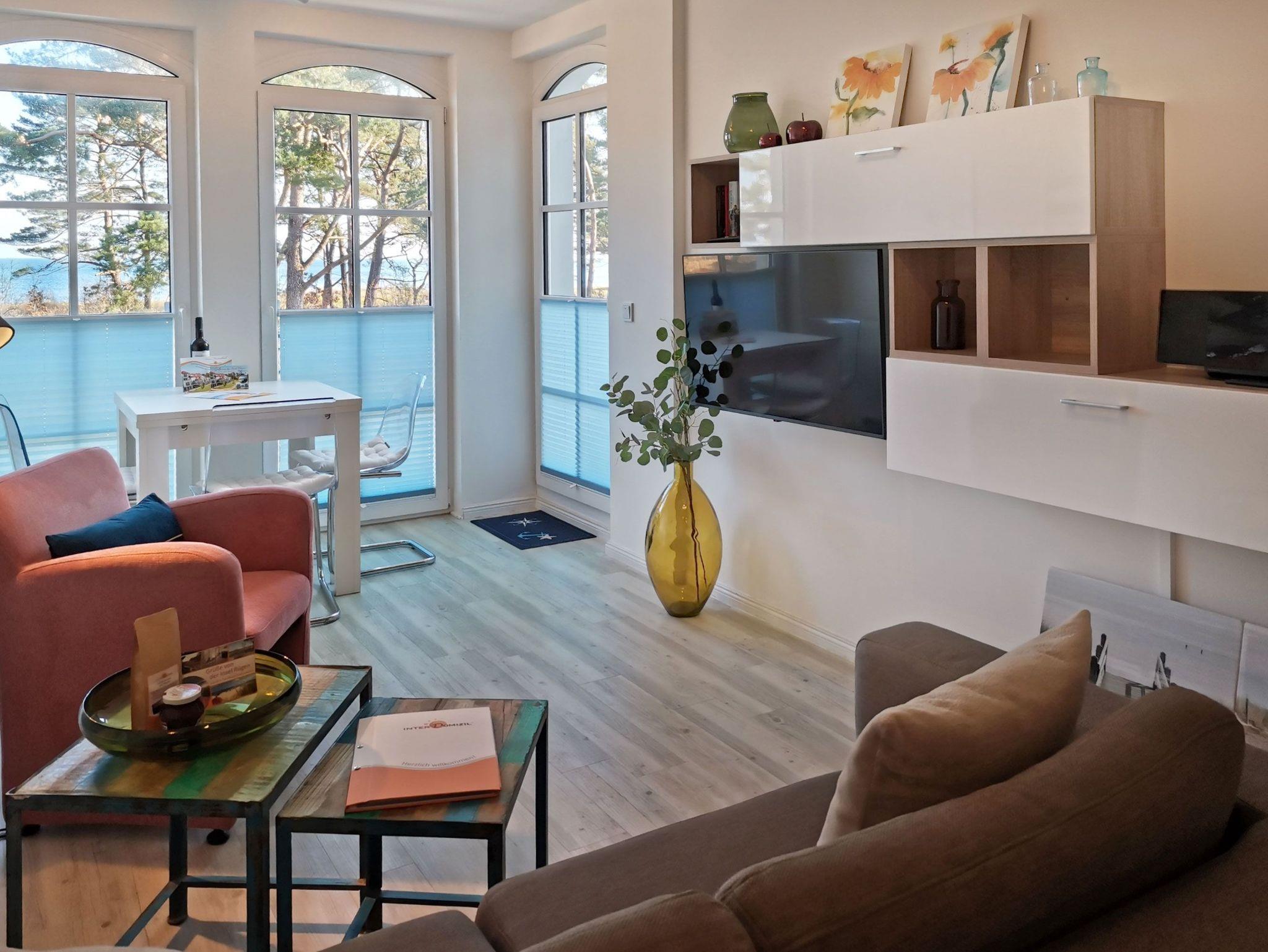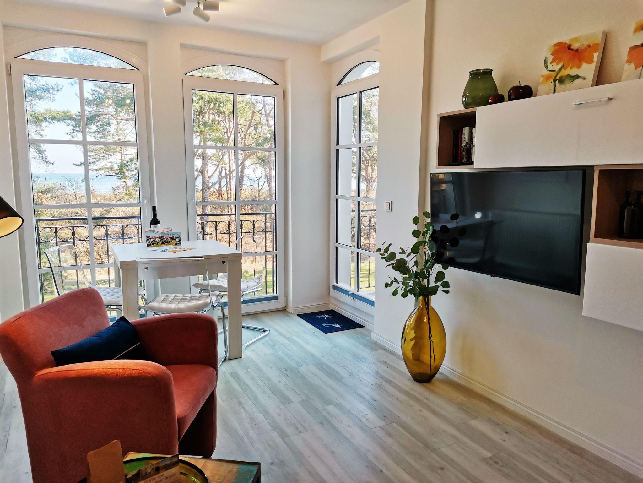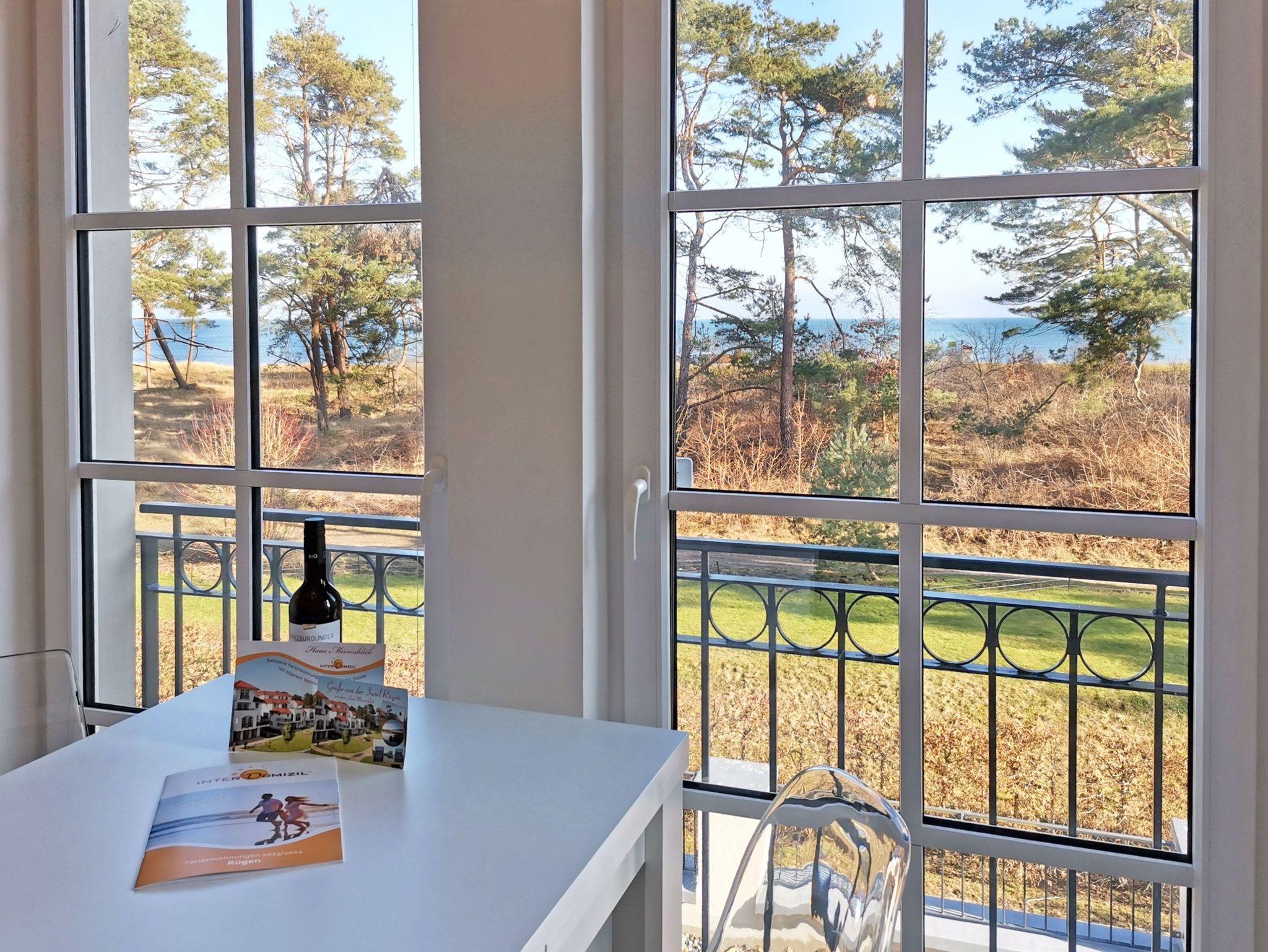 Genießen Sie den Blick auf das Meer von dieser kleinen aber feinen Ferienwohnung für bis zu 3 Personen. Sie liegt im 2013 fertiggestellten Haus Meeresblick. Die Ferienresidenz hat einen direkten Zugang zum Strand. Das Haus ist mit einem Fahrstuhl, einer Tiefgarage und einem großen Wellnessbereich mit Schwimmbad (ca. 8,00 m x 4,00 m - 1,35 m tief), zwei Saunen (eine finnische Sauna/eine Bio-Sauna) und einem Massagebereich ausgestattet.