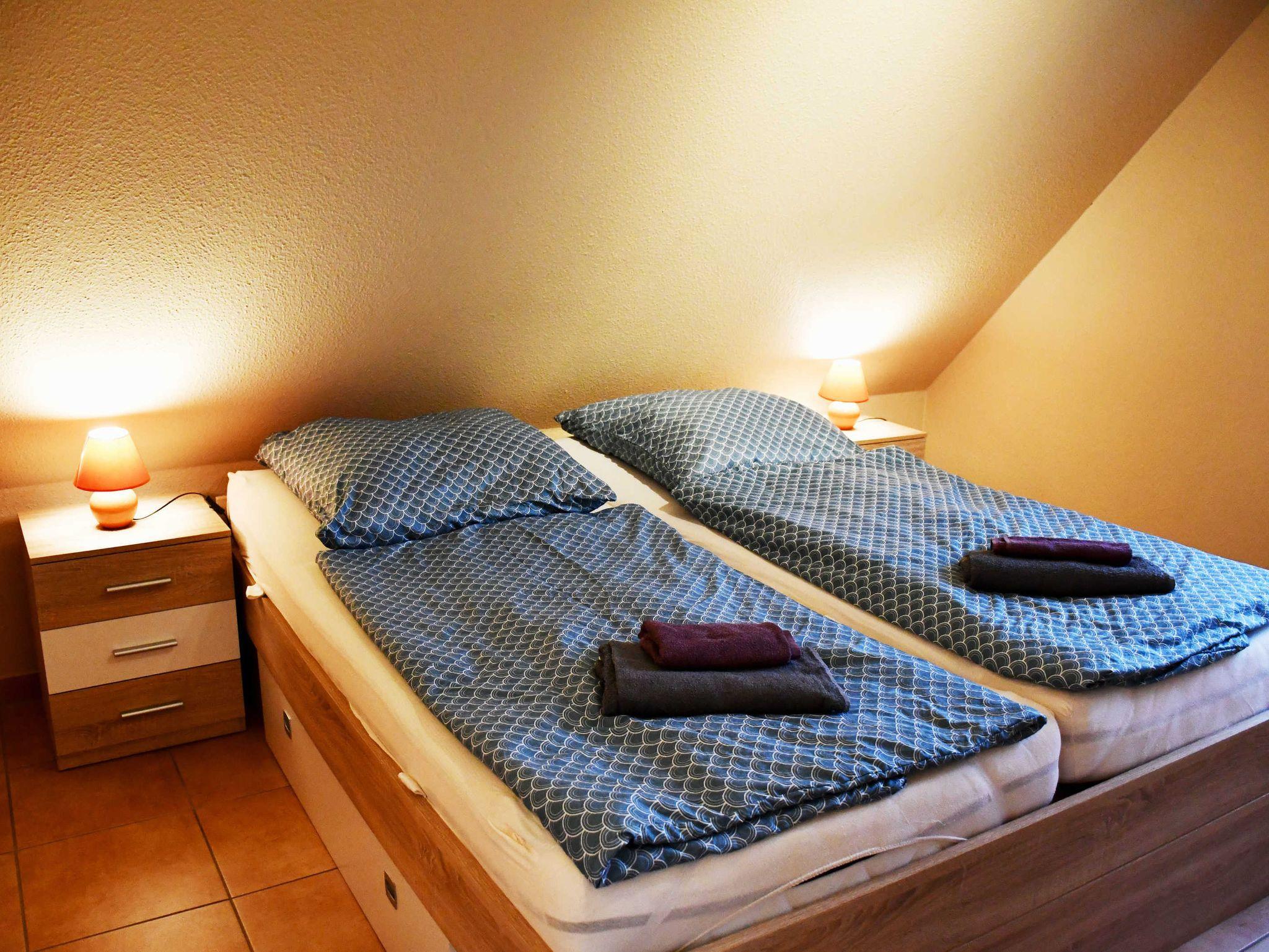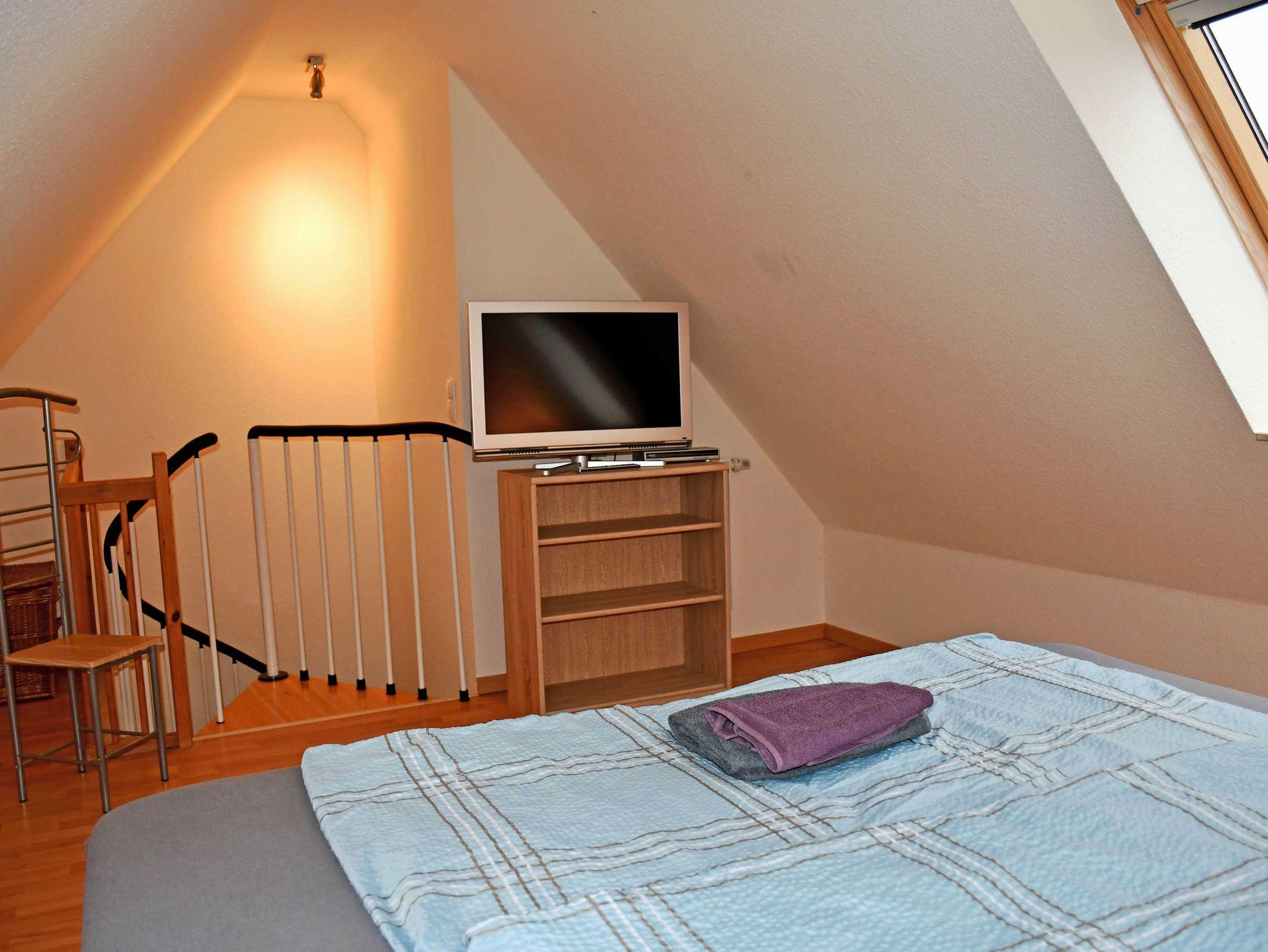 Das 1. Schlafzimmer ist mit einem bequemen Doppelbett mit Nachttischen und Leselampen sowie einem Kleiderschrank ausgestattet. Das 2. Schlafzimmer erreicht man über eine kleine Wendeltreppe. Hier befindet sich ebenfalls ein bequemes Doppelbett mit Nachttischen und Leselampen sowie ein zweites TV-Gerät.