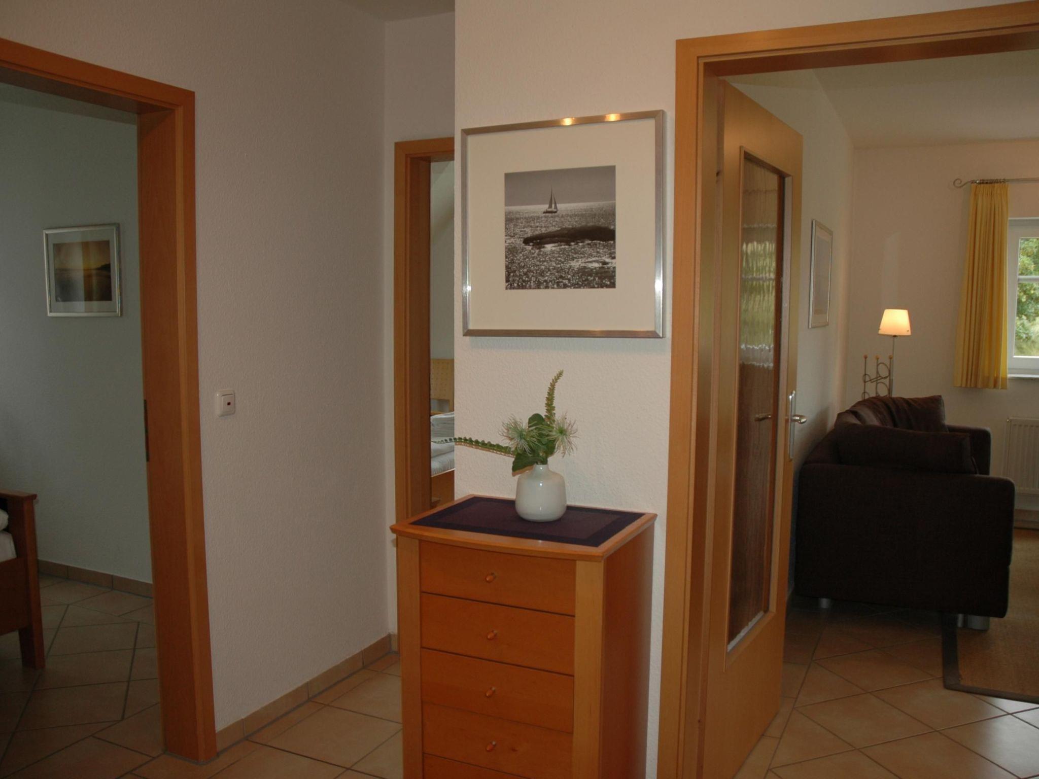 The two balconies, one facing east (ideal for having breakfast), the other facing south, promise relaxing holiday hours with a fabulous view. From the lovely south-facing balcony you can look out over the lush, green, hilly landscape as far as the deep blue Baltic Sea. The basement of the neighbouring house has an in-house sauna with a relaxation room, which you can use for a fee. The Dünenhaus Südstrand also provides a range of amenities such as a little children’s playground, a private car parking space for each apartment, a coin-operated washing machine and dryer etc. The Dünenhaus has a lockable bicycle shed, for storing your bicycles securely. Wireless Internet access is available.