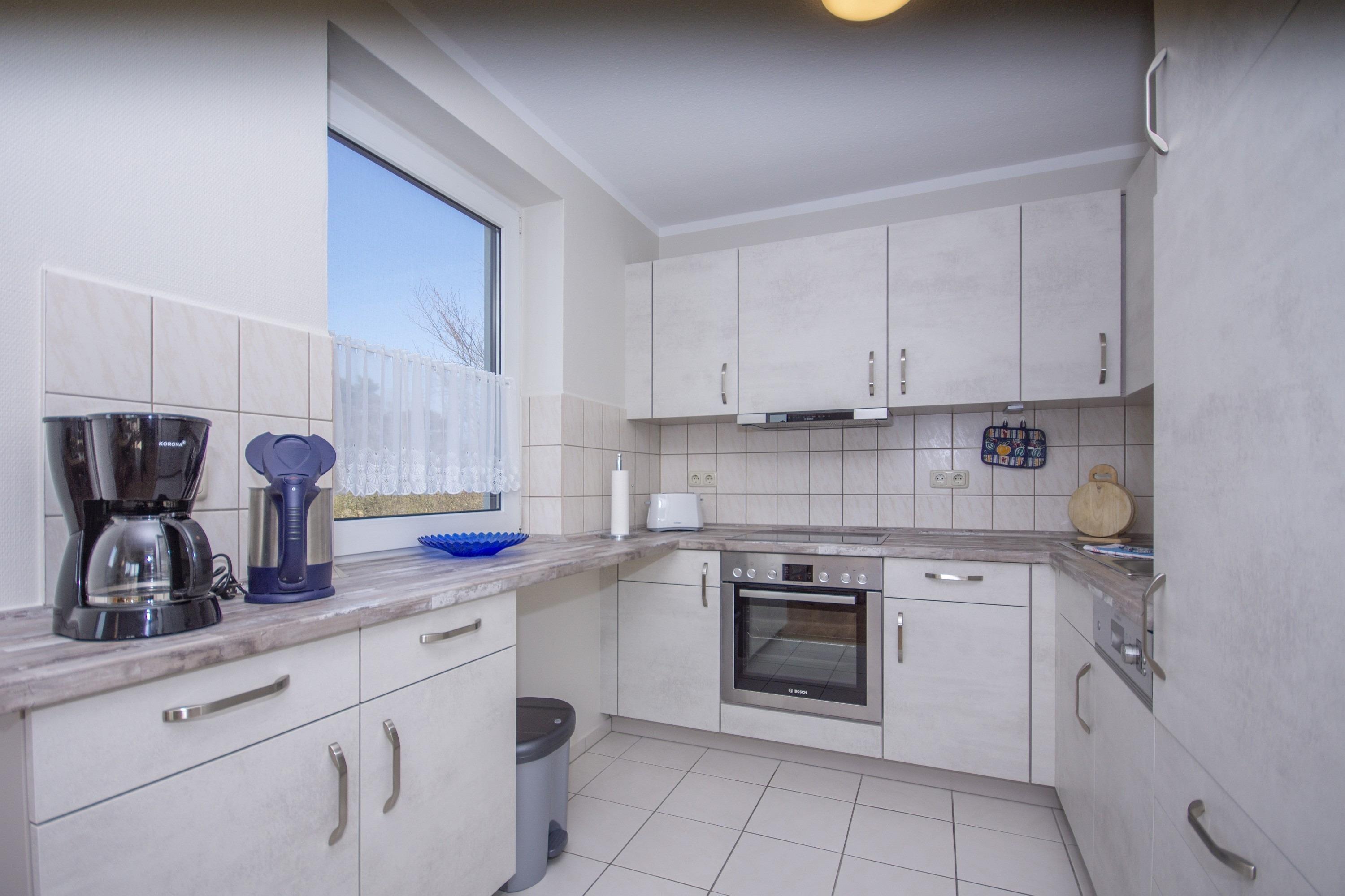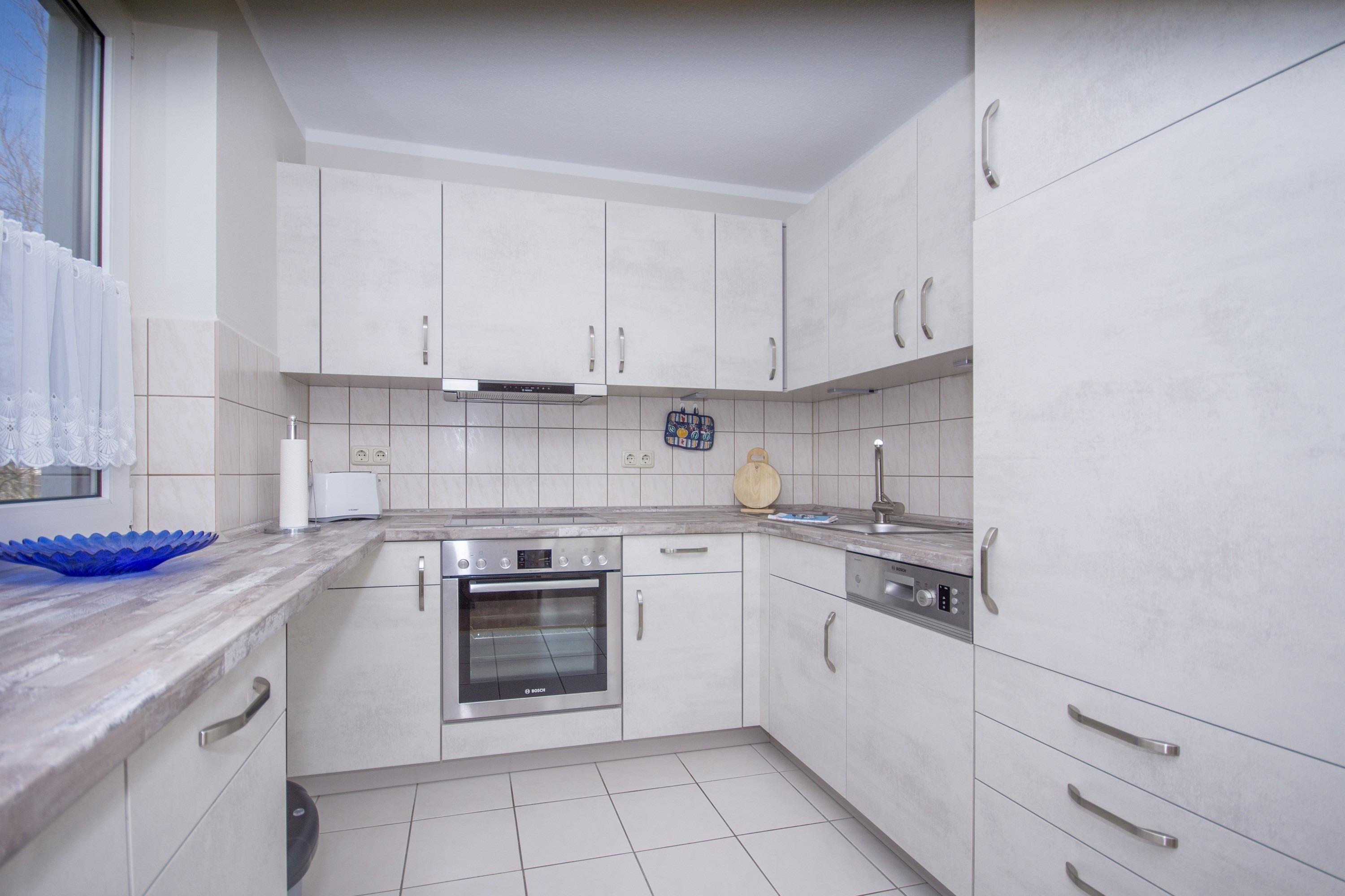 In der Wohnung befindet sich eine offene, voll ausgestattete Küche mit Spülmaschine, Herd, Cerankochfeld und Mikrowelle. Zahlreiche Küchenutensilien eröffnen Ihnen die Möglichkeit, einen kulinarischen Kochabend zu verleben.