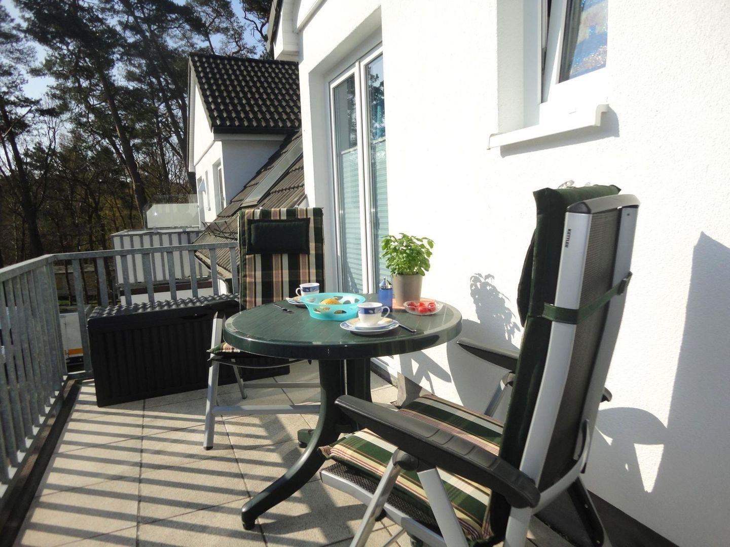 Der an der Küche gelegene Ostbalkon lädt bereits morgens zum Frühstück unterm Sonnenschirm ein.